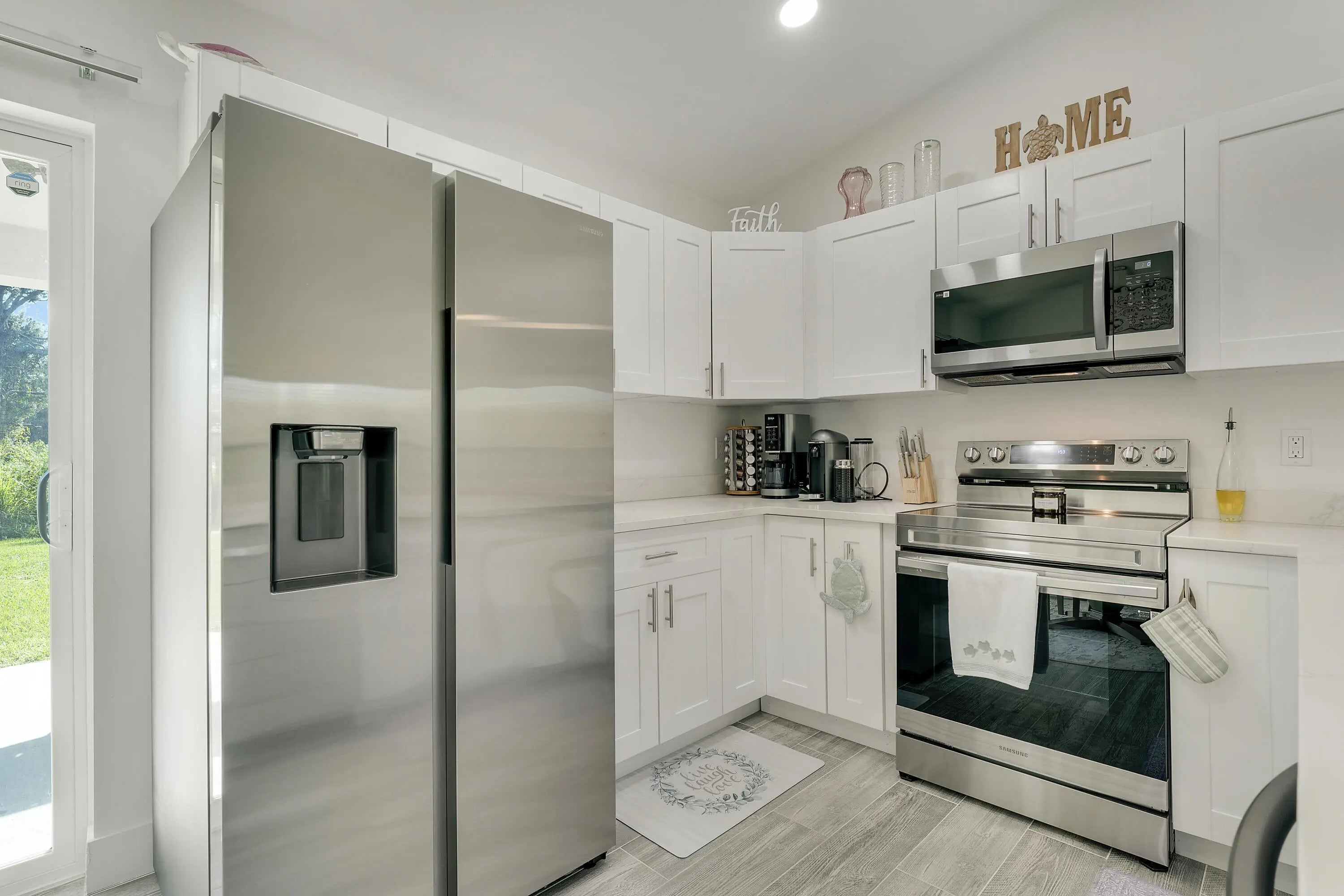 Beautiful BRAND NEW 3 bdr, 2 bath home located in a quiet Okeechobee neighborhood with NO HOA. Open concept floorplan with a modern kitchen featuring granite countertops & ample cabinetry. The primary suite offers a spacious layout with walk-in closet & bath with dual sinks & large shower. IMPACT WINDOWS, DOORS & SLIDERS throughout for energy efficiency & storm protection. CERAMIC TILE FLOORING THROUGHOUT, NO CARPETING! Enjoy Florida living on the covered front & rear porches. Situated on a NEARLY 1/4-ACRE LOT with wide concrete driveway. MOVE-IN READY 2024 NEW CONSTRUCTION with powerful water softener system.