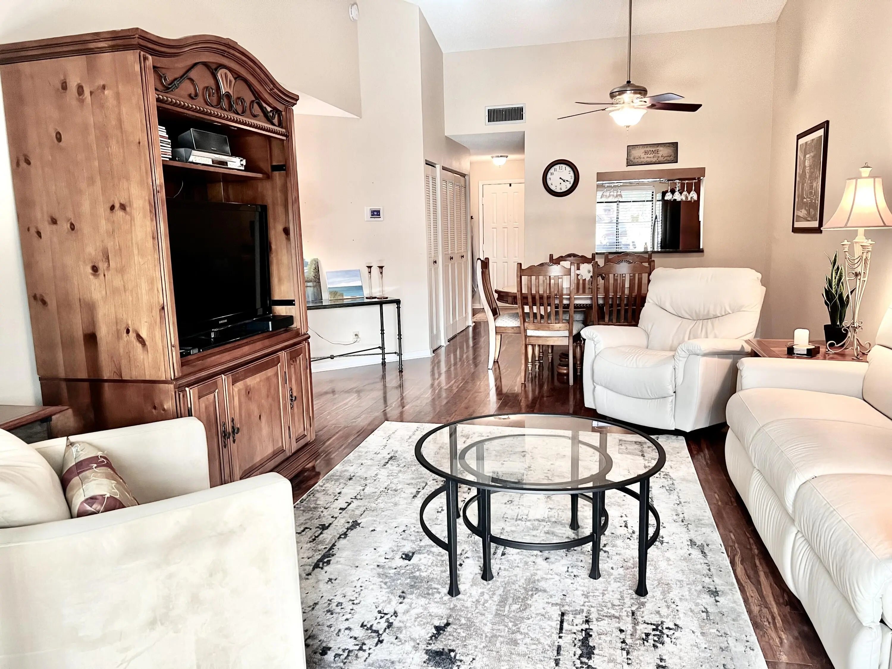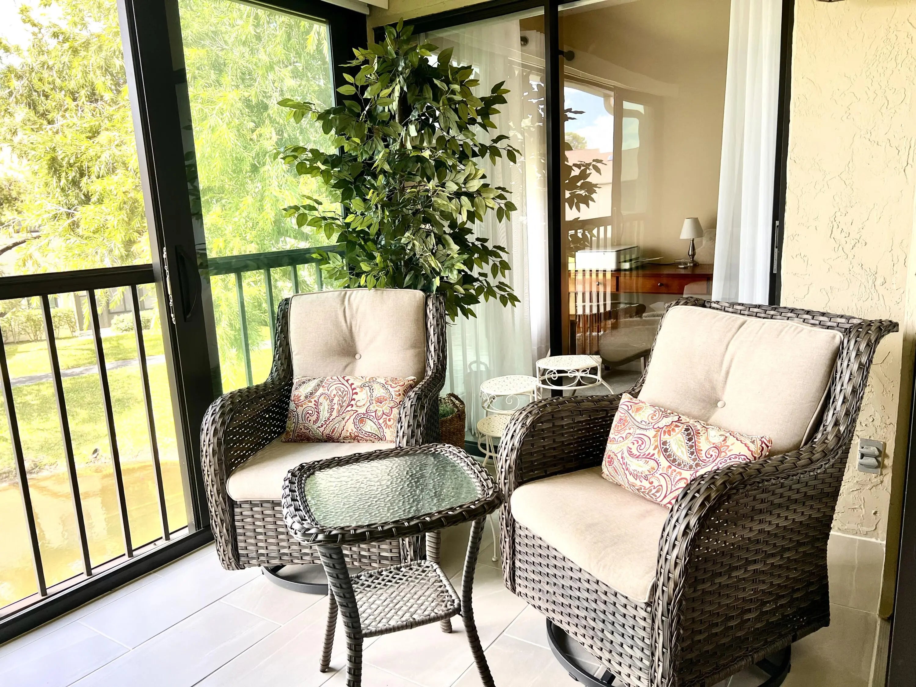 Escape the winter months in sunny South Florida! This beautiful, fully furnished 2-bedroom, 2-bath condo is located in Park Pointe. The spacious unit boasts plenty of natural light and high ceilings. The large master suite features his-and-hers closets, including a walk-in closet. You'll also find a full-size washer and dryer inside the condo for your convenience. Relax in the screened and glass-enclosed sunroom/balcony, which is equipped with privacy shades and offers a peaceful water view. Enjoy a variety of community amenities, including tennis, pickleball, bocce ball, swimming pool, billiards, fitness facilities, and more. Water and cable are included in the rent. Conveniently located to restaurants, shopping, airport, beaches, Downtown West Palm and Downtown Delray.
