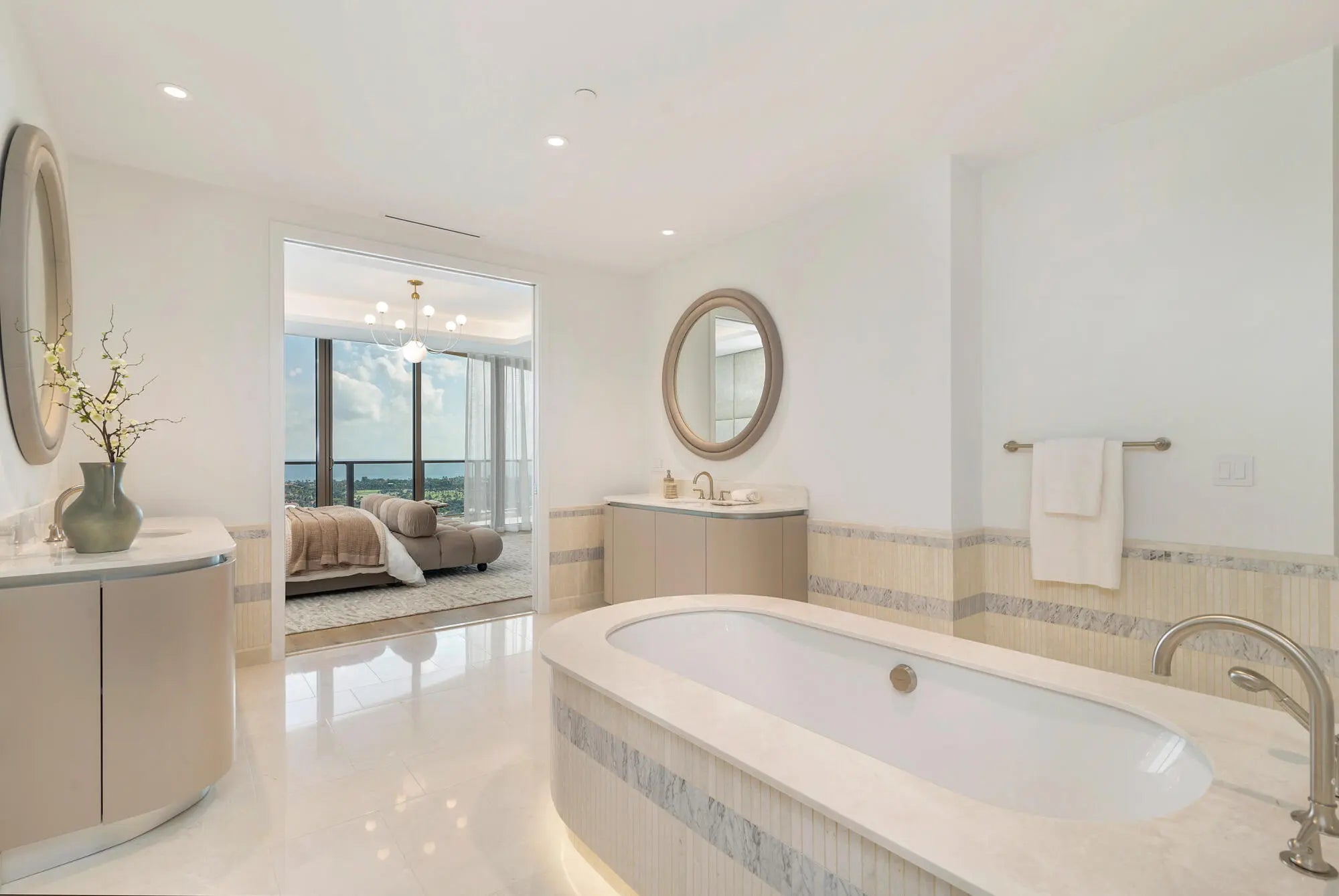 An unparalleled opportunity to own one of the last three available residences at Forte on Flagler, a newly completed luxury tower. This expansive condo offers 4,440 square feet of living space, featuring 4 bedrooms, 4 full baths, 1 half bath, and wraparound terraces with stunning eastern and southern exposures. Located on South Flagler Drive, this 24-story building provides breathtaking views of Palm Beach, including sweeping vistas of Worth Avenue, the Intracoastal Waterway, and the Atlantic Ocean. The property consists of 41 spacious, flow-through residences, each offering private elevator access, dramatic ceiling heights, floor-to-ceiling windows, and generous balconies that add 1,000 square feet of outdoor living space.