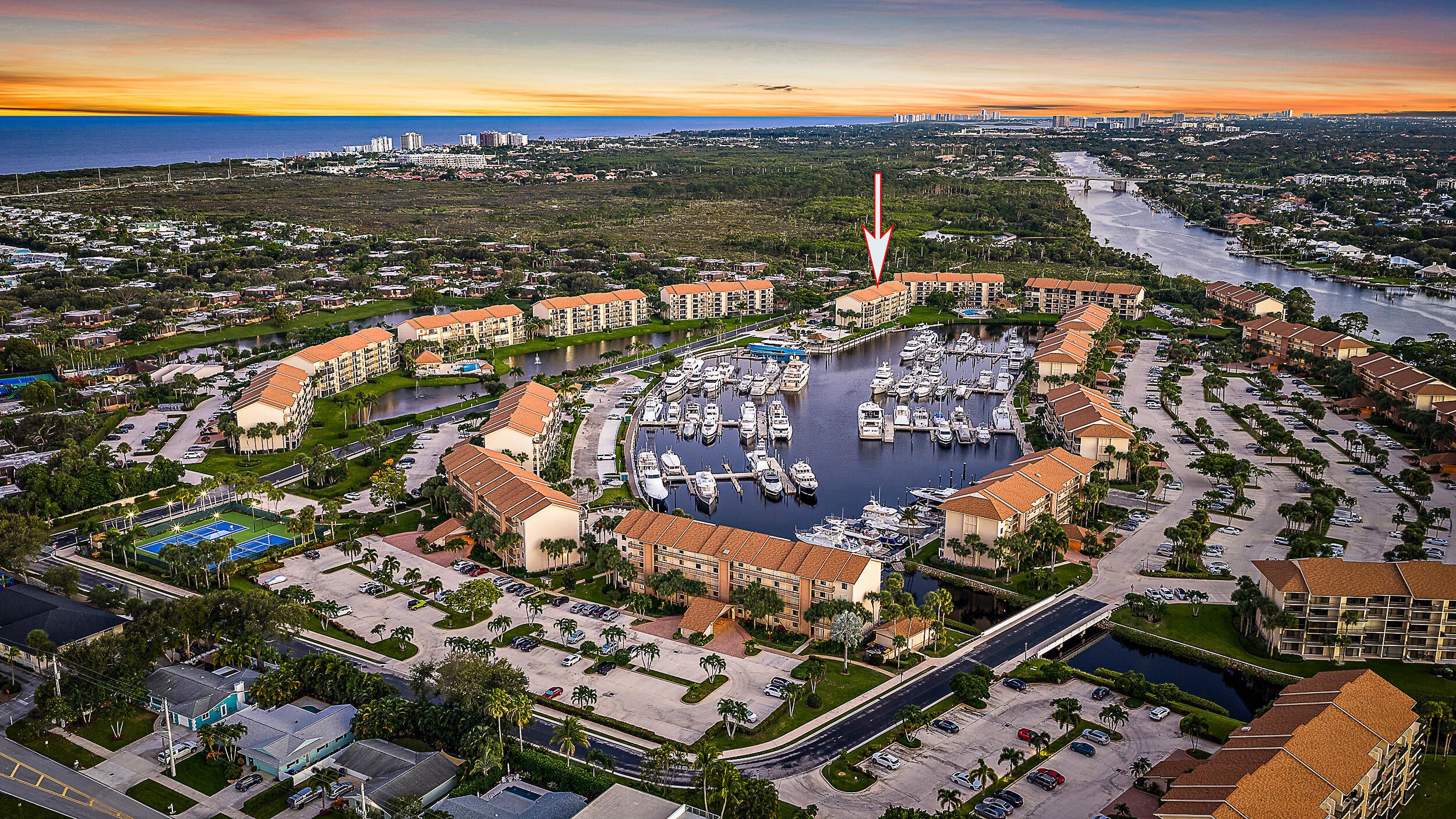 Views, Views & More Views! Every day feels like a Vacation in this 4th-floor condo with breathtaking, unobstructed marina and Intracoastal views. Enjoy coastal living with an open floor plan, bright living & dining area, and a private balcony overlooking Yachts and shimmering water. The kitchen provides ample counter space and storage. The primary suite has its own balcony, walk-in closet, and en-suite bath. A spacious Guest Bedroom and full Bath are perfect for Visitors. Full-size laundry and a versatile area that offers flexibility for office, storage, or guest space. Marina at the Bluffs offers resort-style amenities: pool, tennis, walking paths--just minutes to Juno Beach, Pier., shopping, and amazing Restaurants!from Jupiter's pristine beaches, waterfront dining, shopping, & world-class golf. This is the best of Florida living w/its tranquil setting & postcard views.