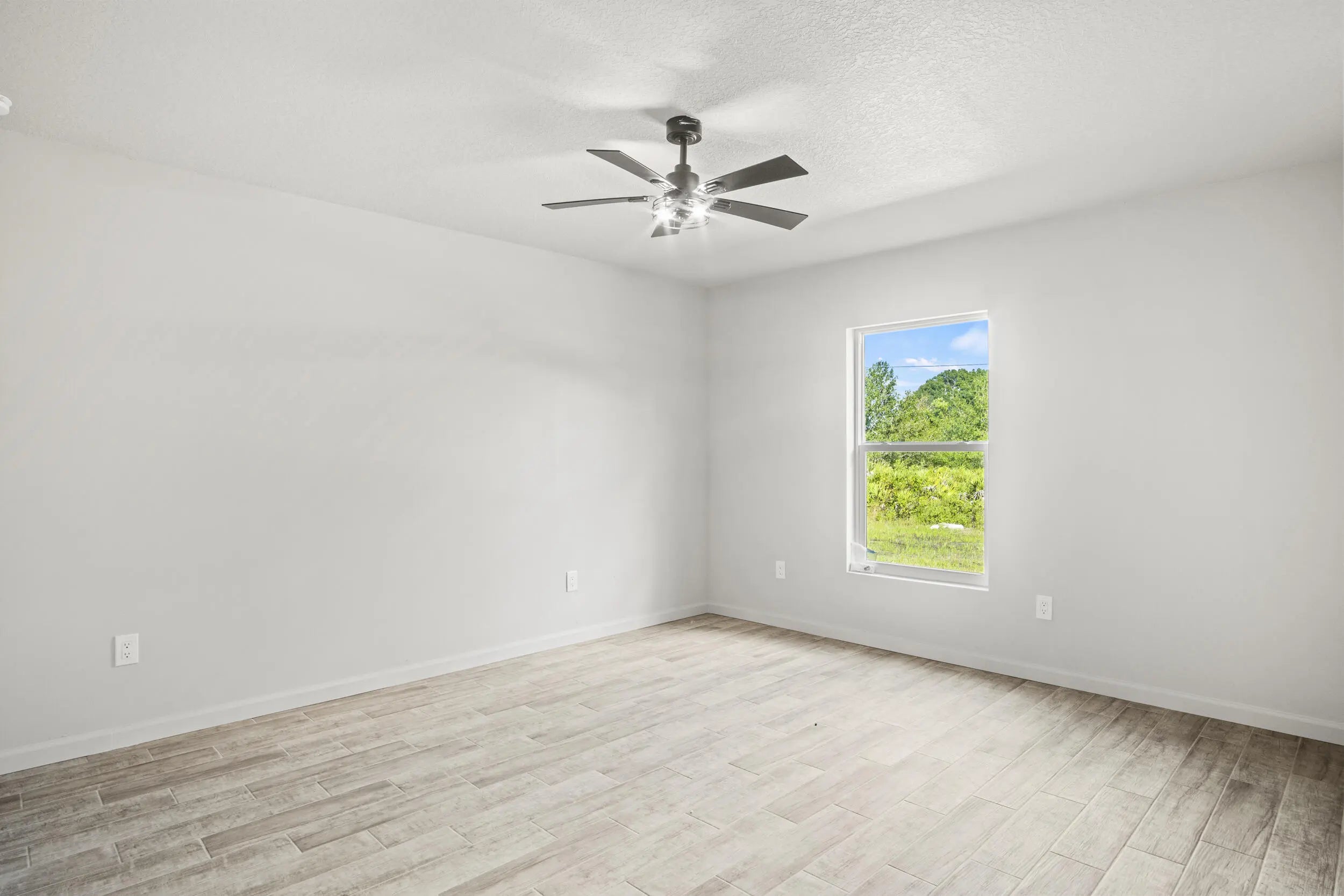 Just completed--brand new 2025 construction in the Basswood community. Expect to be impressed by this nearly 2,000 sq ft home situated on an oversized lot with no HOA. Featuring 3 bedrooms and 2 bathrooms, the split and open floor plan offers high ceilings throughout and a seamless flow. Built with architectural shingles and impact windows for durability and peace of mind. The kitchen showcases wood cabinets, granite countertops, and stainless steel appliances. The master bathroom includes dual sinks and a tiled shower. This home is move-in ready. Schedule your private showing today and make this beautiful new construction yours.