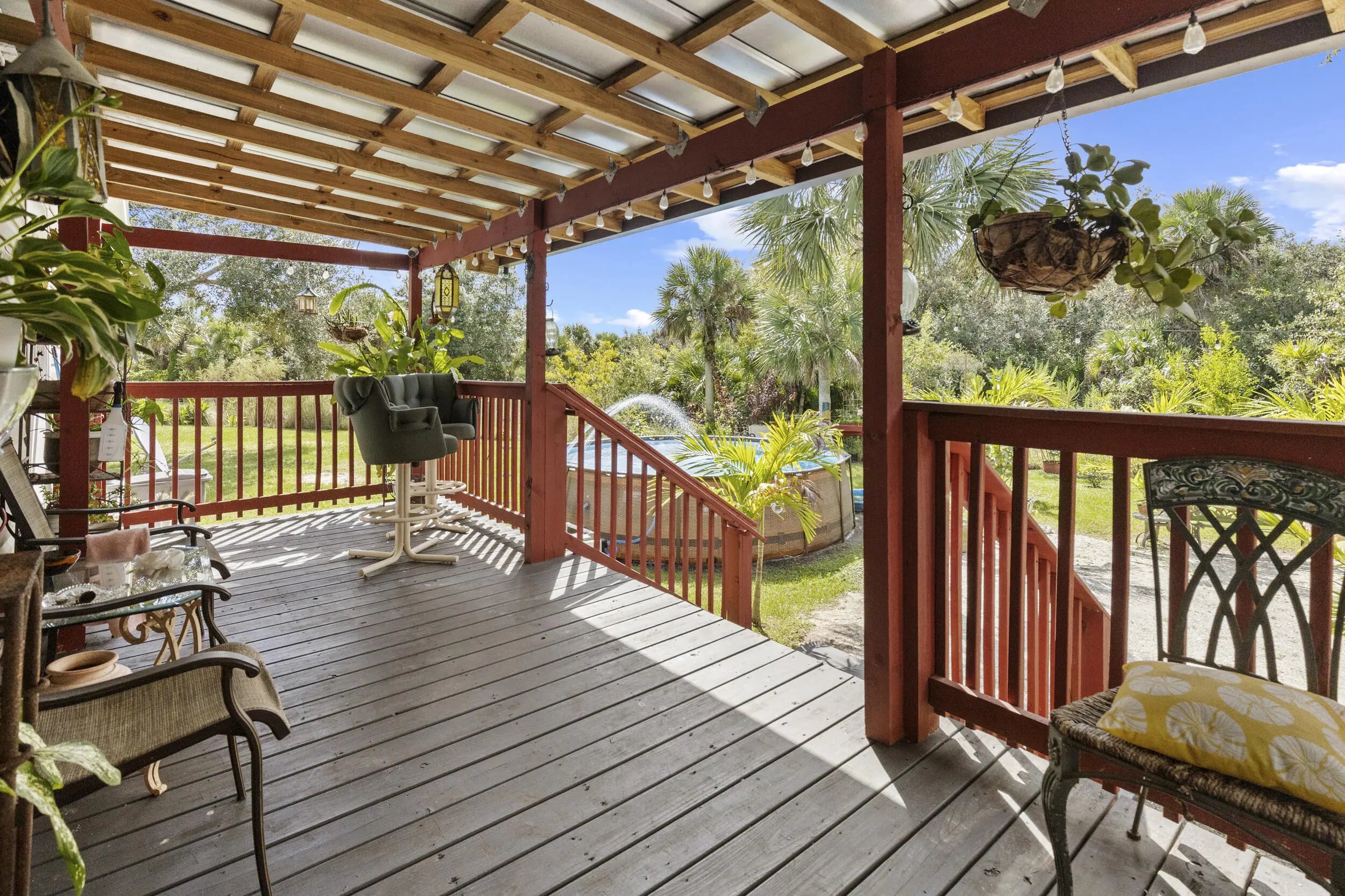 LOCATION, LOCATION, LOCATION! This 2023-built 4 bedroom, 2 bathroom home sits on 2.5 acres of cleared, fenced land with a park-like setting and beautiful oaks, all with paved road access. Inside, you'll find a spacious split floor plan with a large master suite featuring dual sinks, garden tub, and walk-in shower. The upgraded kitchen includes solid wood cabinets, butcher block countertops, and a separate dining area. Laminate flooring runs throughout, and there's a dedicated interior laundry room for added convenience. Step out back to a peaceful porch and an above-ground pool--perfect for relaxing or entertaining. The property is turnkey ready with well, septic, AC, and water filtration system already in place. Located near the Kissimmee River and Preserve State Park, this home offers