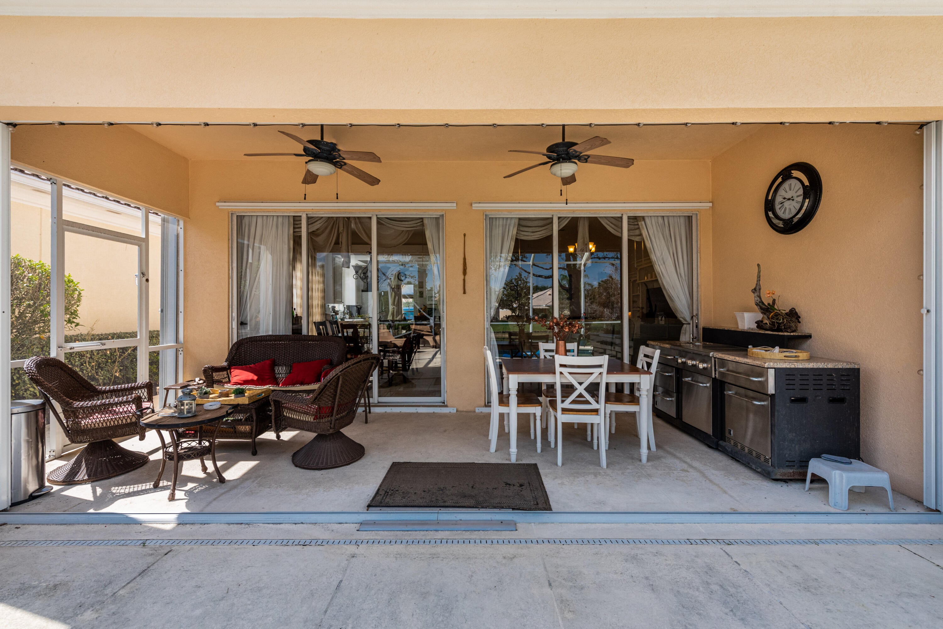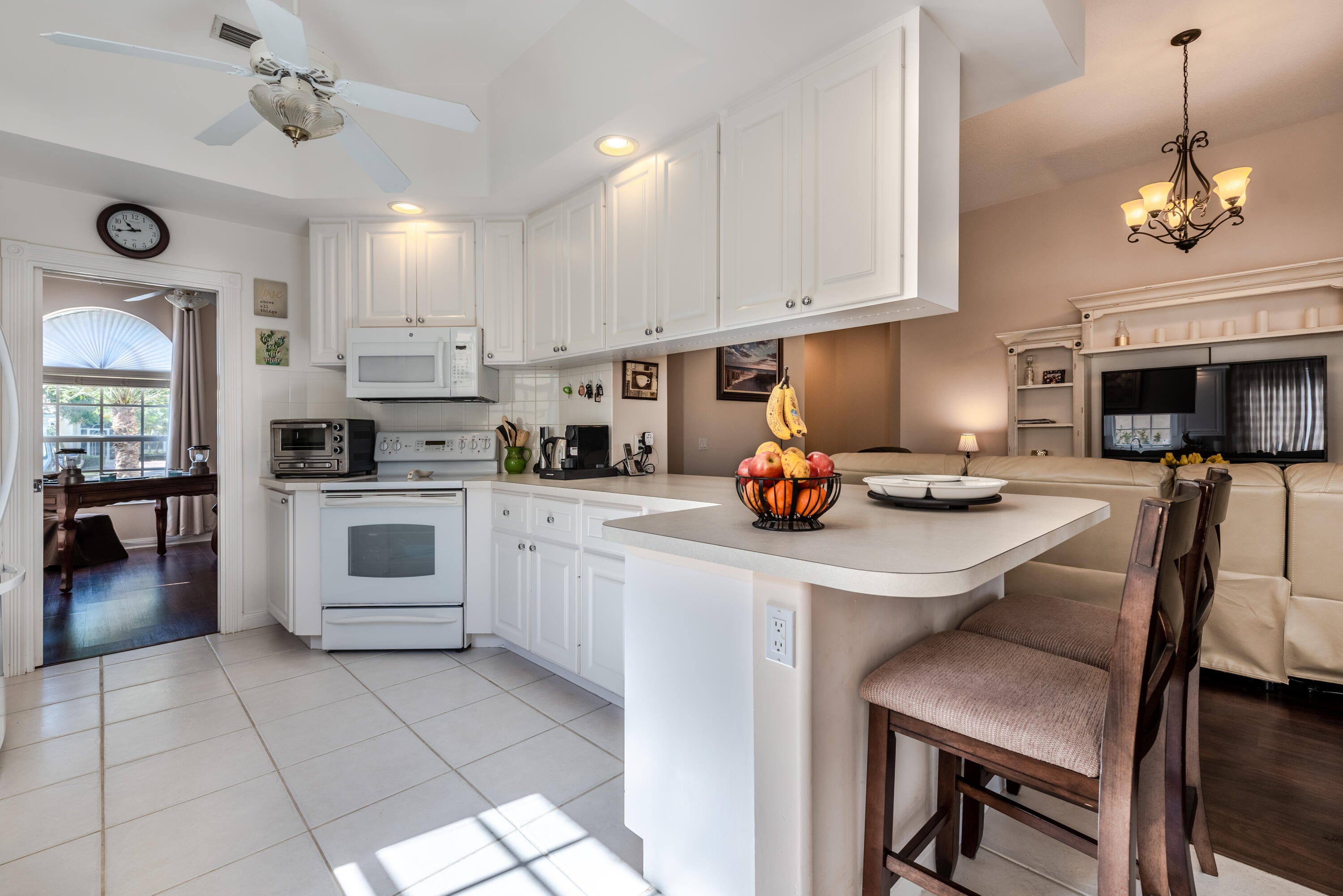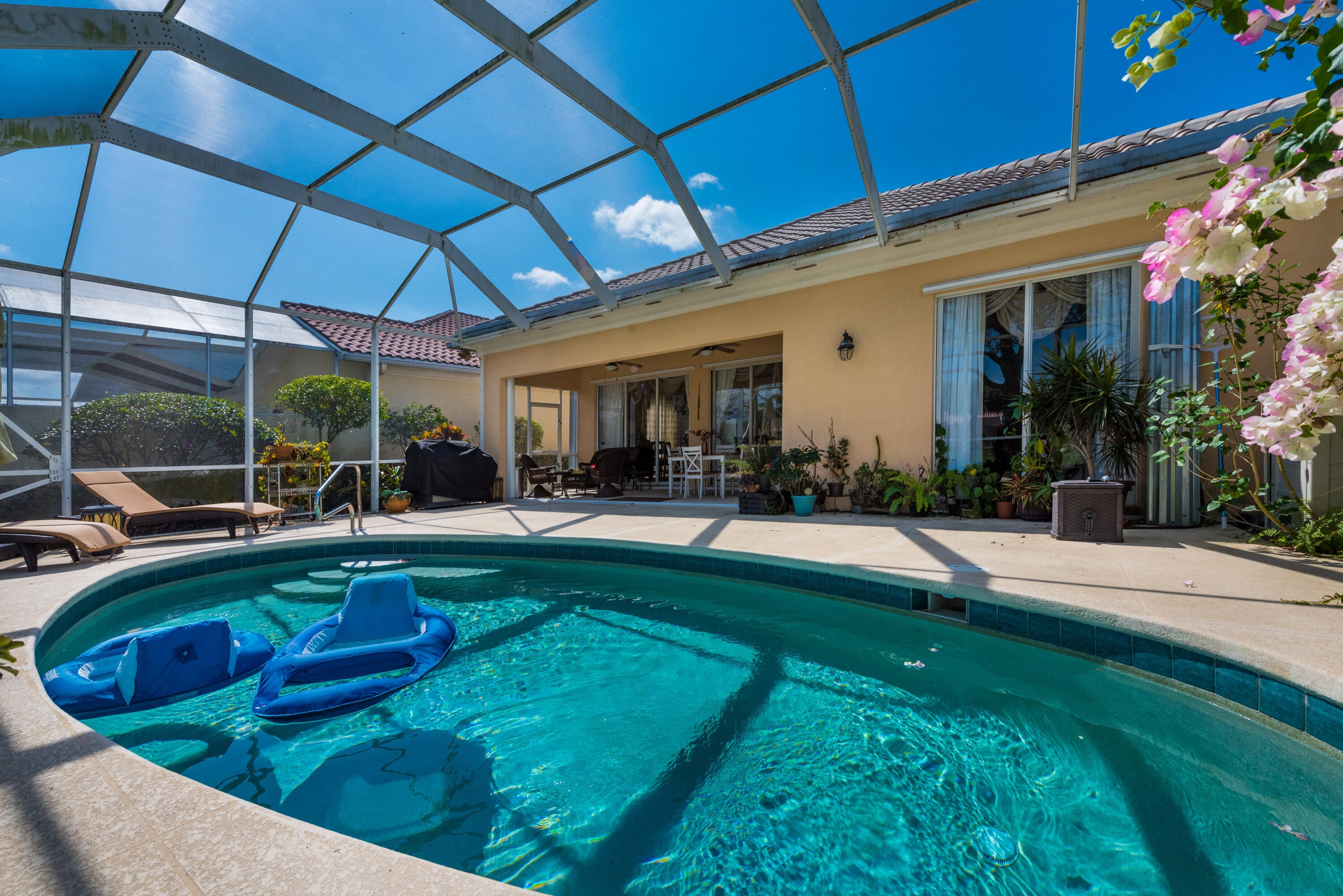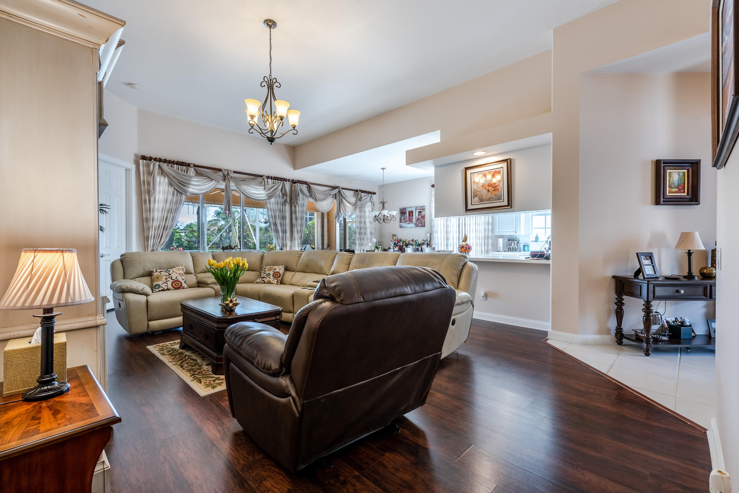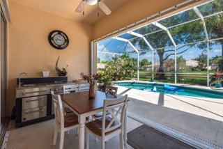 Magnificent lakefront furnished turnkey pool home with 3 bedrooms+ den and 3 bathrooms. Available for your enjoyment. Elegant living area and engineered wood in the bedrooms. Grand furnishings, mirrors, art, and window treatments.. Spacious primary suite includes glass enclosed shower. Owner has separated the other part of the primary bath with a Roman tub. home looks and shows like a model. Kitchen includes stainless appliances and ample cabinets and a breakfast bar. Covered patio and screened lanai. Includes lawn, cable, internet. Close to shopping.