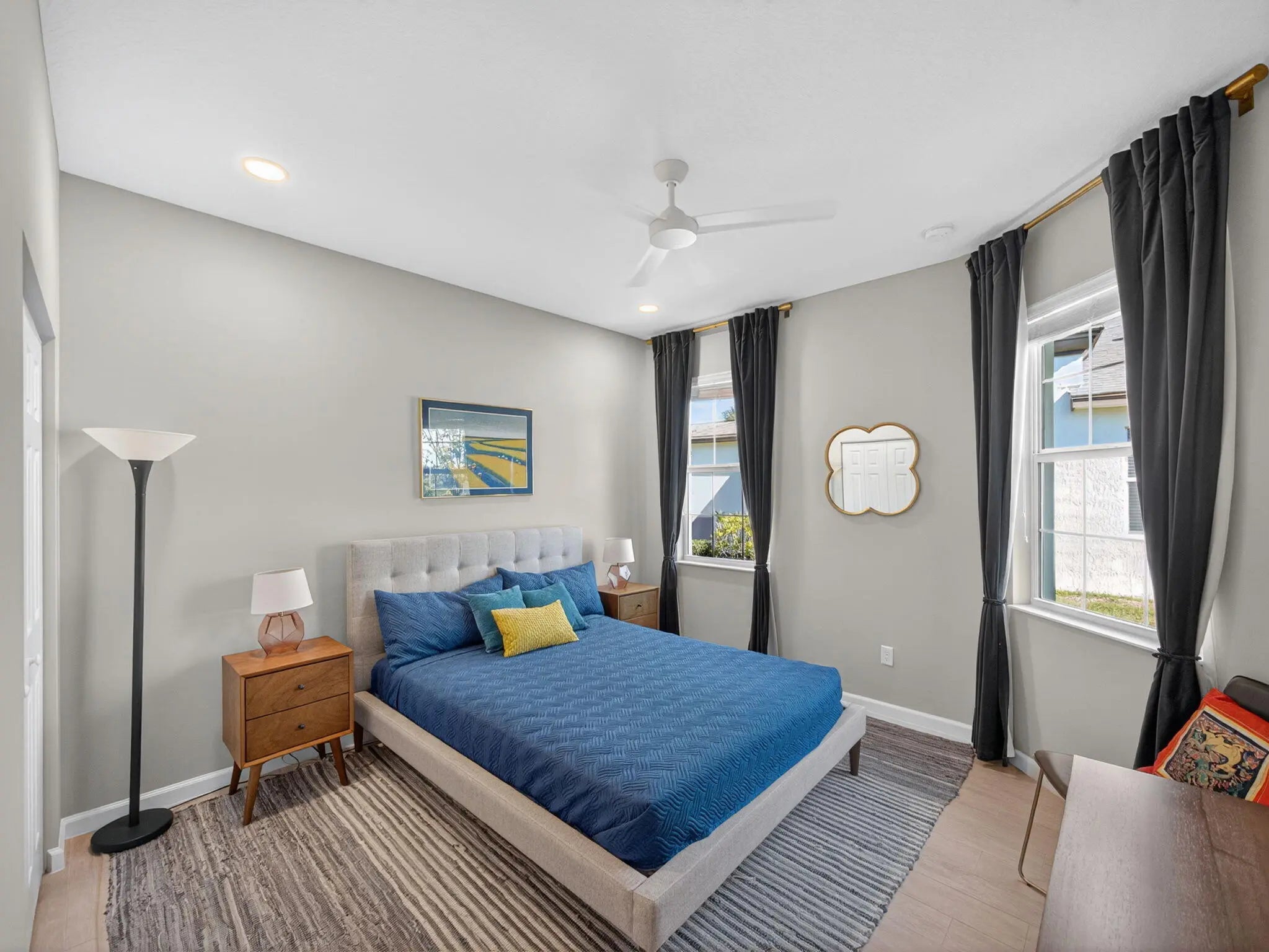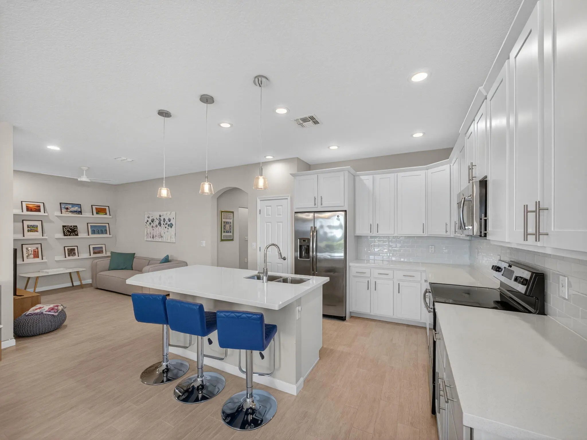 Experience refined Florida living in this exquisite Mahogany model villa, perfectly situated in the coveted LakePark at Tradition community. Designed with modern elegance in mind, this 2-bedroom plus den, 2-bathroom residence showcases a seamless blend of style, comfort, and tranquility. Step inside to an open-concept floor plan featuring contemporary tile flooring throughout, gorgeous quartz countertops, and full-impact glass windows that invite natural light and provide year-round peace of mind. The gourmet kitchen flows seamlessly into the spacious living and dining areas--perfect for entertaining or unwinding in style. Your private outdoor oasis awaits with a resort-style pool and spa overlooking lush preserve views, creating a tranquil retreat that feels worlds away.