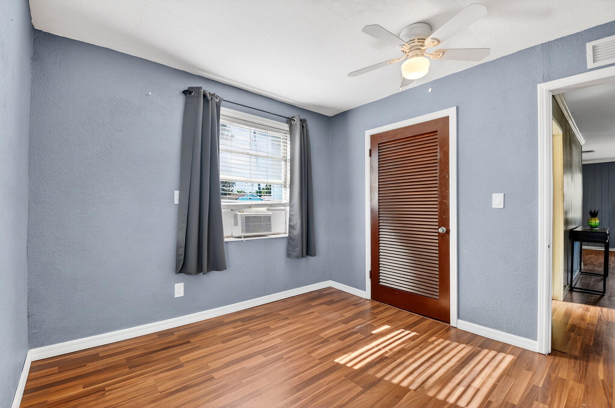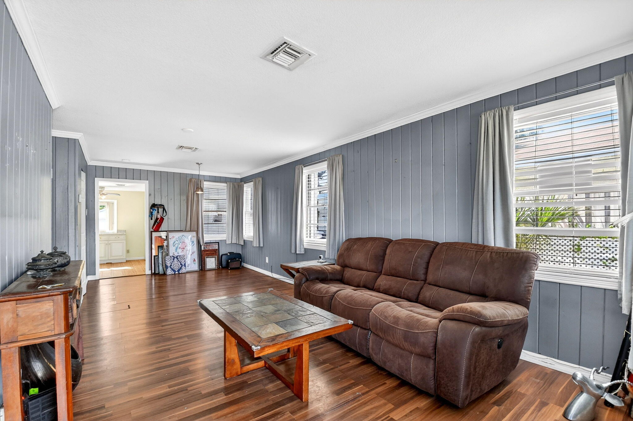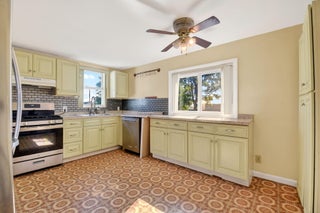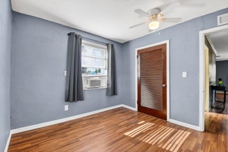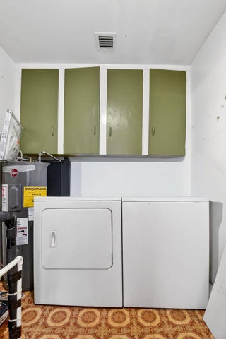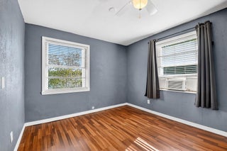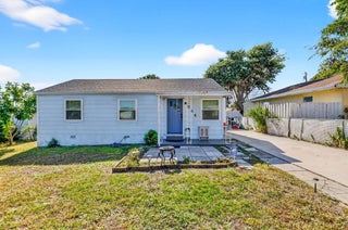 Prime location! This charming starter home offers easy access to everything downtown West Palm Beach provides. The exterior is vinyl siding for easy maintenance. Peace of mind comes with a newer roof (2024), which features a solar ventilation fan for energy efficiency. The flat roof section also has a newer reflective coating. The kitchen boasts hardwood cabinets and stainless steel appliances. Beautiful laminate flooring runs through the main living areas. Additional upgrades include partial impact windows/accordion shutters and a newer washer/dryer. Enjoy the large, fully fenced backyard (with room for a pool!) and a separate screened patio. Great curb appeal and it won't last long! Professional photos coming soon!