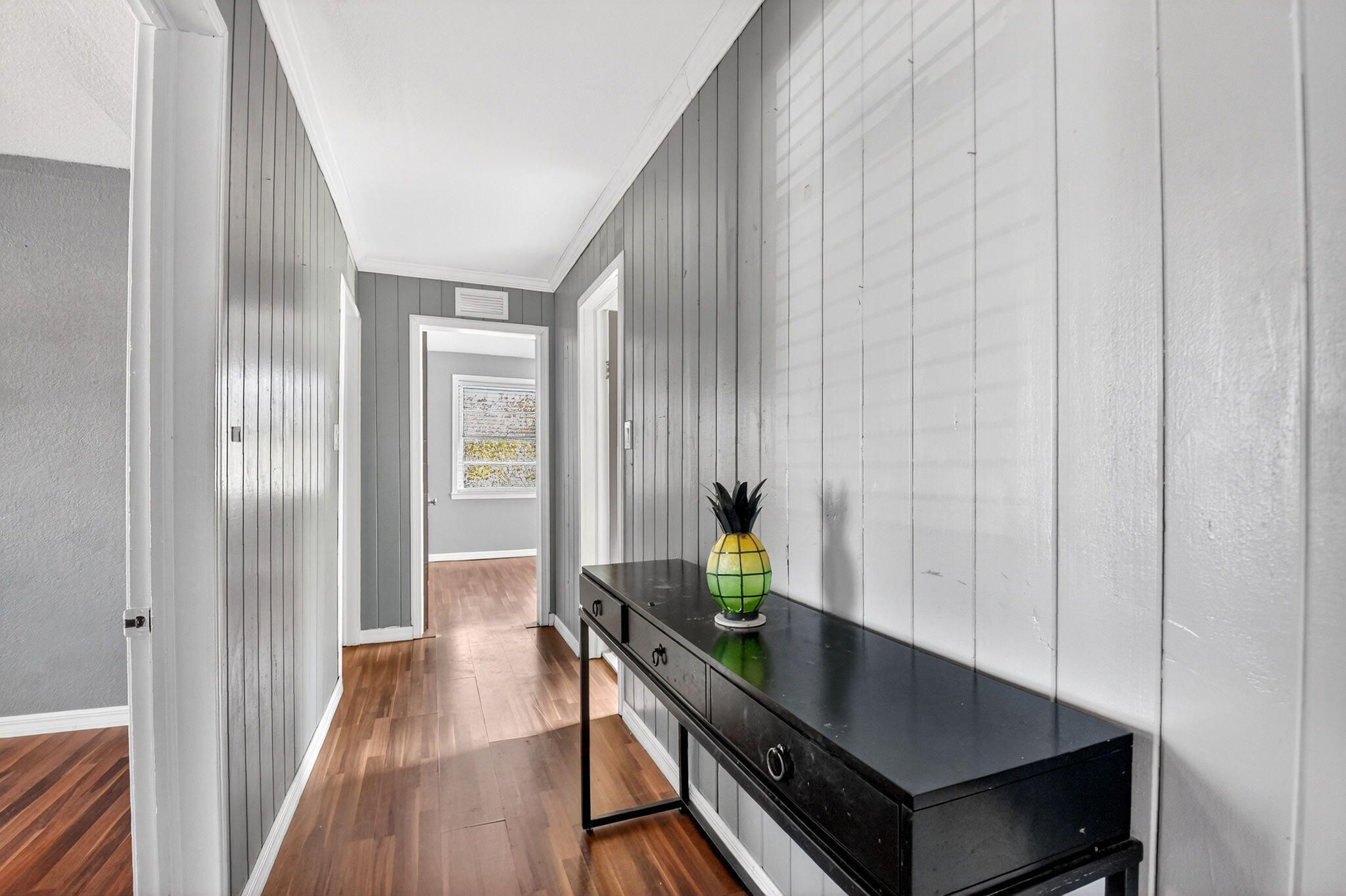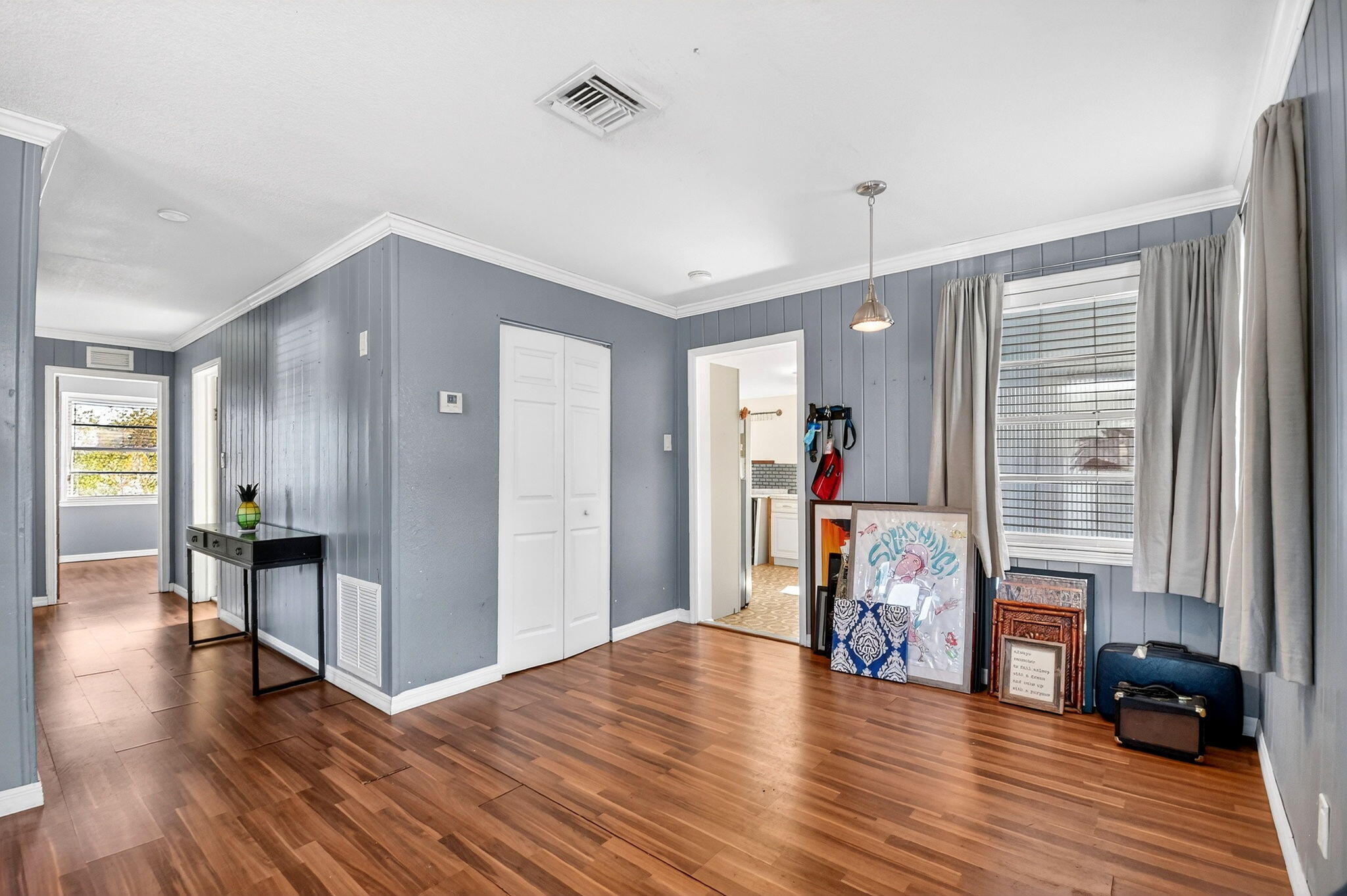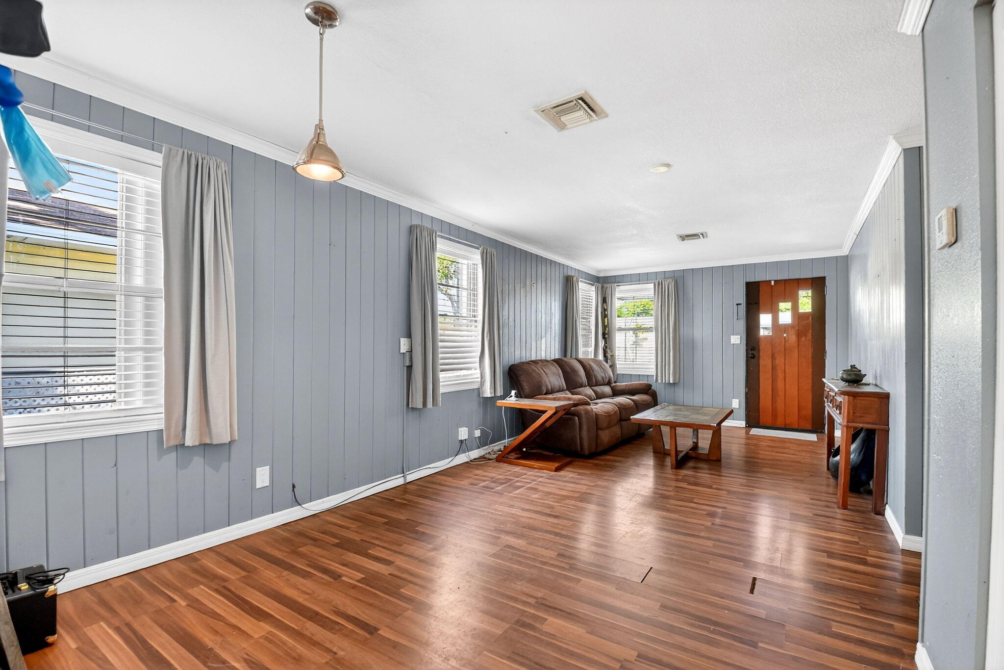 Prime location! This charming starter home offers easy access to everything downtown West Palm Beach provides. The exterior is vinyl siding for easy maintenance. Peace of mind comes with a newer roof (2024), which features a solar ventilation fan for energy efficiency. The flat roof section also has a newer reflective coating. The kitchen boasts hardwood cabinets and stainless steel appliances. Beautiful laminate flooring runs through the main living areas. Additional upgrades include partial impact windows/accordion shutters and a newer washer/dryer. Enjoy the large, fully fenced backyard (with room for a pool!) and a separate screened patio. Great curb appeal and it won't last long! Professional photos coming soon!