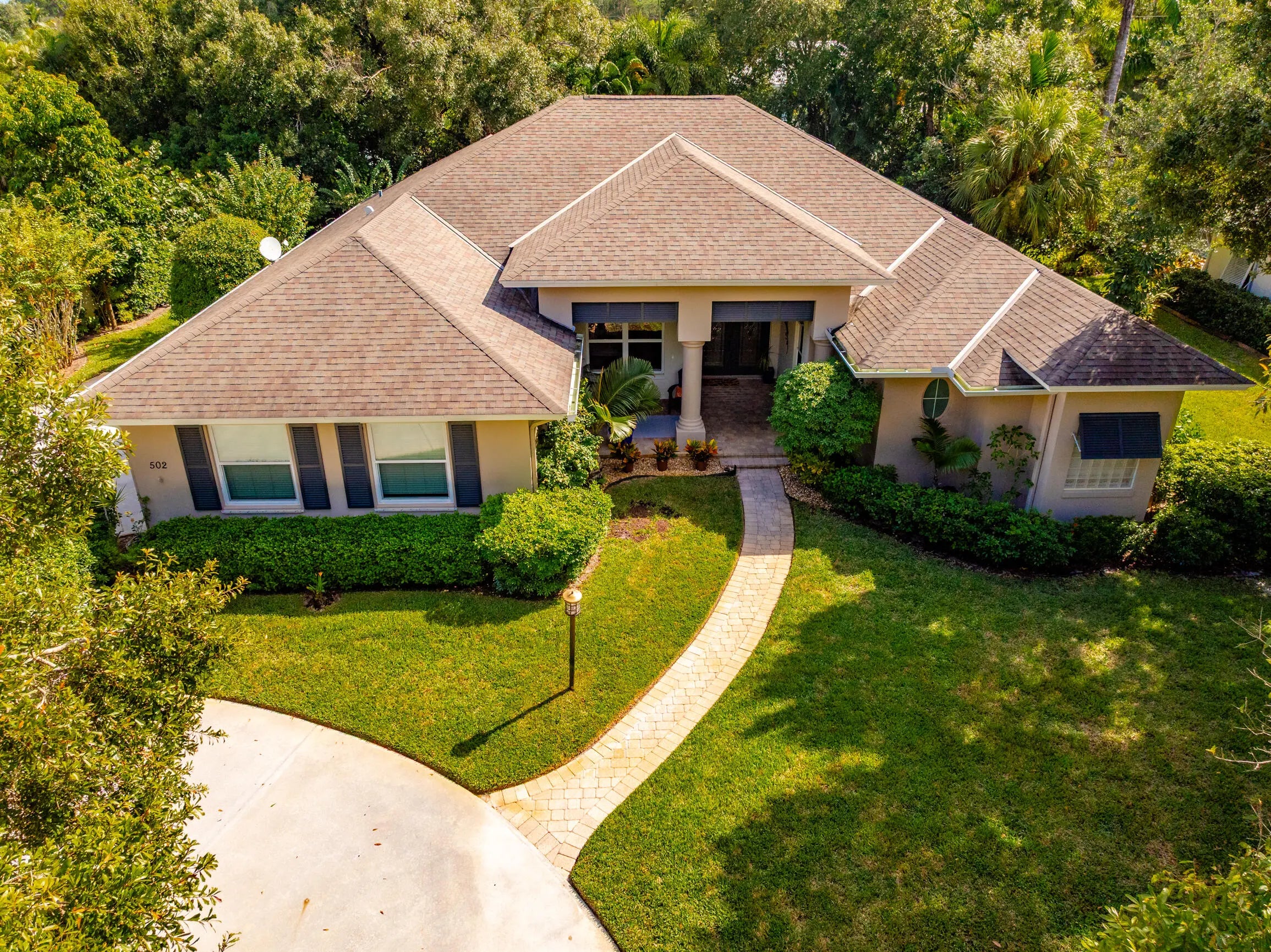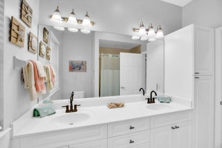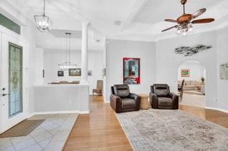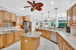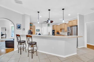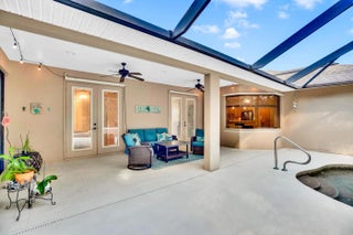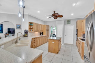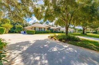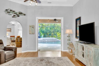 Nestled in the sought-after enclave of The Crossing, this custom-built pool home awaits. Lush .36/acre lot affords tranquility and privacy. Step inside to enjoy living areas that open to the solar-heated pool. Island kitchen features miles of cabinets and counter space with bar seating. Luxe master suite has walk-in closets, dual vanities, soaking tub, and roomy shower. Den adjoins the primary suite and can easily flex as 4th bedroom/nursery with walk-in closet. Circular drive and side-entry garage can park plenty of cars! Reroofed and replumbed, with up-to-date HVAC units and water heater, full hurricane protection and built-in generator. One-acre lake is the focal point of this elegant neighborhood. Life is a breeze on these oak-canopied streets!