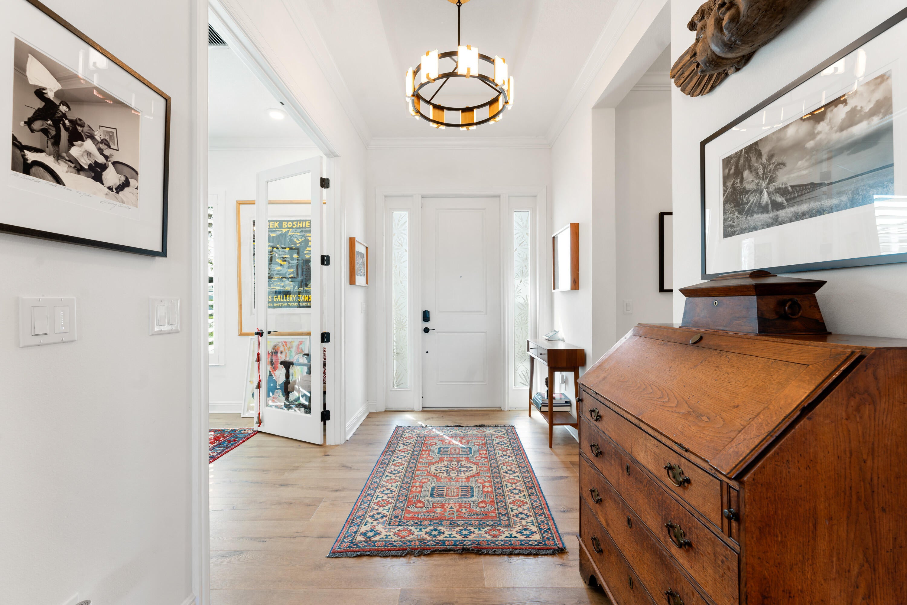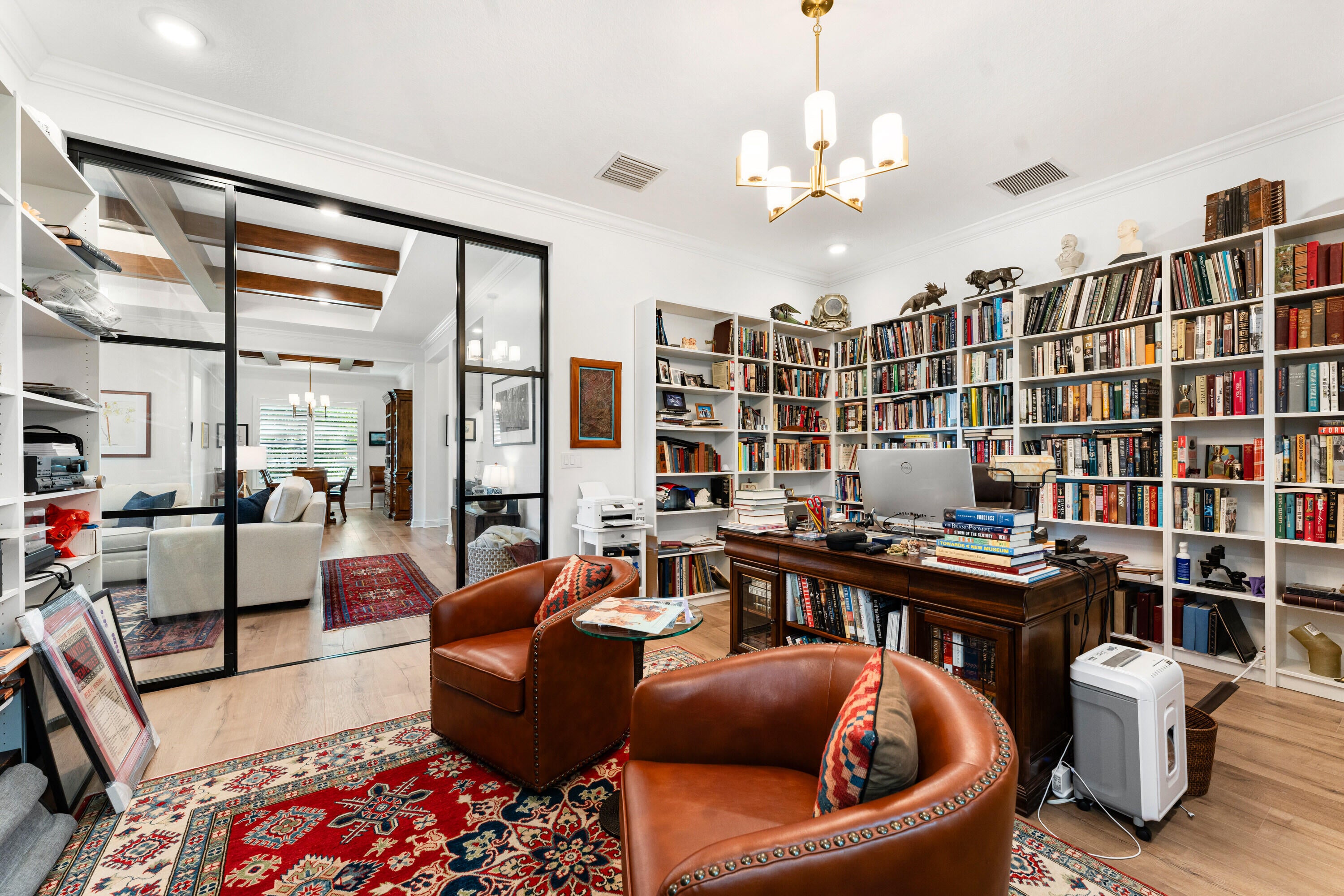 Sophisticated Lakefront Living in Cresswind Palm BeachStep into refined comfort with this exceptional Rosemary model, offering one of the best lakefront settings and values in the community. Perfectly positioned at the center of the lake with a side easement for privacy, this home captures stunning water views and a sense of calm from every angle.Thoughtfully designed for flexibility, the residence features two impressive bonus spaces -- a private office with glass doors, crown molding, and custom cabinetry, plus a light-filled glass-enclosed library that easily transforms into a studio, lounge, or guest retreat.The gourmet kitchen blends elegance and functionality with white soft-close cabinetry, quartz surfaces, a 36" gas cooktop and hood, walk-in pantry, coffee bar, and a marble-topped wine station. Designer touches continue throughout the home, including wood-beamed ceilings, custom built-ins, LVT Flooring, custom wood shelving in closets, crown molding, and motorized window shades. Wake up to peaceful lake views from the primary suite, complete with dual walk-in closets and a spa-inspired bath featuring dual vanities and a pebble-stone shower. A well-appointed guest suite with a private bath, stylish powder room, and 3-car garage round out the interior. The laundry room is beautifully finished with upper and lower cabinetry, quartz counters, and a utility sink. Impact glass windows and doors, along with a full-house generator, provide unmatched security and comfort year-round. The outdoor living space is ideal for relaxing or entertaining with a covered patio, hurricane-rated retractable screens, fenced yard with critter barrier, and pre-installed gas, water, and electric lines ready for a future summer kitchen. The lot also offers ample room for a pool with lush landscaping equipped with lighting. A home rich in quality, thoughtful design, and enduring value with many more upgrades come experience it in person. All this in the Prestigious Cresswind at Westlake a residential community offering a range of amenities tailored for active adults 55+. Move-in ready, newly finished home. World-class amenities, Clubhouse, Very active community, Silver Award Winner - Best of 55+ Housing Awards (National Association of Home Builders)" "2021 "Top 100 Places to Live" (ideal Living Magazine)" The community clubhouse, managed by a full-time lifestyle director, offers a SmartFIT Training Center powered by EGYM, event and game rooms, an arts and crafts studio, pickleball and tennis courts, a dog park, resort-style and resistance pools, a spa, outdoor event plaza, and much more. Westlake Adventure Park amenities include a lagoon pool with a 3-story slide, a splash pad, cabanas, lawn space for parties, an outdoor concert pavilion, basketball courts, an adult pool clubhouse (lodge), a playground, a dog park. As an owner, you also have access to Westlake's Adventure Park. Cresswind HOA covers lawn maintenance, internet and the community amenities.