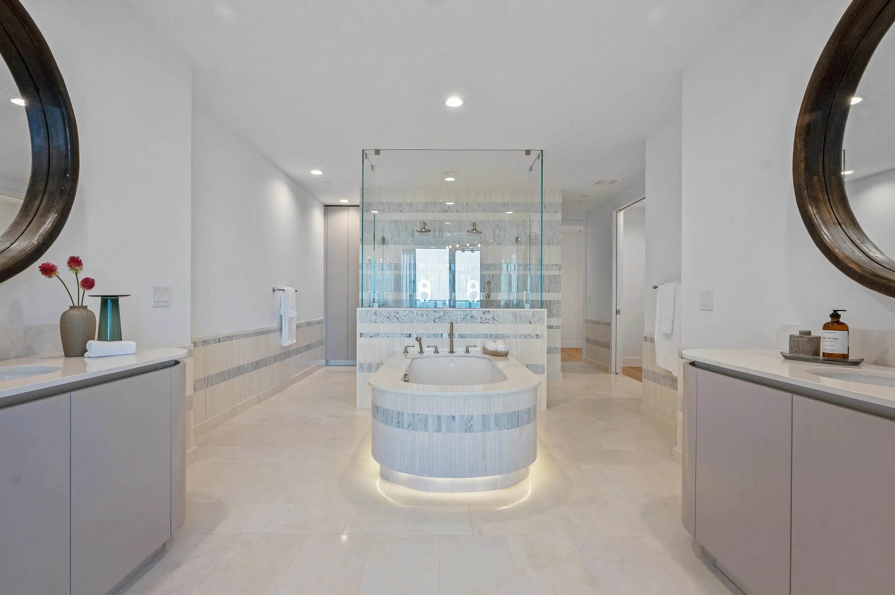 AVAILABLE NOW! BEST VALUE on the highly desirable North side of Forte on Flagler, a 40-residence, boutique, luxury waterfront building. MOVE-IN READY!A private elevator opens directly into your spacious 4 bedroom/4.5 bathroom open floor plan. Floor-to-ceiling glass with panoramic water views. Enjoy a gourmet kitchen with high-end appliances & custom cabinetry, expansive living and dining zones ideal for entertaining, & an oversized terrace that merges indoor elegance with outdoor ease. The primary suite features a spa-style bath & generous walk-in closet, while three additional bedrooms & baths offer comfort and privacy for family or guests. Exquisite 5-star amenities curated for discerning buyers who value privacy, prestige & the ultimate waterfront lifestyle. A MUST SEE!
