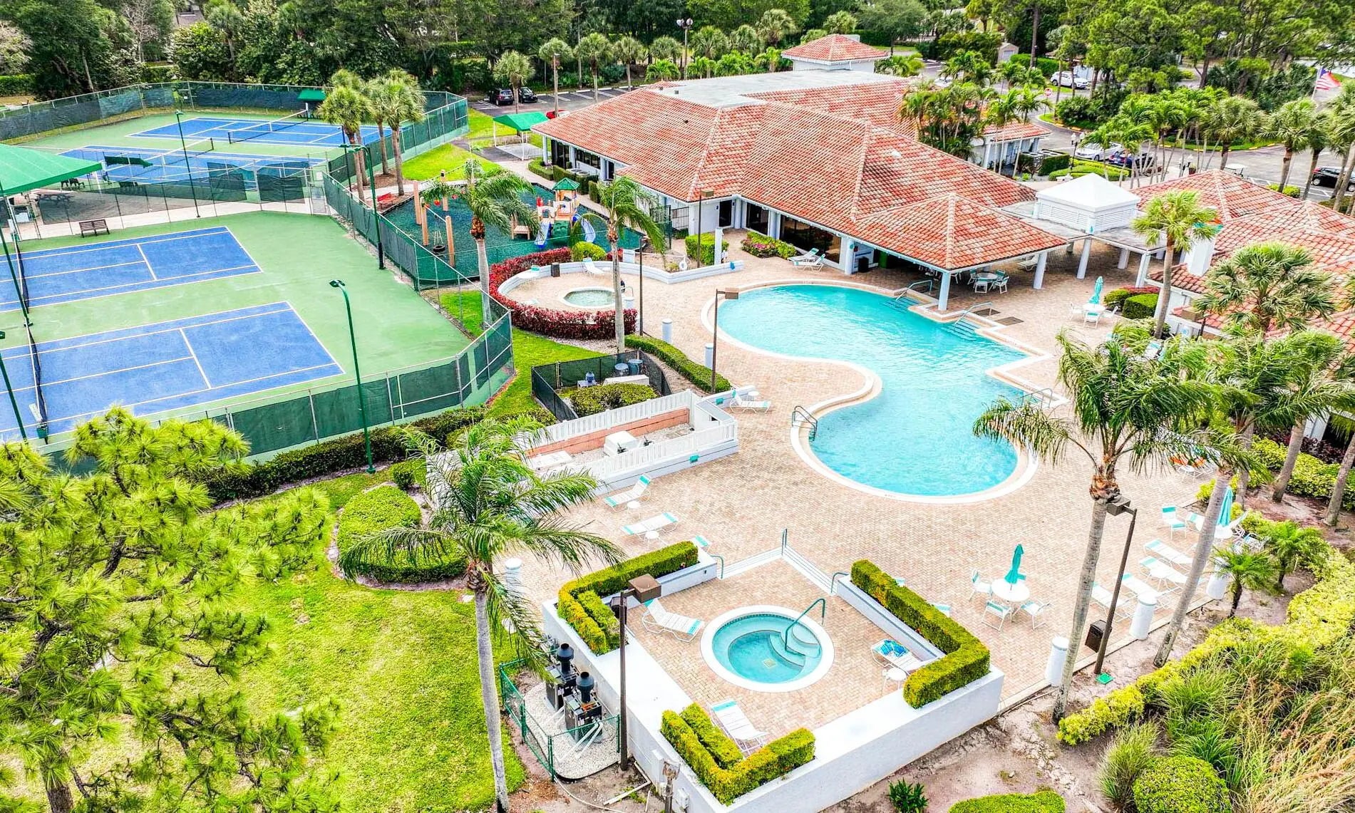 Basketball, Billiards, Clubhouse, Community Room, Fitness Center, Pickleball, Playground, Pool, Shuffleboard, Spa-Hot Tub, Street Lights, Tennis, Whirlpool