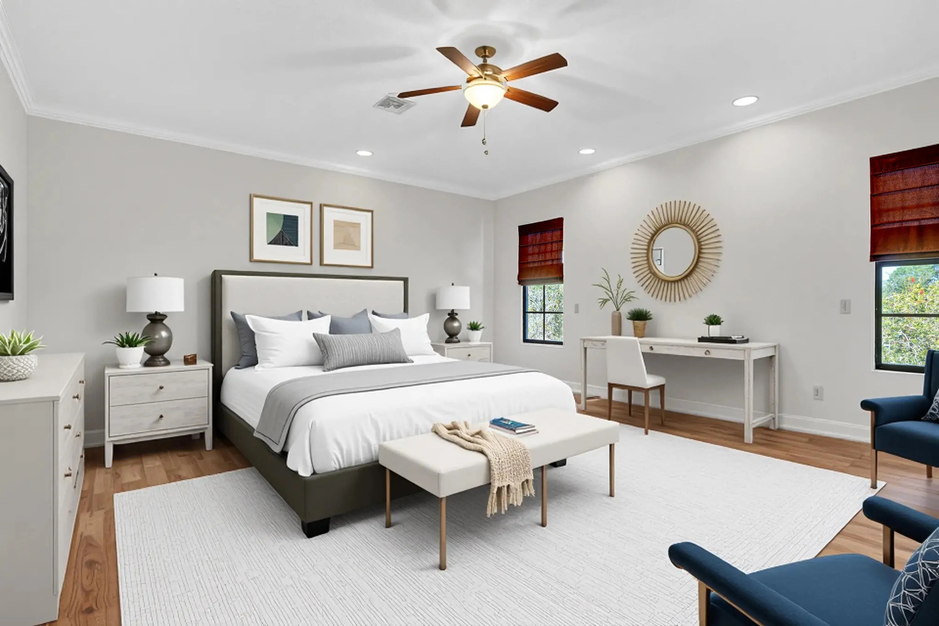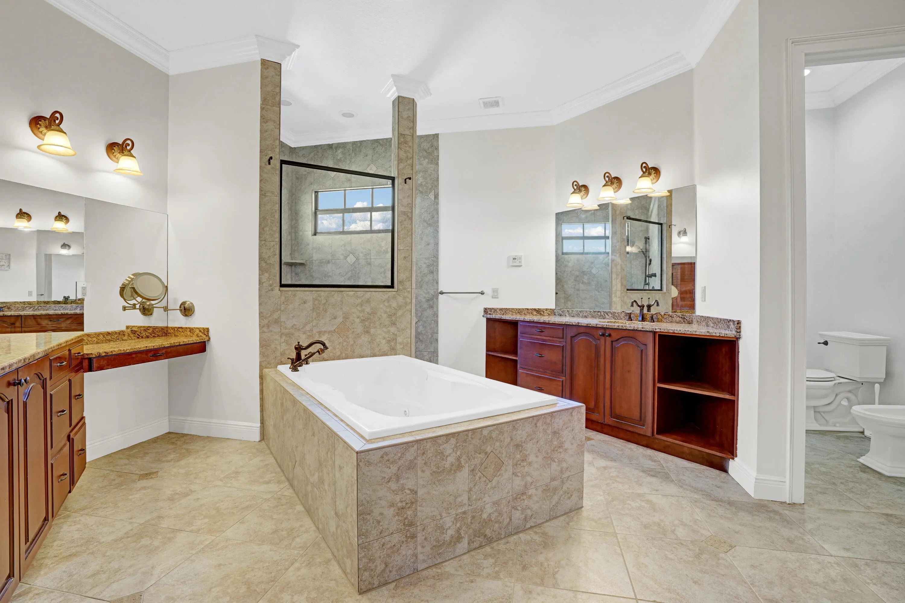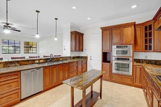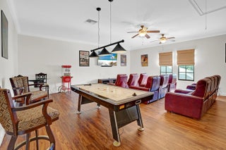 Stunning and sprawling 4100+ sq ft Mediterranean style home. Features include 6 bedrooms and 3 full bathrooms, 2025 roof, 2025 AC, a home generator, fully fenced yard, oversized garage and an expansive outdoor kitchen. Oversized screened in covered patio with preserve/canal views. This home is an entertainer's paradise and would be great for a large family or multi generational living, with two bedrooms on the first floor next to a full bathroom with walk in shower. Master bedroom and 3 more bedrooms upstairs with one being oversized (25x25) and currently set up as a media room. Chef's kitchen with a 5 burner wolf gas range, 42'' cherry wood cabinetry with crown molding and extended counter seating. Spacious living room features a small wet bar, archways and tile flooring. Split zone AC.