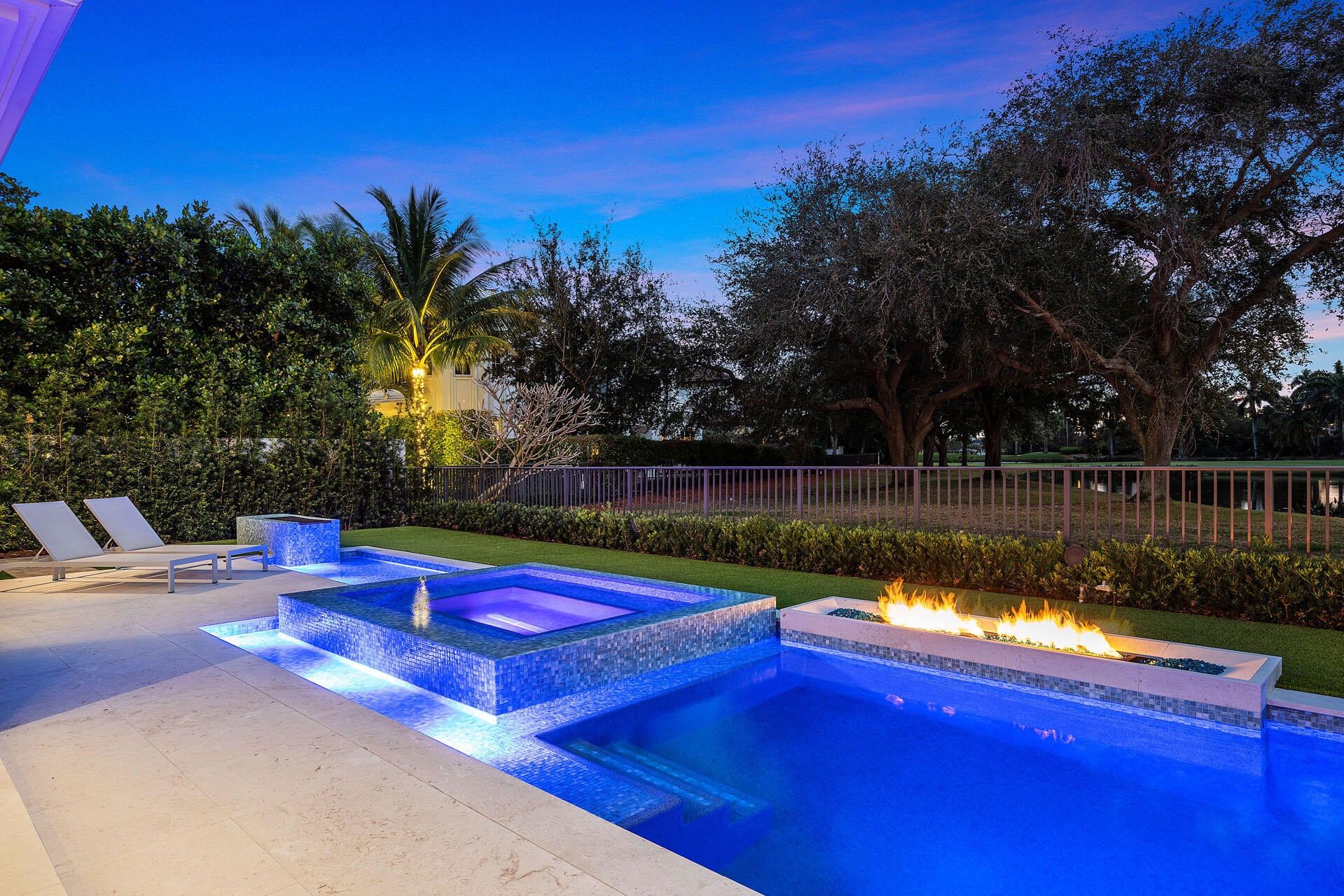 Built by Bloomfield Construction in 2019, 148 Thatch Palm Cove offers an exceptional blend of modern luxury and golf course tranquility. Positioned on a quiet cul-de-sac of just seven residences, the home overlooks the 5th hole of the Jack Nicklaus Signature course with picturesque lake views.Spanning more than 6,100 square feet, the five-bedroom residence is thoughtfully designed for both comfort and entertaining. The south-facing outdoor retreat features a resort-style pool with spa, elegant fire and water features, a built-in barbecue, and an expansive loggia with motorized phantom and vinyl screens for effortless indoor-outdoor living.Inside, a grand first-floor primary suite includes dual bathrooms and dressing rooms, while additional highlights include dual laundry roomsand a three-car garage plus golf cart bay with space for lifts. Every detail reflects a commitment to refined living in one of Royal Palm's most private settings.