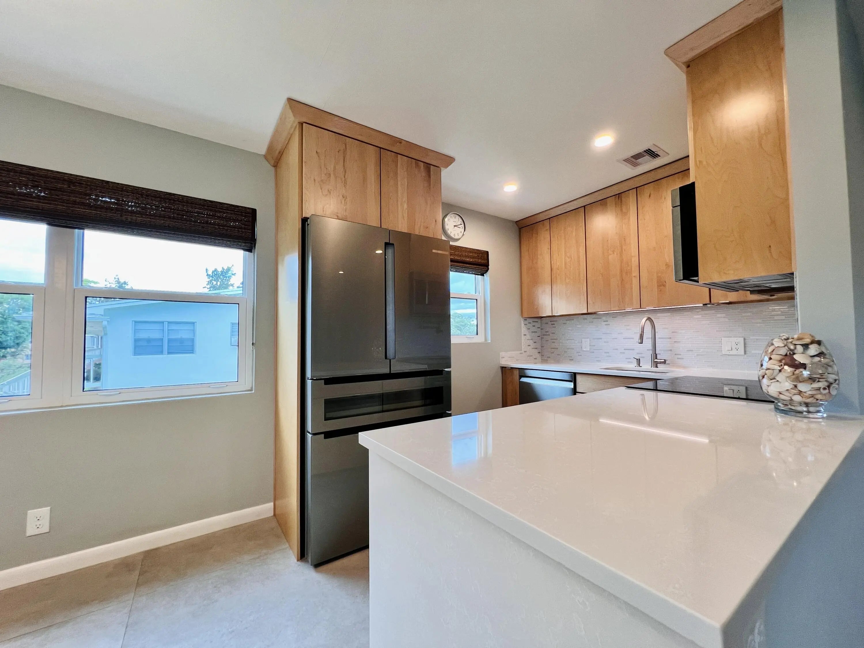 SPECTACULAR MOVE-IN READY WITH WATER VIEWS IN 55+ CENTURY VILLAGE! Top-Of- The Line Renovated Corner 2/1.5 With Open Concept Living Area. Cook's Kitchen Features Custom Cabinets, Quartz Counters, Upgraded Appliances, and a Pot Filler! Updated Baths; Full Bath With Step-in Shower. Large Format Porcelain Tile Flows Throughout. Popcorn Removed From Ceilings. New Dimmable LED Ceiling Lighting Throughout. Custom Window Treatments. Designer Feature Wall With Extra Insulation In Living Area. Tinted Hurricane Impact Windows - Including the Slider. Systems; AC & Water Heater Are 2021. Nicely Maintained Building With Waterside Resident Patio and New Roof (2021). Conveniently Located Close the Camden & Kent Pools. Century Village Is A Vibrant 55+ Community Located In Desirable Palm Beach County...
