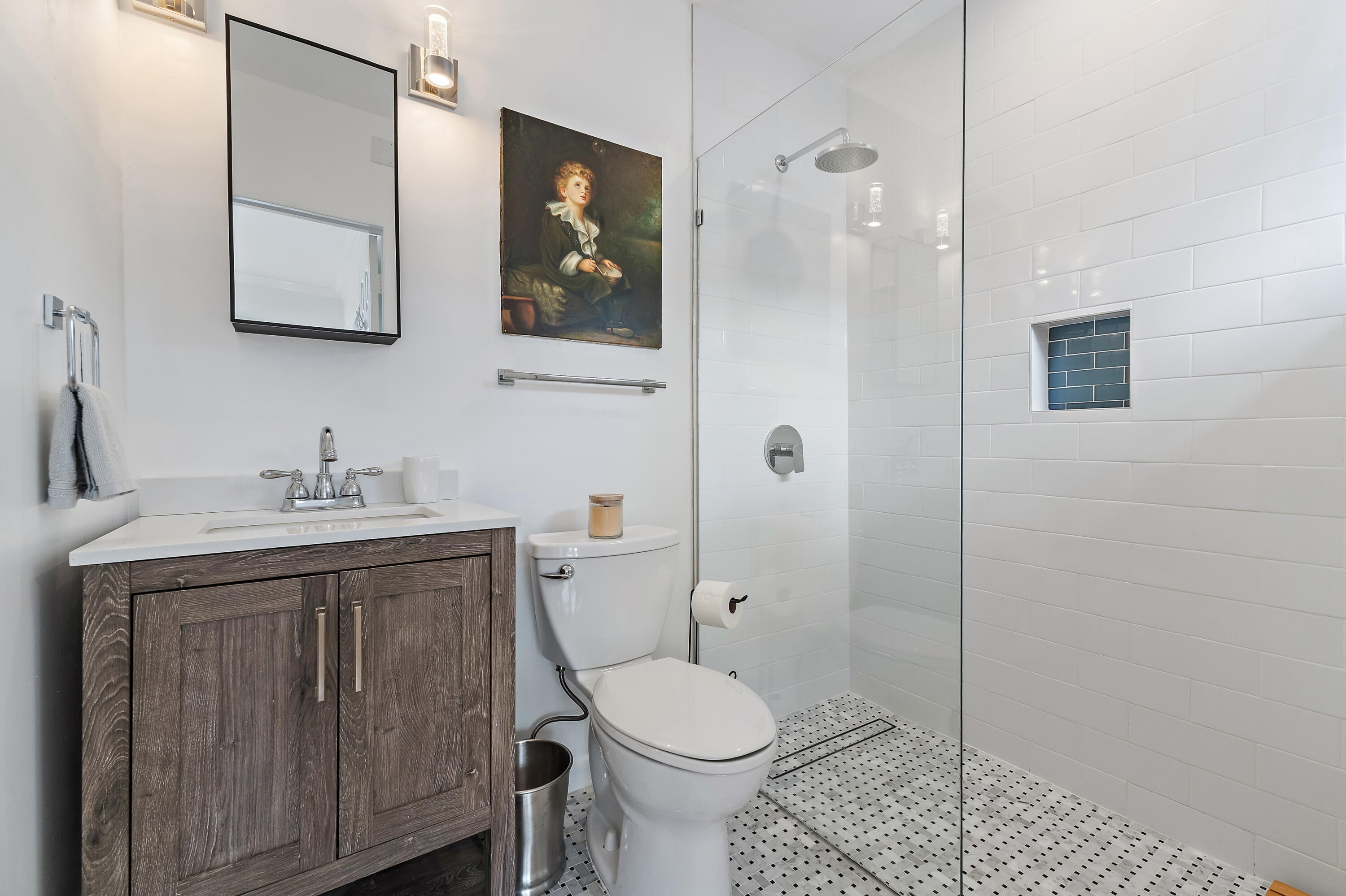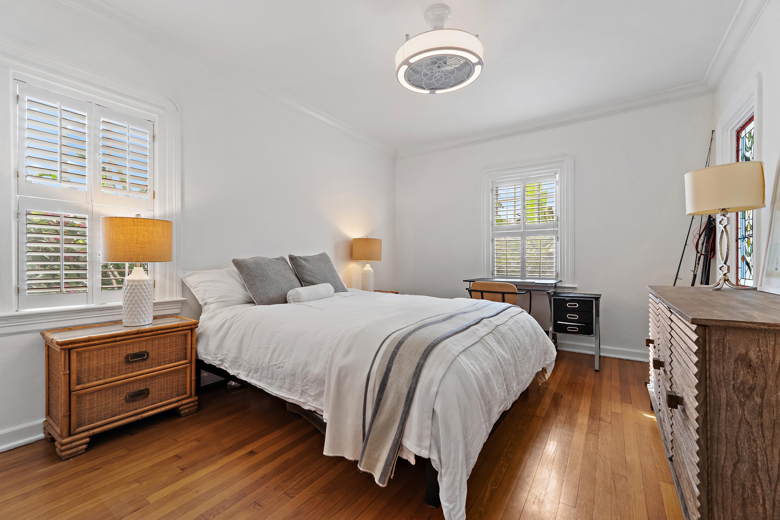 Just one block from the water, this beautifully updated 1940s home blends timeless charm with modern living. The main house features 3 bedrooms and 3 full baths, a bright open layout, hardwood floors, and an updated kitchen. Natural light highlights the home's original character and thoughtful upgrades. Step outside to a private oasis with deep dip pool and inviting patio, perfect for relaxing or entertaining. A separate guest studio offers a full kitchen, bath, and laundry. Ideal for visitors or potential rental income. With updated systems and elegant finishes throughout, this Northwood gem combines historic appeal with contemporary comfort in a prime location.