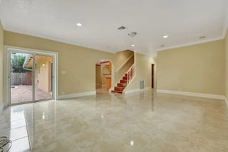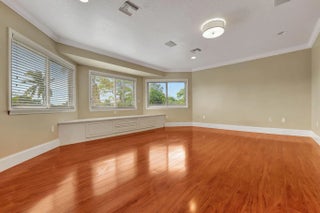 Introducing one of the largest pool homes in the neighborhood, featuring a stunning two-story split floor plan. The expansive master suite, located on the entire second floor, includes two spacious walk-in closets, dual sinks and a charming window seating/storage area. This impressive suite also has a private enclave, perfect for an office or potential fifth bedroom. On the lower level, discover a cozy secondary master bedroom, two additional bedrooms, and 2.5 bathrooms. The generous living area invites relaxation, while the dining space caters to both casual and formal gatherings. Designed for entertaining, the patio and pool are conveniently positioned just off the kitchen, with ample parking for up to six vehicles.