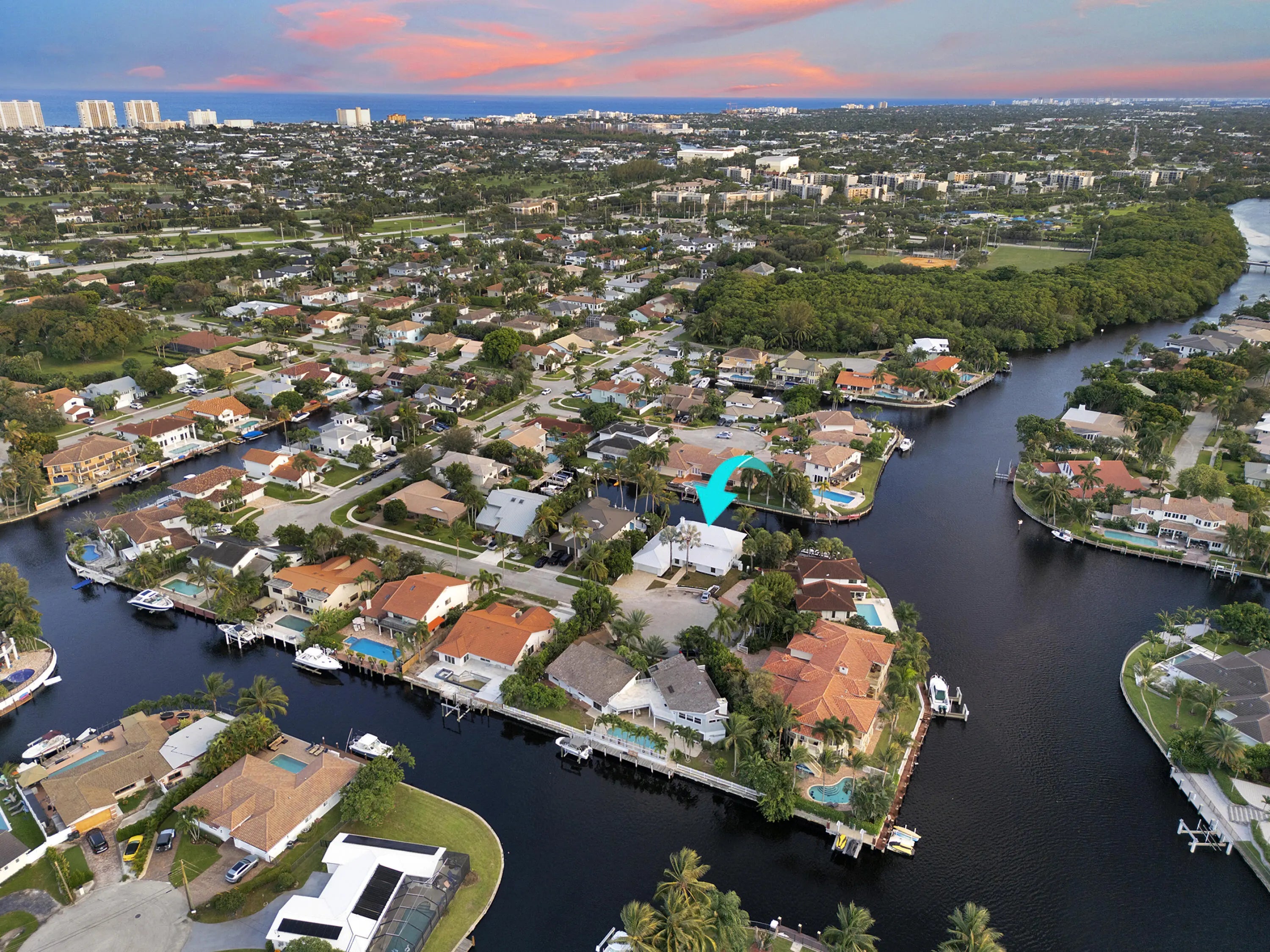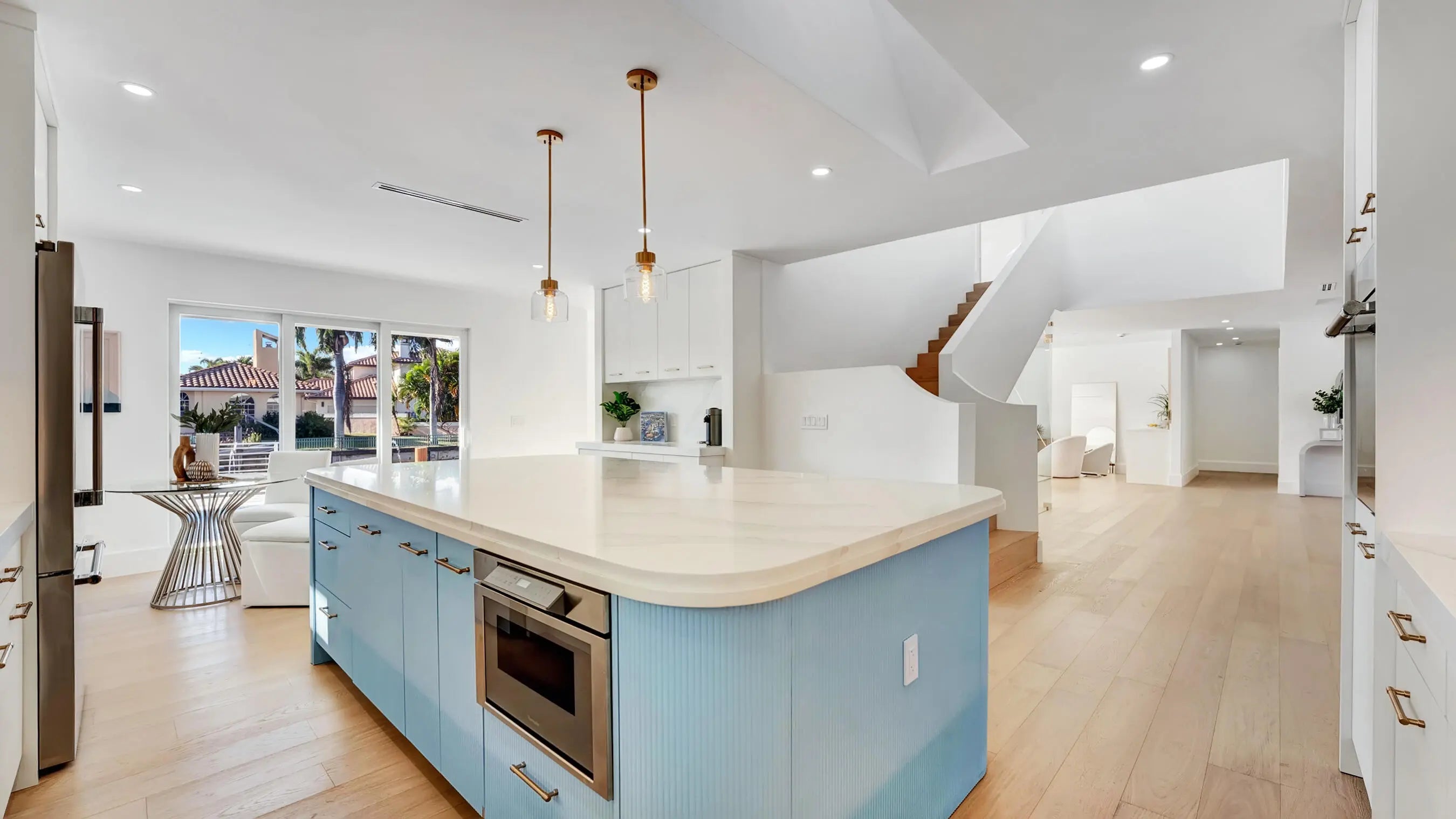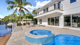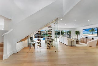 Be the first to live in this newly and fully reimagined modern contemporary estate, nearly 4,000 Sq Ft luxury retreat on a private, .23-acre cul-de-sac lot showcasing 108 feet of waterfront living and private dock. With its bright southern exposure and breathtaking views of the Intracoastal waterway, this home does not disappoint. From the moment you step inside, you'll be captivated by the open living room, overlooking the pool and waterfront patio. The grand entrance showcases a stunning glass-enclosed wine cellar. The chef's kitchen is outfitted with Thermador appliances, quartz countertops, and custom maple shaker cabinetry, setting the stage for elegant entertaining.