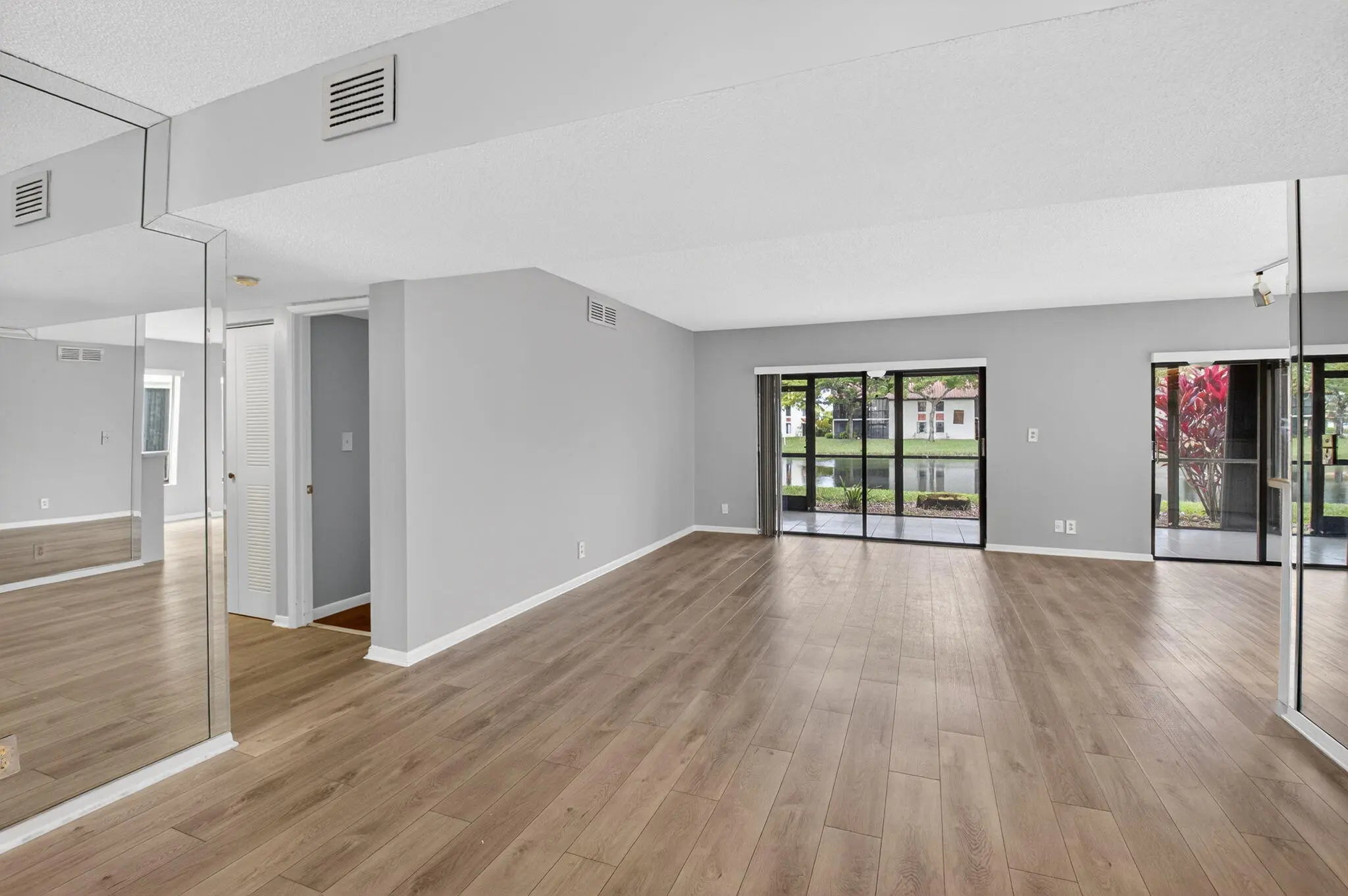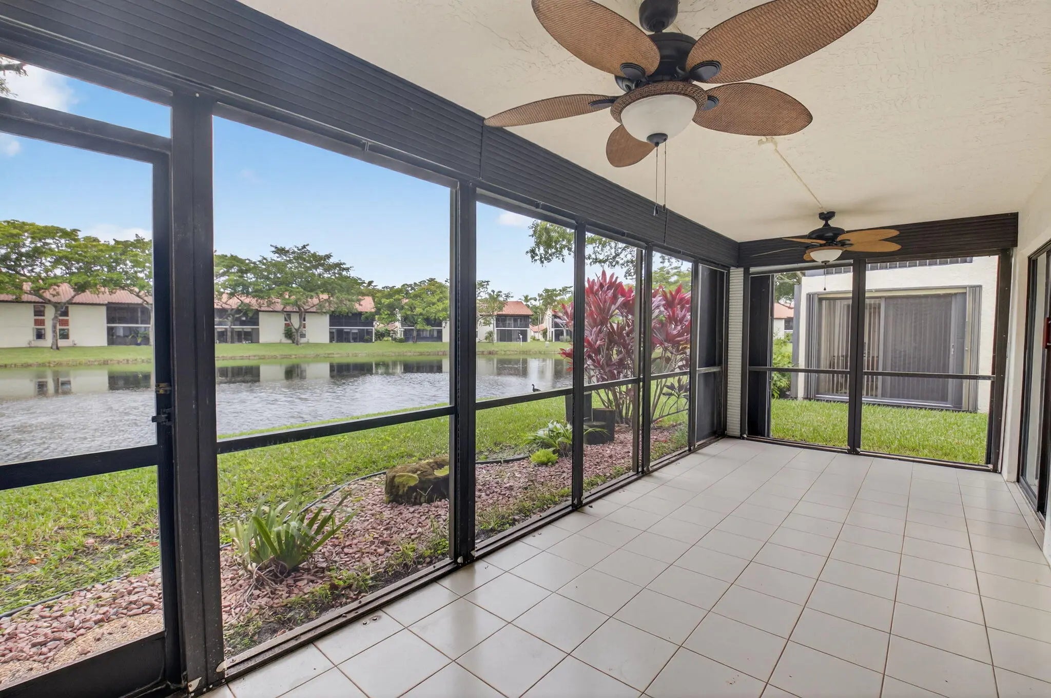 Now available in the gated 55+ community of Palm Chase. This beautiful 2 bed, 2 bath condo is incredibly spacious and offers an oversized screened-in patio with breathtaking views of the lake. There's ample living space with a large living room, separate open den/office, dining room and an eat-in kitchen. The master bedroom features a walk-in closet, a standard closet, and an en-suite bathroom with a walk-in shower. The entire unit has newer luxury vinyl flooring throughout and newer stainless steel appliances. There's a full washer and dryer located inside the unit as well and a newer A/C. Water and basic cable included. No pets per association - ESA and service animals are welcomed.