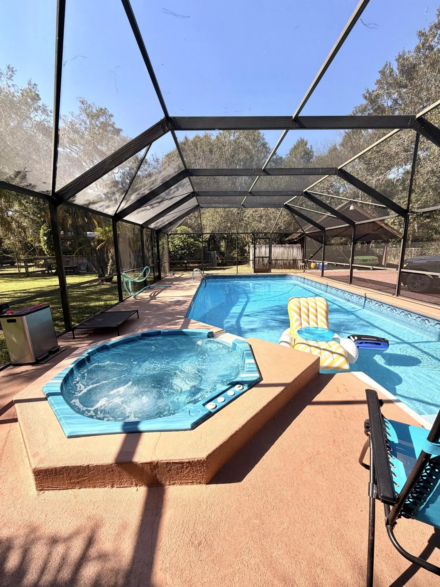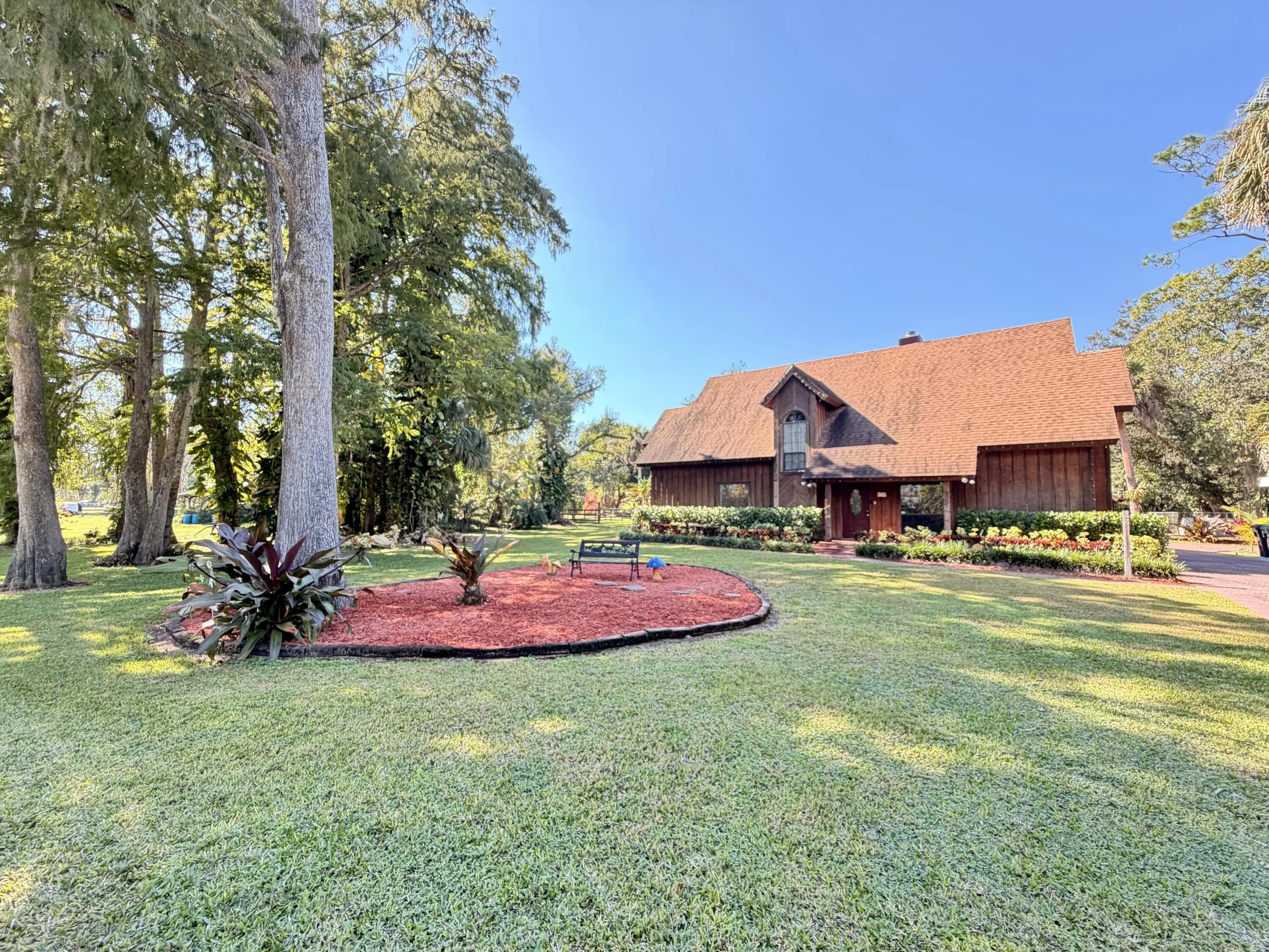 This home will WOW you! On almost 3/4 of an acre, this magnificent home has everything you need. It has a small efficiency beside the home, a carport/workshop area, two separately fenced sections, a horse stable with attached A/C-ed room, outdoor kitchen and private pool and hot tub. It's situated on a dead end road for added privacy and has a newer roof. The sunken living room features one wall with tall windows to let in the natural sunlight with attached bookshelves on each side and a wood fireplace. The French doors to the master bedroom lead to a large room and master bath, which includes double sinks, spa tub and separate shower and linen closet. Upstairs you'll find two bedrooms and a bathroom that has a huge storage area inside.