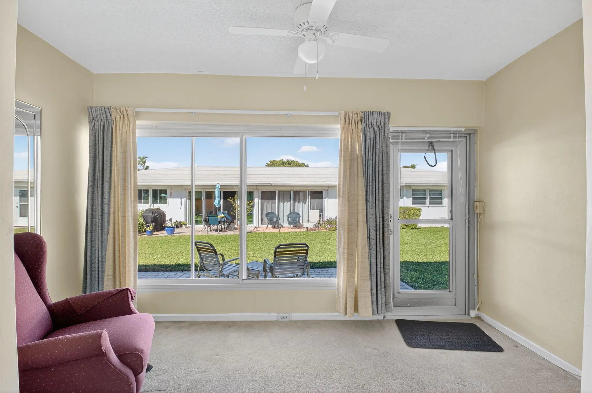 Welcome to this charming 2-bedroom, 2-bath villa-style condo located in the highly desirable 55+ community of Palm Beach Leisureville. Enjoy the comfort and convenience of true one-level living--no steps, no stairs, just an easy, accessible layout designed for everyday ease.This home has been thoughtfully updated for peace of mind, featuring a replaced electrical panel, newer water heater, and a newer HVAC system to keep you comfortable year-round. You'll also appreciate the complete hurricane protection for added security and confidence during storm season.Palm Beach Leisureville is known for its exceptional amenities and beautifully maintained grounds. Residents enjoy access to a free par-three golf course, perfect for casual rounds with friends. The community is