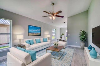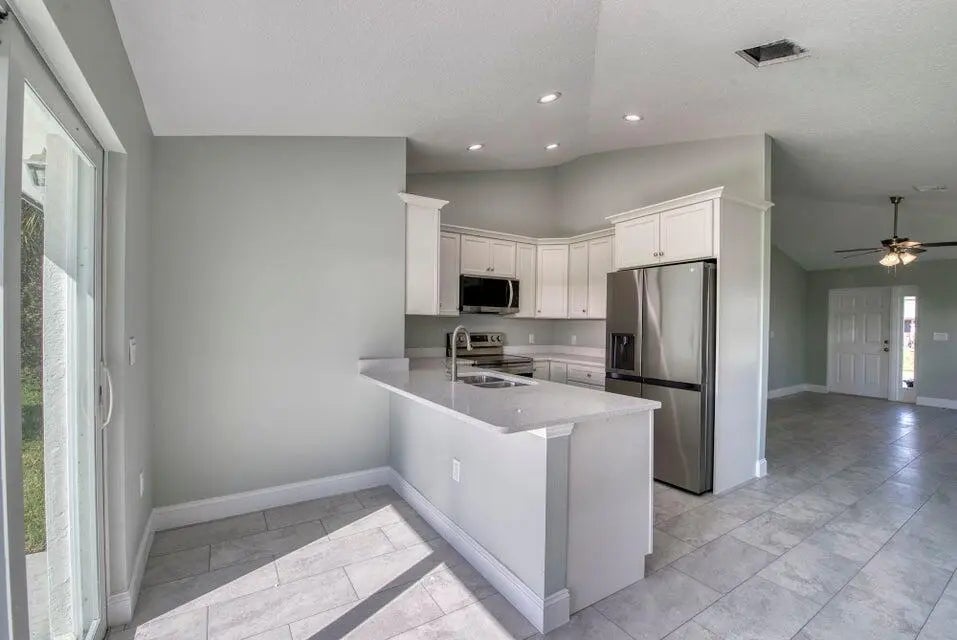 Welcome to this 2025 fabulous brand new single family home located in the prestigious Kings Bay community in the heart of Okeechobee. This 3 bedroom 2 bathroom open floor plan features a metal roof, impact glass, and a 2 car garage. The kitchen offers so much light, white custom cabinetry, granite countertops, tiled backsplash and stainless steel appliances. The living and dining rooms are very spacious which feature vaulted ceilings, crown moldings, impact sliding glass doors that open to a private backyard for entertaining your family and friends. In addition, gorgeous luxury vinyl flooring. The primary bedroom is light and bright, freshly painted, oversized windows, and a large walk-in closet. Both bathrooms are beautiful with new vanities, custom cabinetry, pretty lighting and an