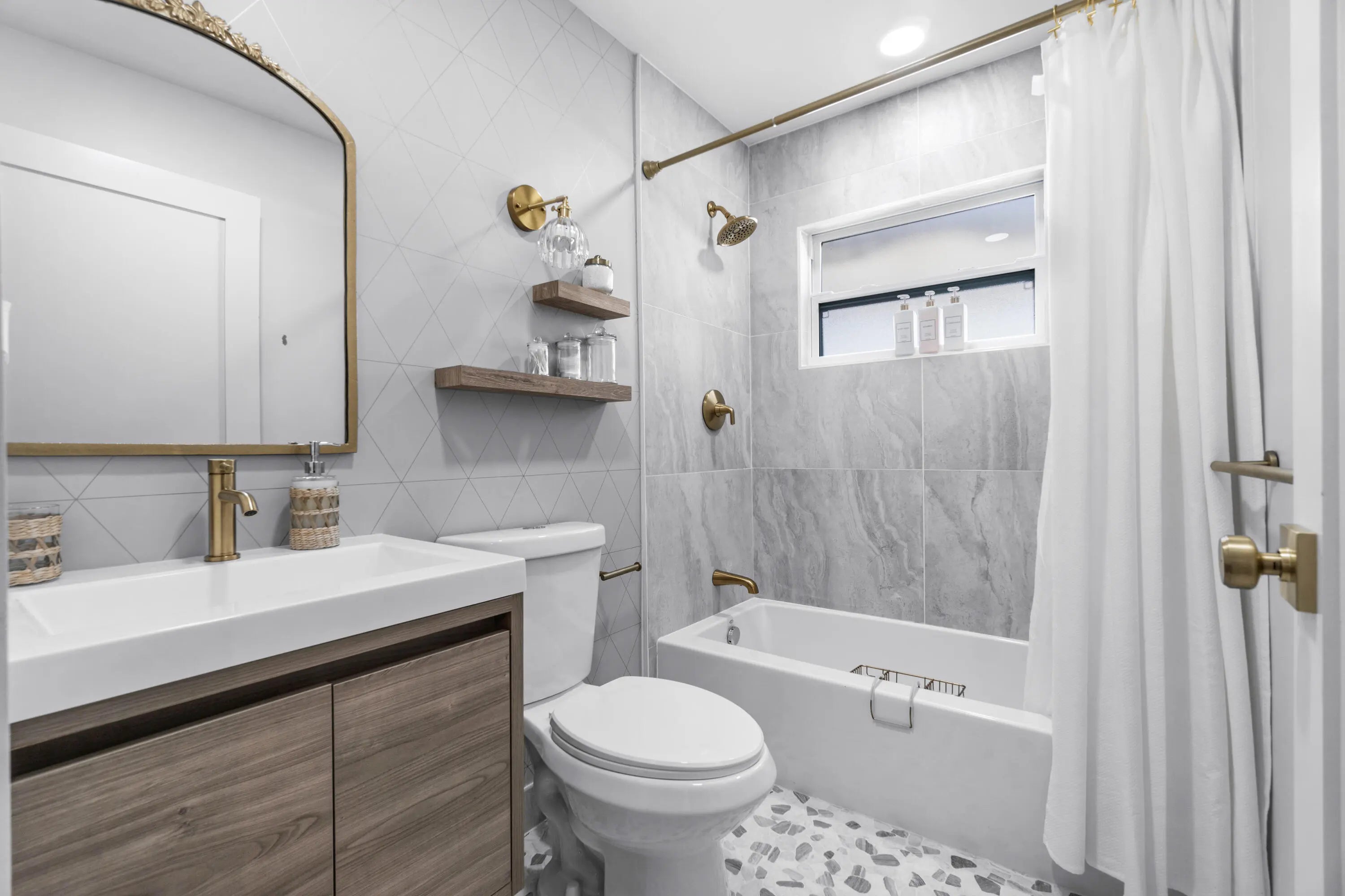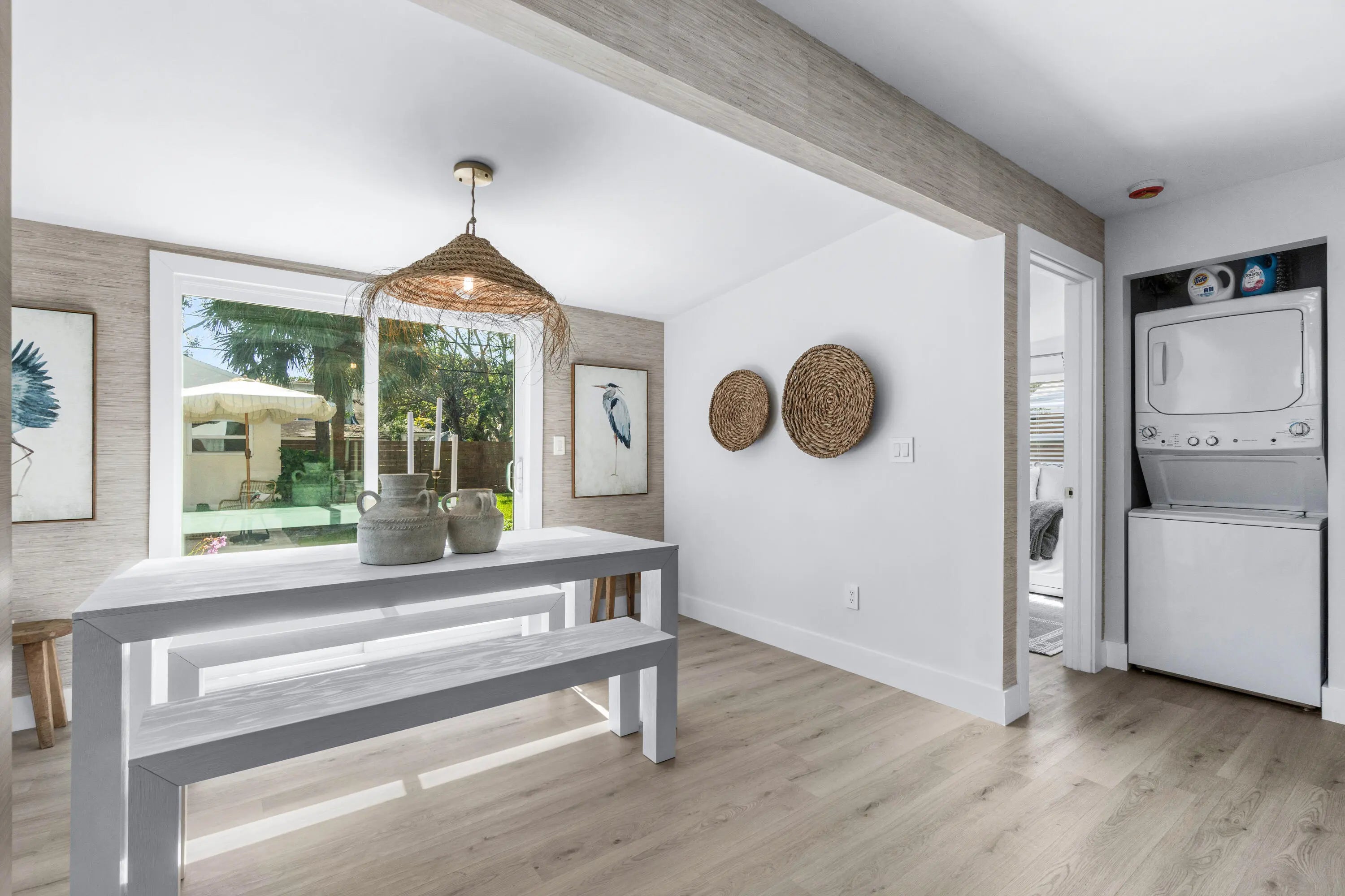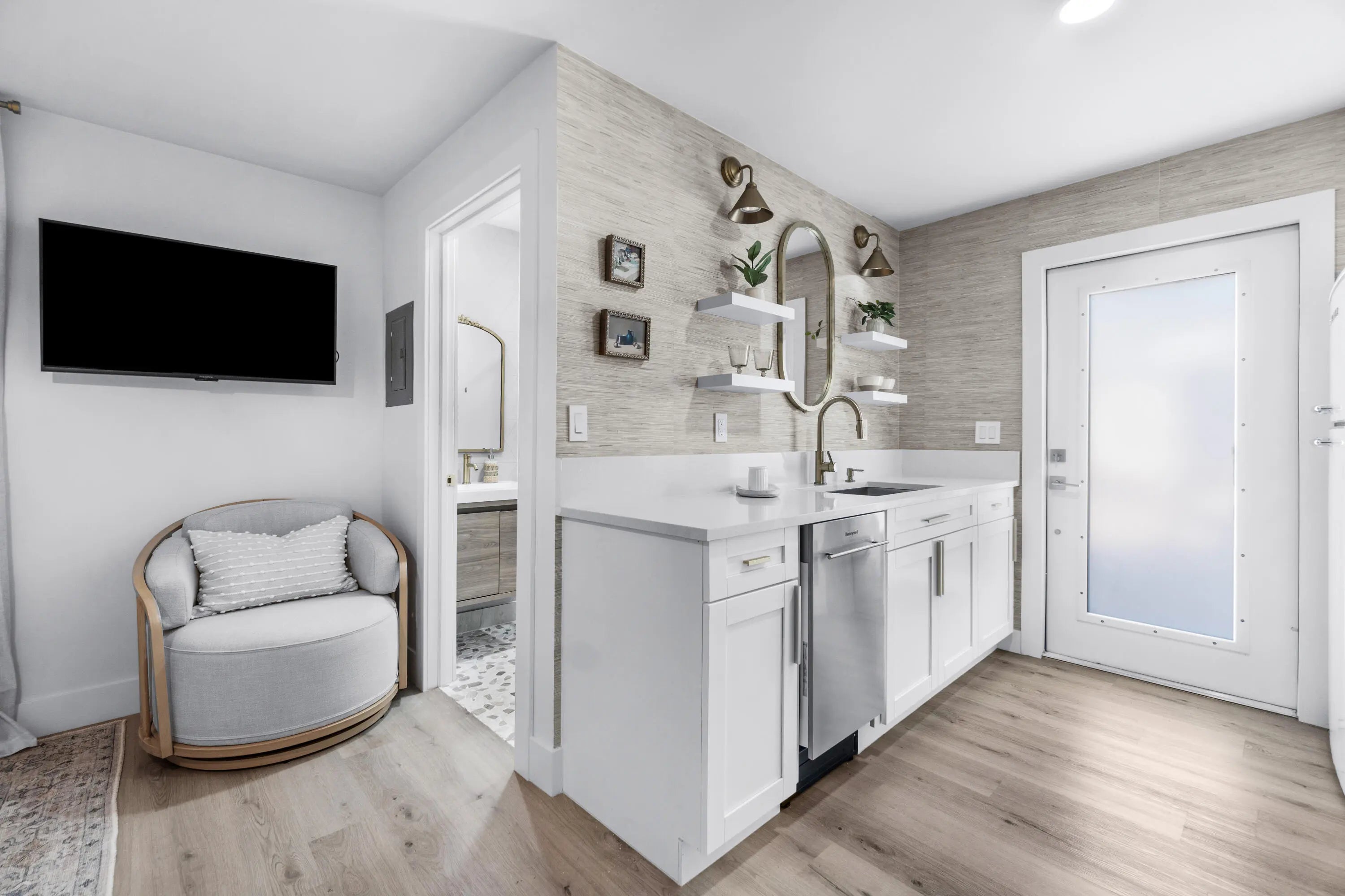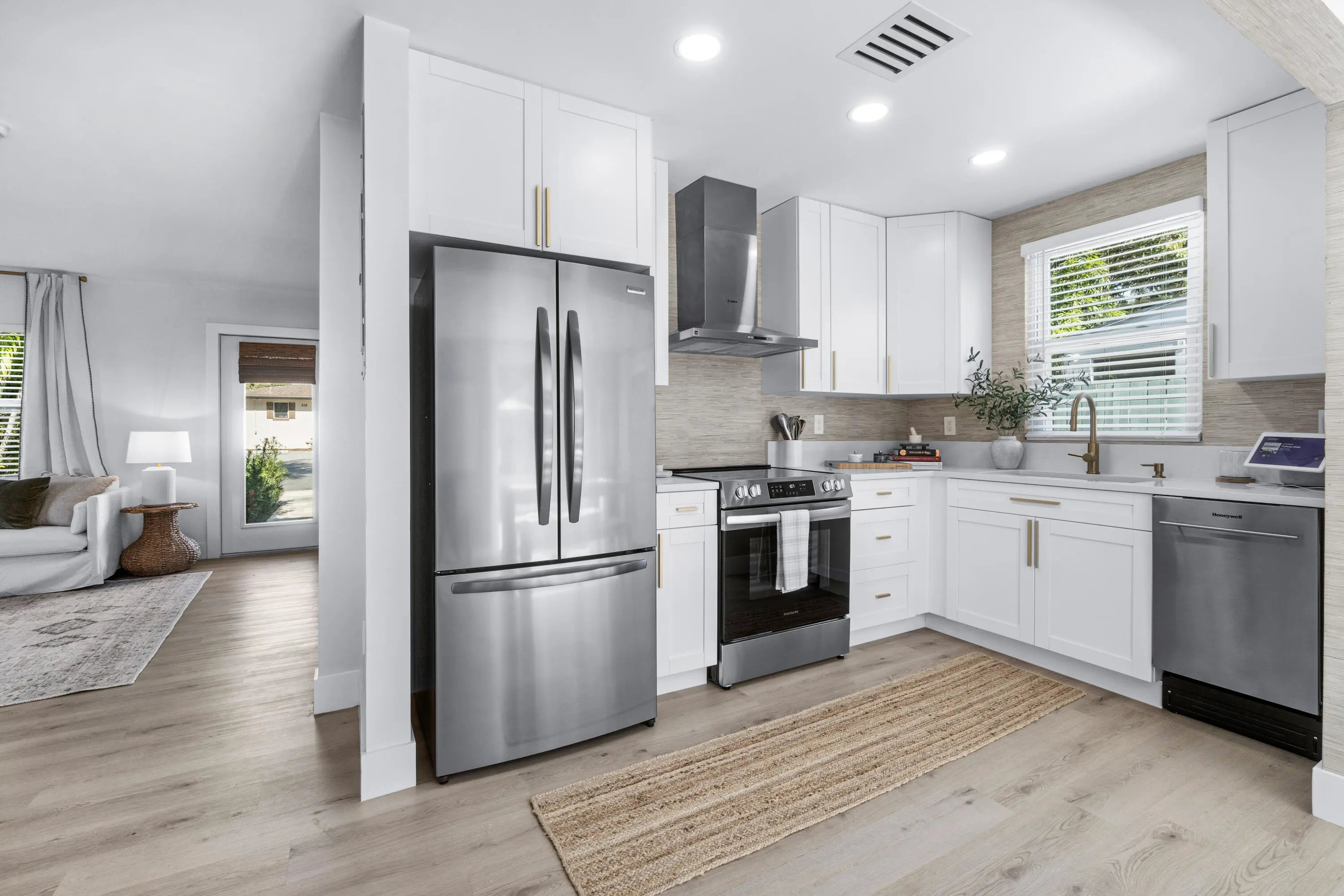Stunning fully remodeled home completed with permits, offering luxurious modern living and exceptional investment potential. Upgrades include new impact windows and doors, all-new drywall, brand-new electrical and plumbing, and premium new flooring throughout. The chef-inspired kitchen features new stainless-steel appliances, complemented by designer luxury bathrooms finished with high-end materials.Outside, experience elevated curb appeal with lush new landscaping, fresh sod with a full sprinkler system, travertine pavers, and a custom-built, all-new wood privacy fence.This property also offers a permitted secondary apartment with its own full kitchen and bathroom, ideal for extended family or generating additional rental income.Currently operating as an income-producing Airbnb,