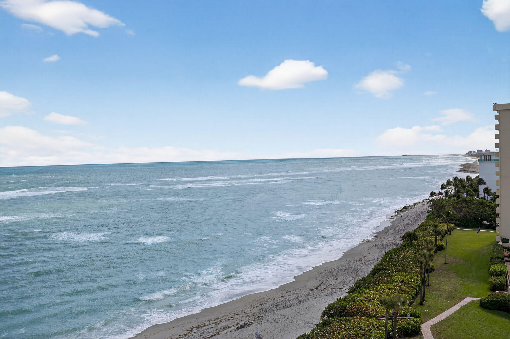 A rare vantage point offering sweeping ocean views from the Jupiter Inlet down to the Juno Beach Pier. This 9th-floor sanctuary has been fully renovated and furnished with refined coastal style. Both bedroom suites overlook the sand and surf, while the bright kitchen opens gracefully to the dining and living areas, all framed by blue-water horizons. Plus best POOL and SPA in Ocean TraiAll major building projects, including the $4M+ pool and garage restoration, are complete with minor rebar work being completed now. Ocean Trail delivers true resort amenities: two heated pools, new spa, saunas, grill stations, outdoor showers, fitness center, tennis, green spaces, ponds, trails, and private beach paths--plus a community golf-cart shuttle to local dining, shops, marinas.
