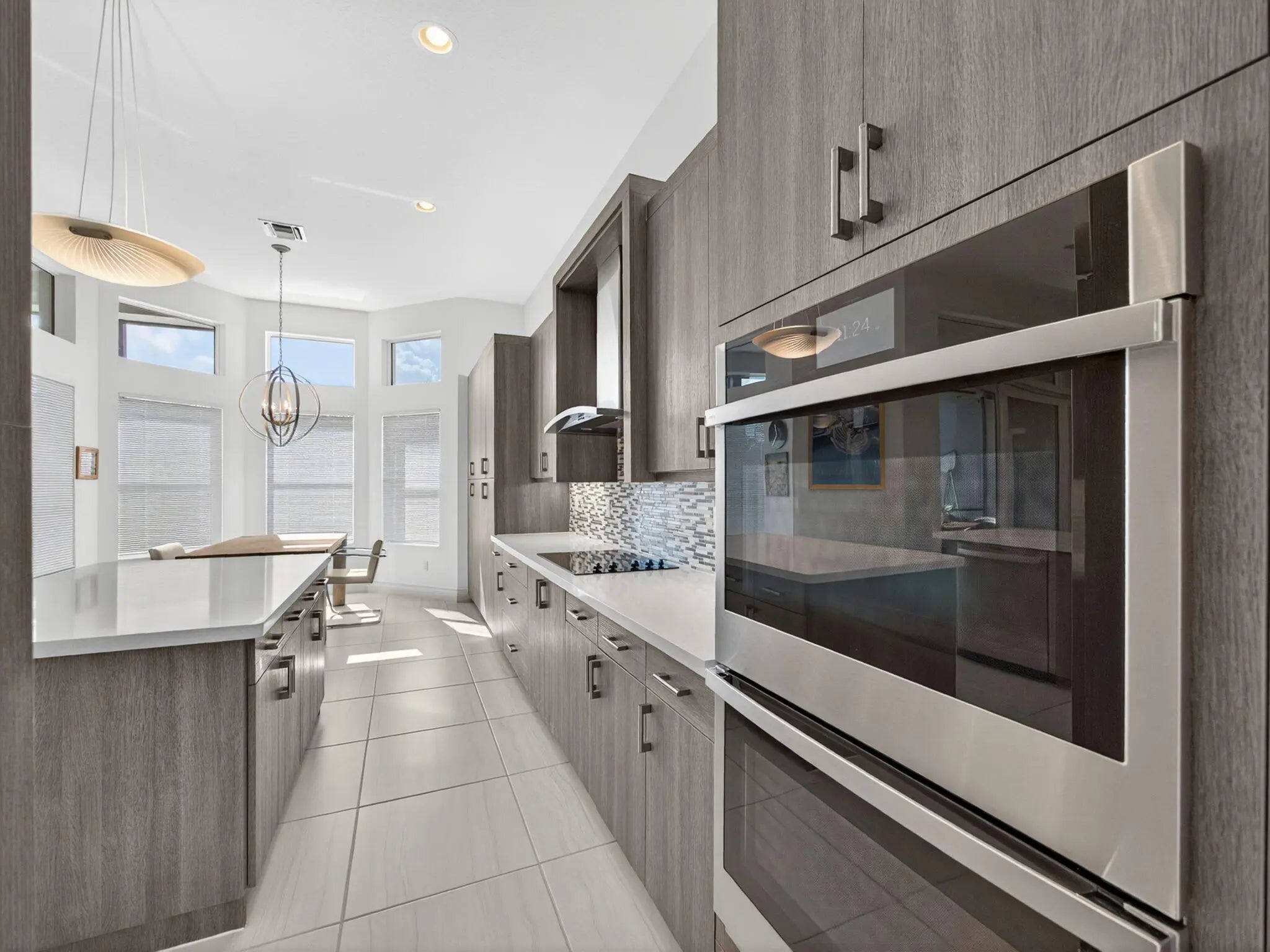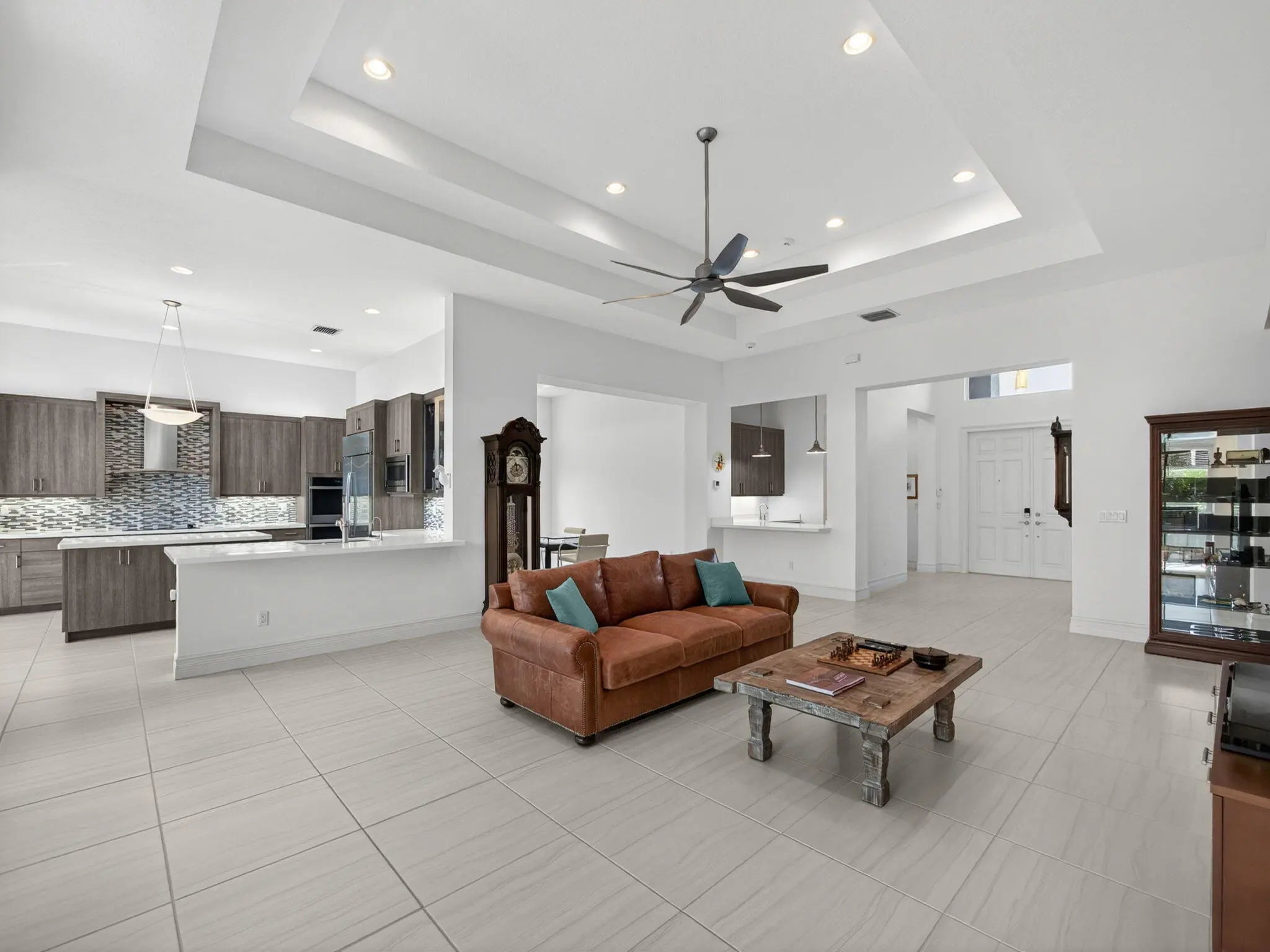 Contemporary Carlyle pool home in the Crown Collection, within GL Homes' premier active adult community of Valencia Bay. Meticulously maintained and barely lived in, this bright, modern residence blends luxury & functionality with upgrades throughout, and every detail reflects superior craftsmanship. Designed to weather any storm, the property includes a Generac full-house generator with surge protection, hurricane-impact glass, and whole-house gutters. Situated on an oversized .34-acre corner lot with no rear neighbors, the outdoor living space offers exceptional privacy & relaxation, featuring a private pool, screened patio enclosure, outdoor shower, cabana bath, and fenced yard with lush grass--ideal for pets, entertaining, or tranquil evenings at home (See supplement for full remarks)