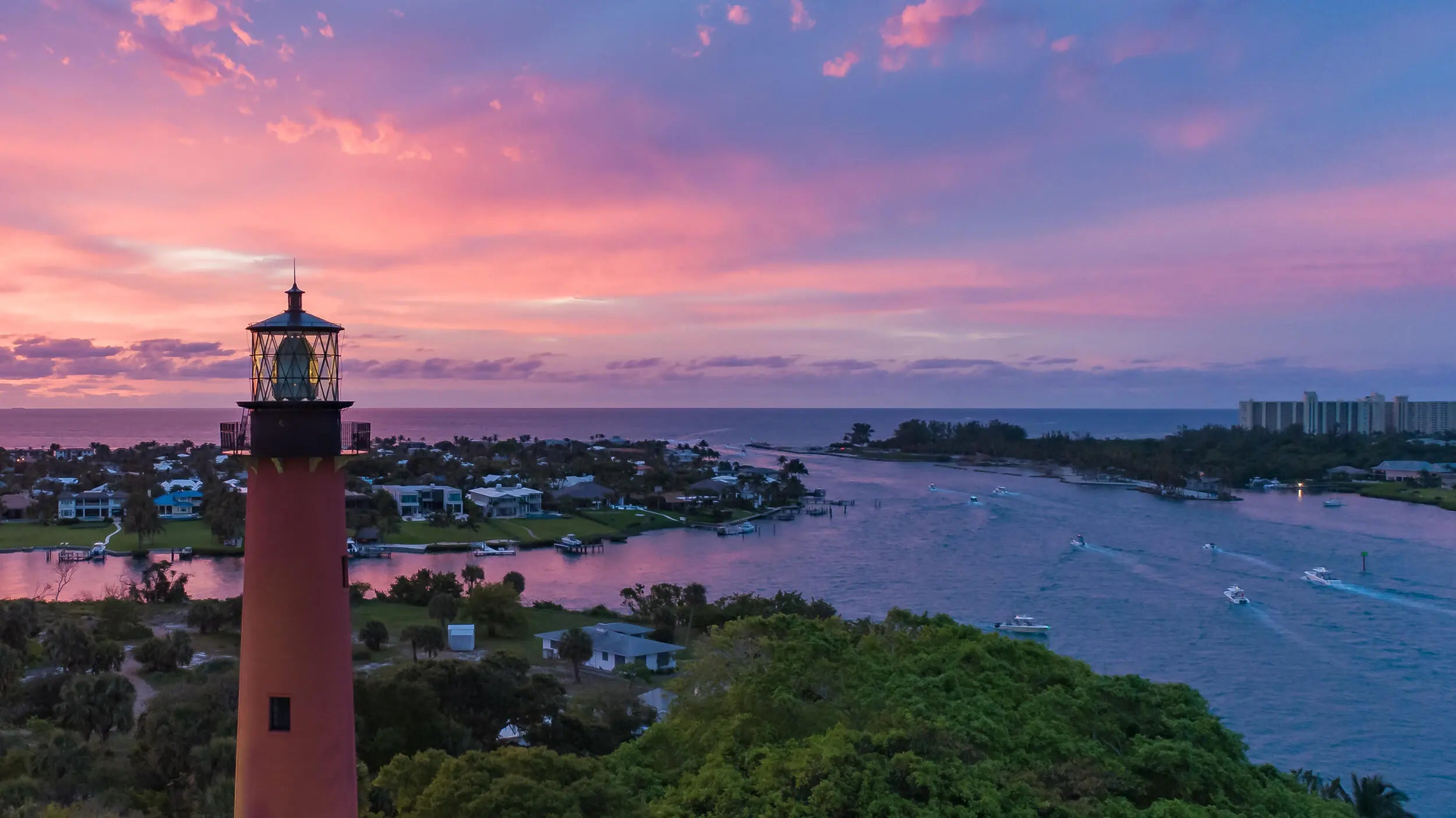 Jupiter is 12 miles north of Palm Beach Shores via I-95 and Rte. 706. Jupiter is one of the few little towns in the region not fronted by an island. Beaches here are part of the mainland, and Route A1A runs for almost 4 miles along the beachfront dunes and beautiful estates.