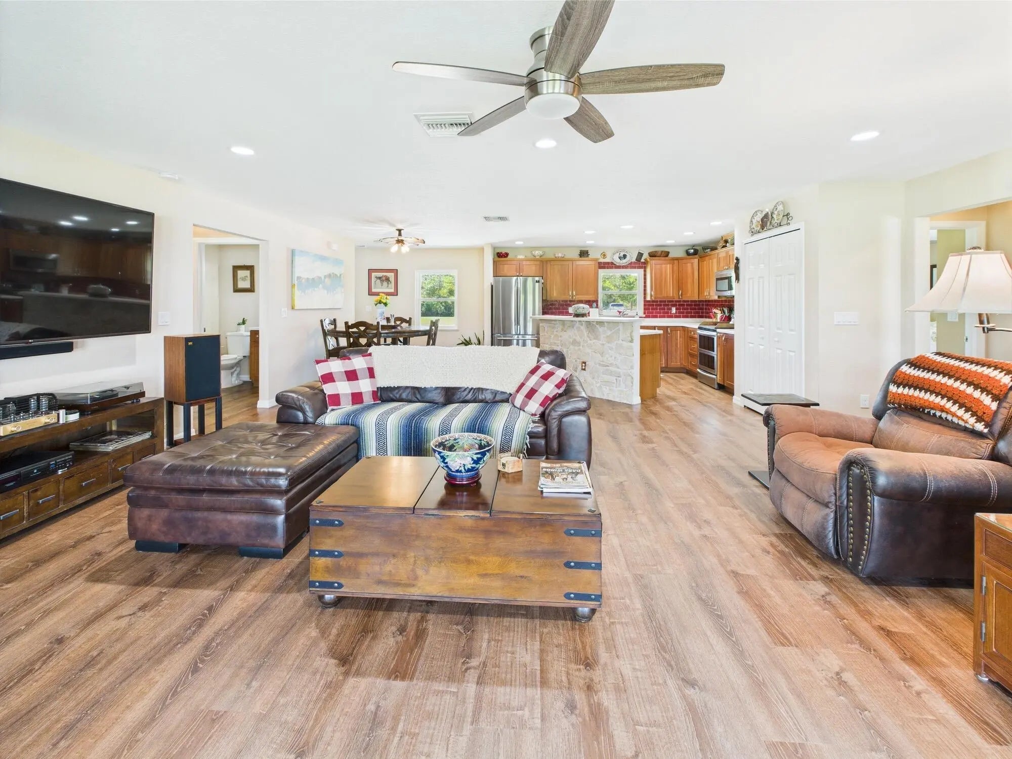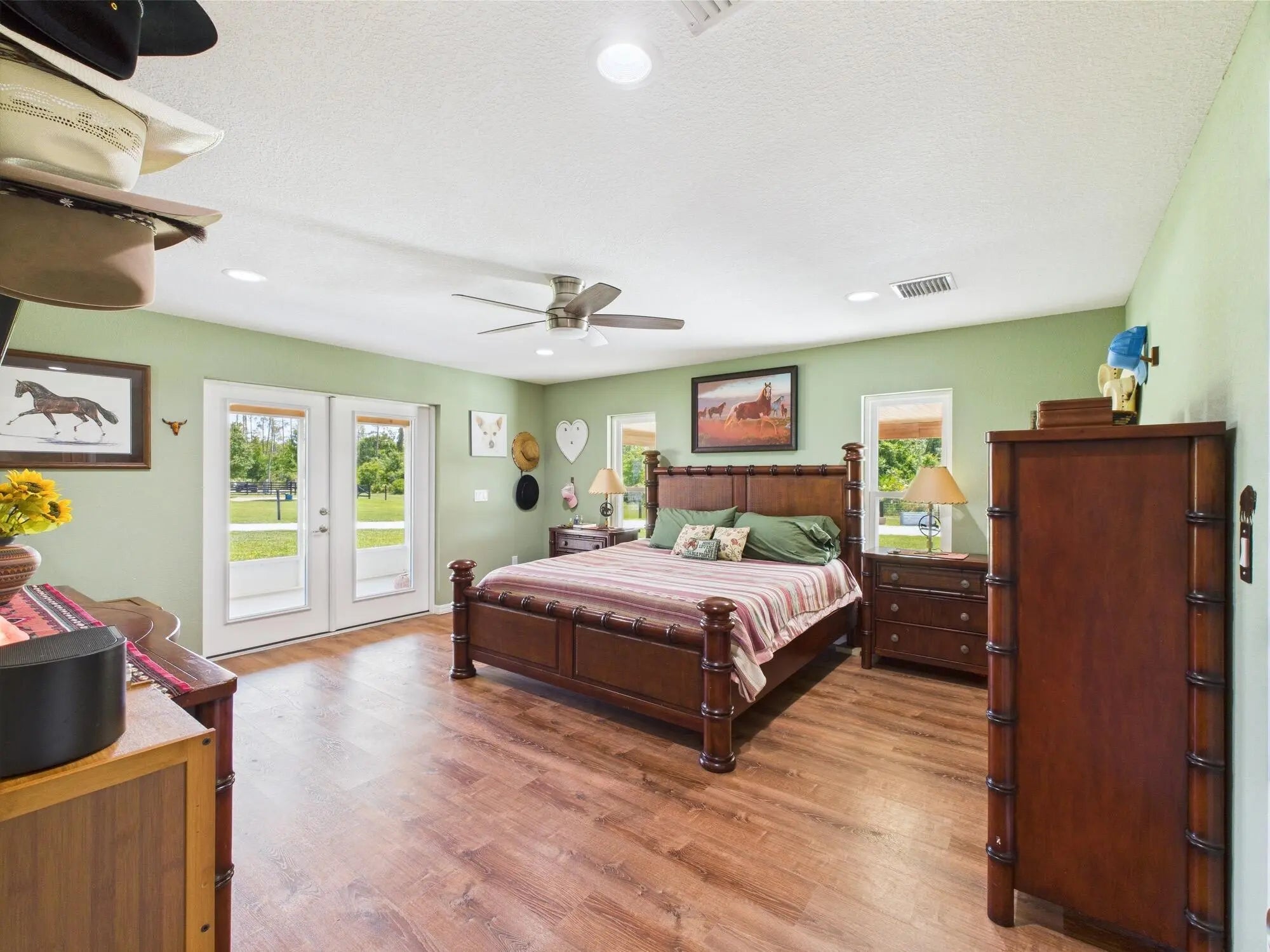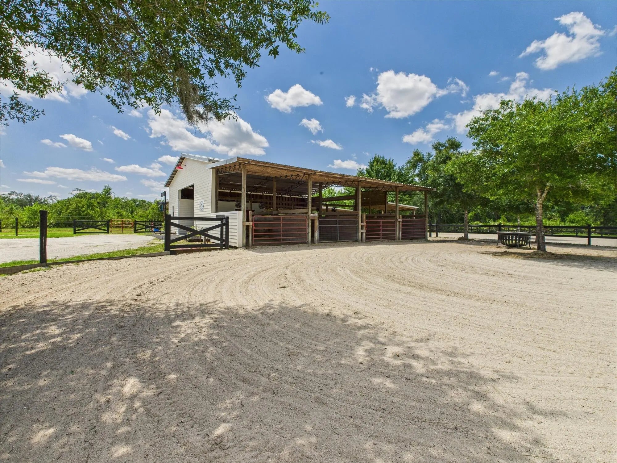 Horse Enthusiasts Dream! Custom Home on 5+ acres in a gated community that is truly a Hidden Gem. This 3/3 is perfectly laid out with Modern Design and Rustic Charm. Enjoy the peaceful view on the screened in porch with tongue and groove ceilings. The Serenity offered on this 5.16 acre property will make you want to stay. This Pristine property has large 6 stall horse barn, tack room, 2 wash/grooming stations, 4 engineered paddocks and arena, and access to hundreds of miles of riding trails with the push of the button. Indian Hammock has over 3,000 acres of land with a private landing strip/hangar, lodge w restaurant and pool, hunting, skeet shooting, rifle range, tennis/pickleball courts, over 100 miles of trails, and so much more!