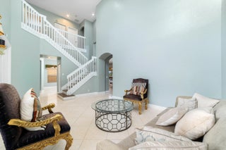 Spacious two-story lakefront dream home featuring five bedrooms and three full bathrooms, offering a perfect blend of comfort and functionality. Enjoy the convenience of one-level living with a full bath and bedroom on the main floor. The home boasts a formal dining area, a family room, and a soaring two-story living room, ideal for both everyday living and entertaining. The well-appointed kitchen includes stainless steel appliances, a pantry, an island with granite countertops, and elegant white cabinetry. The primary suite provides a serene retreat with dual sinks, a separate soaking tub, and a walk-in shower. Tile and vinyl flooring extend throughout the home, complementing the bright and open layout.