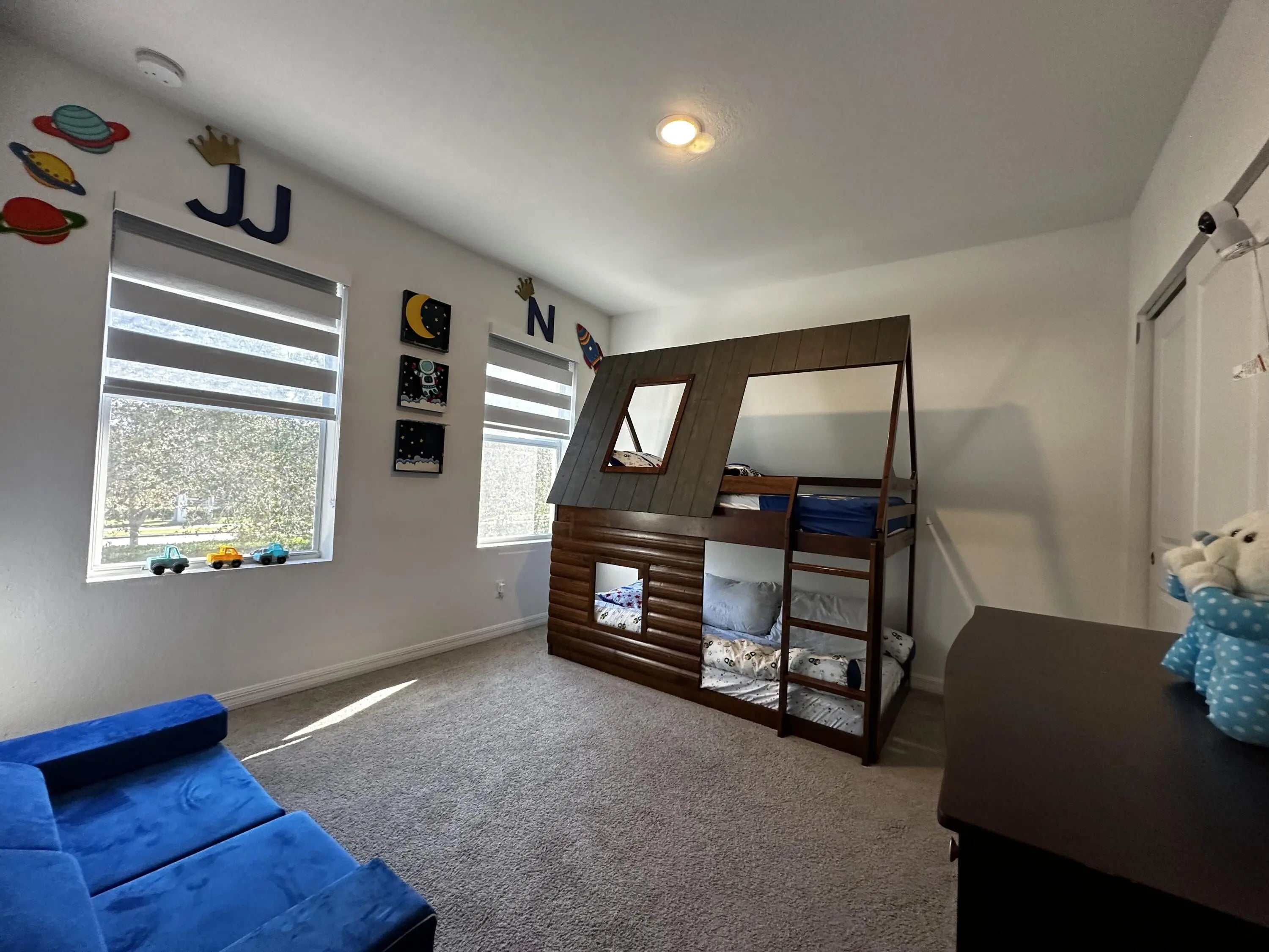 Two-year-old 2-story home. Carpet and ceramic tile flooring. Washer and dryer. Impact glass windows. Dual sinks in the master bathroom. Kitchen island. Still like new.