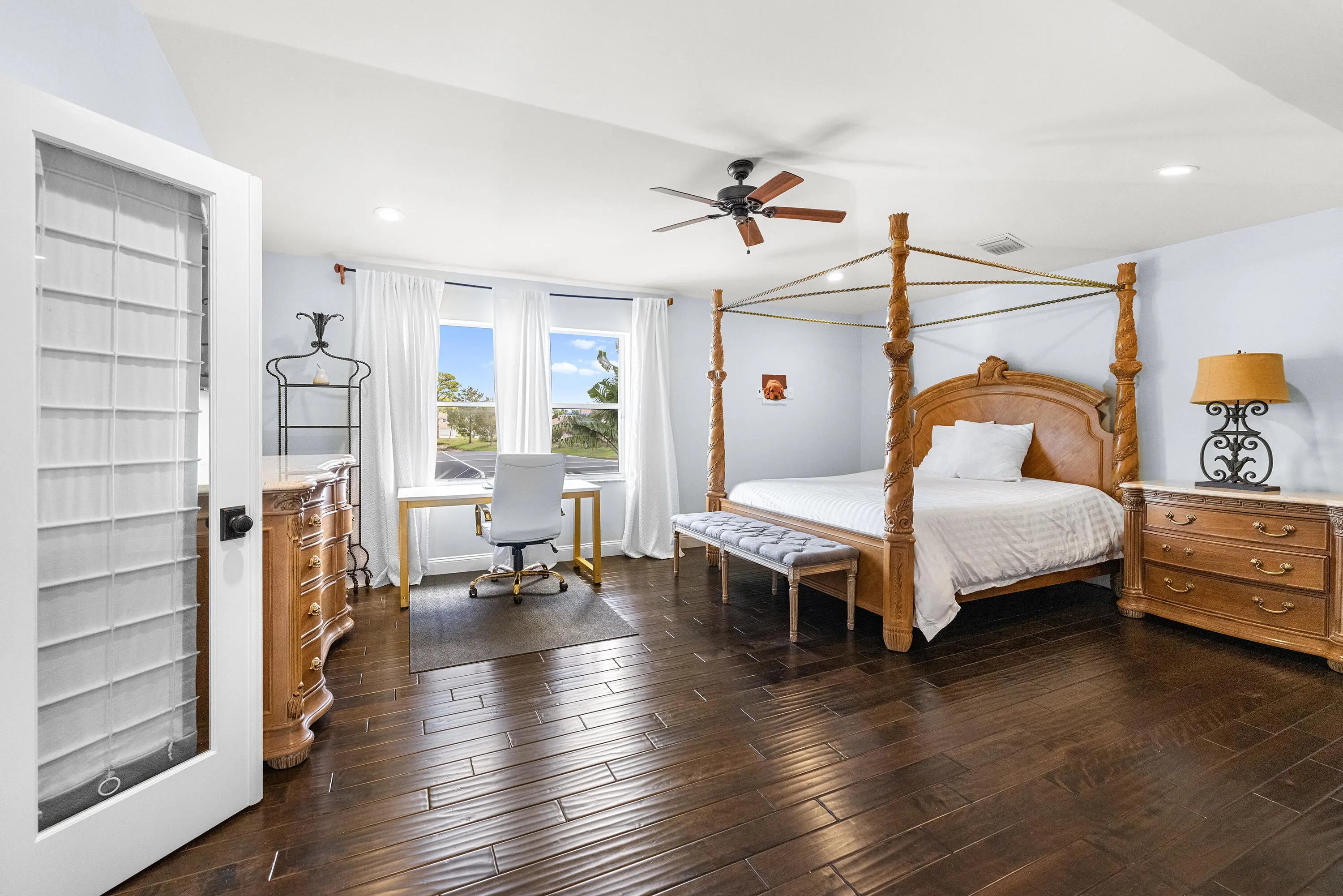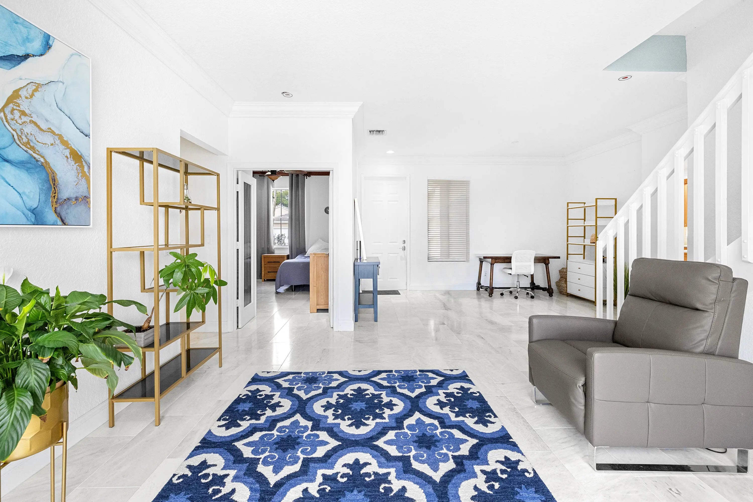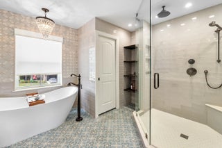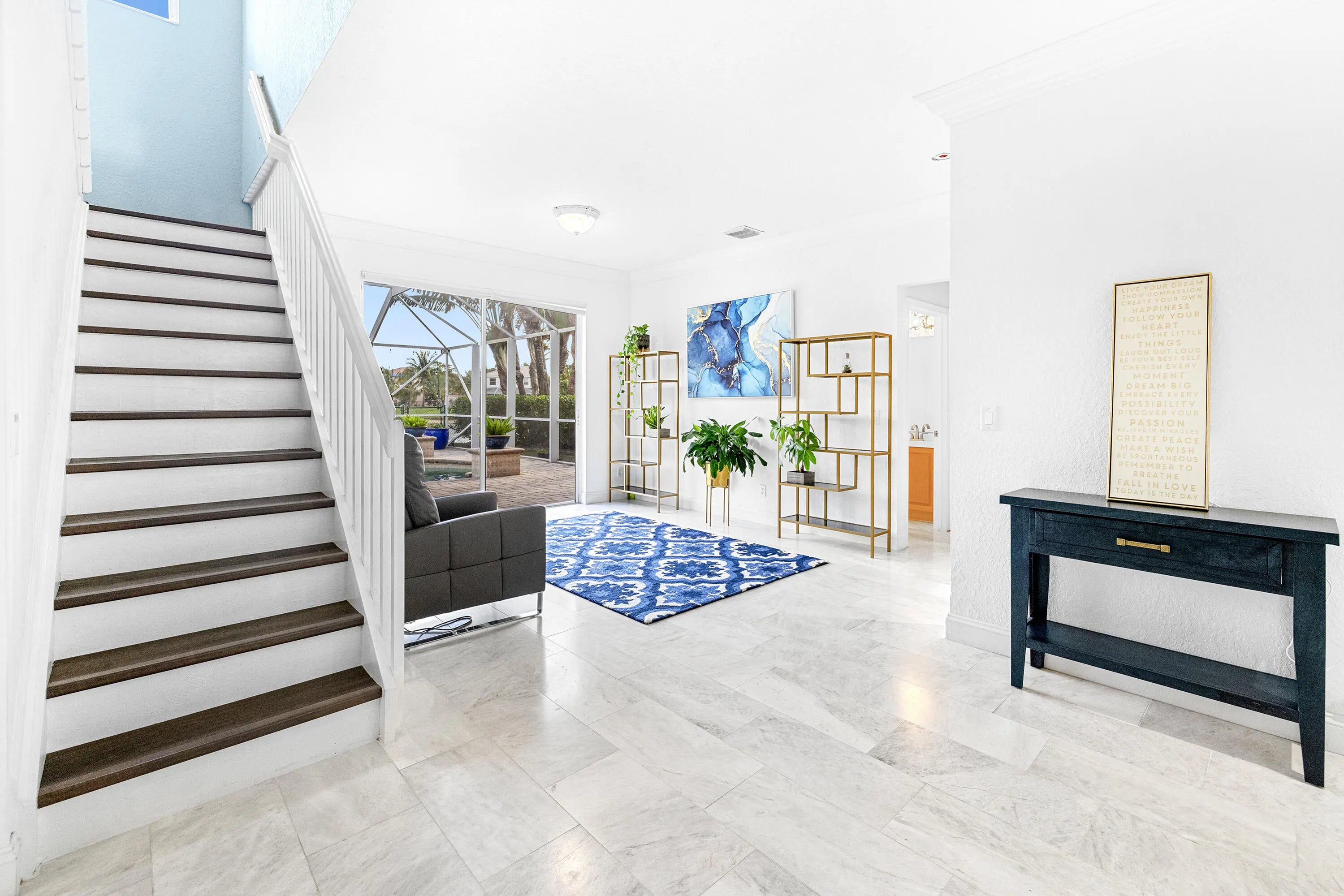 This stunning, updated 4 bedroom, 3 bathroom, POOL home sits on a generous LAKEFRONT lot, and is filled with phenomenal CUSTOM upgrades! It is a perfect home to host and entertain your family and friends. There is luxury imported marble on the first floor and hand-scraped wood flooring on the upper level. The kitchen is equipped with quartz countertops, newer stainless steel appliances (2024-2025), and plenty of light-wood cabinets crowned with elegant moldings. The luxurious, spacious and bright primary suite offers an oversized walk-in closet with convenient built-ins, and a renovated en-suite bathroom is complete with dual sinks, a beautifully crafted vanity, a soaking stand-alone tub and a separate shower. One of the bedrooms can serve as an office / library, and it features amazing
