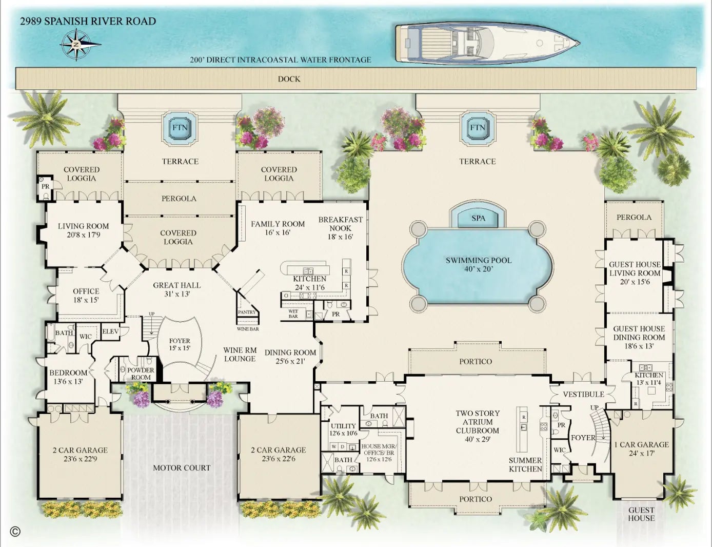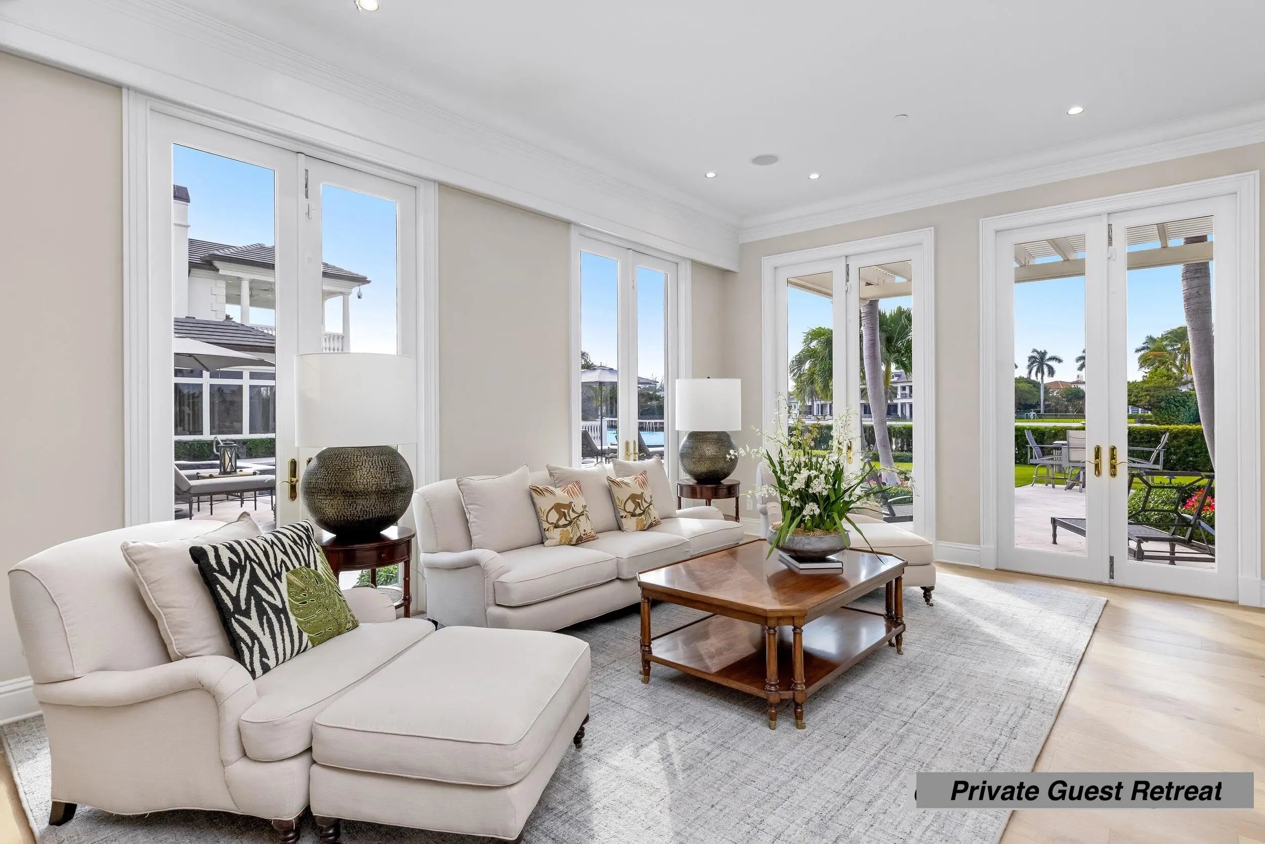Rarely does an estate of this scale and distinction become available. Positioned on one of the largest Intracoastal lots in Boca Raton's prestigious Estate Section, this fully reimagined waterfront home offers 200 feet of frontage and showcases uncompromising quality, with exceptional materials and finishes selected throughout. Behind private gates, this expansive compound offers more than 12,000 square feet of refined interiors and over 17,000 total square feet across eight bedrooms, thoughtfully arranged between the main residence and a separate guest home. The layout is exceptional: the main residence features six beautifully appointed bedrooms, while the guest home includes two additional bedrooms, a full kitchen, a spacious living room, its own private entrance, and even an additiona