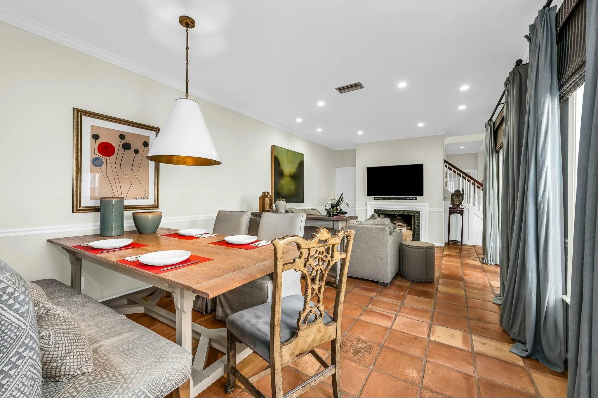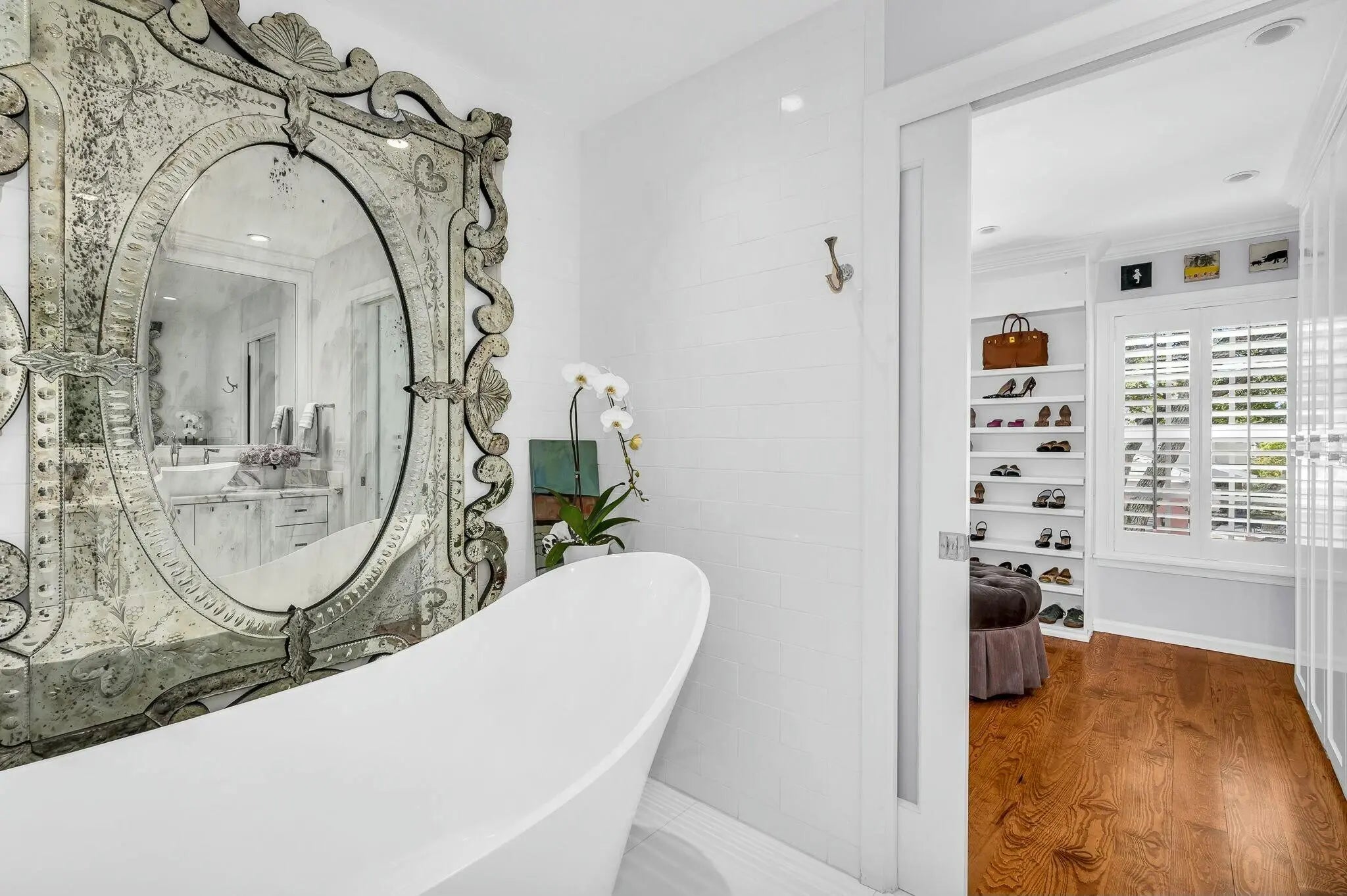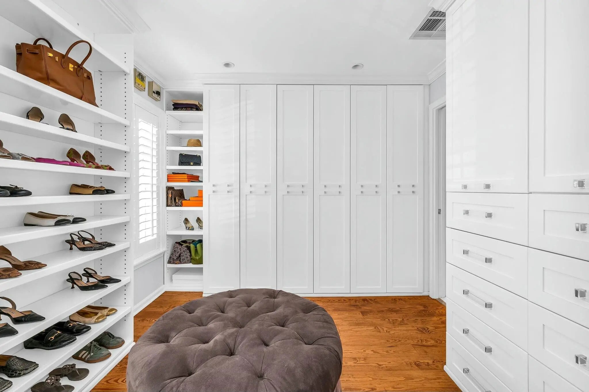 Built-in Shelves, Custom Mirror, Fireplace(s), French Door, Kitchen Island, Split Bedroom, Volume Ceiling, Walk-in Closet