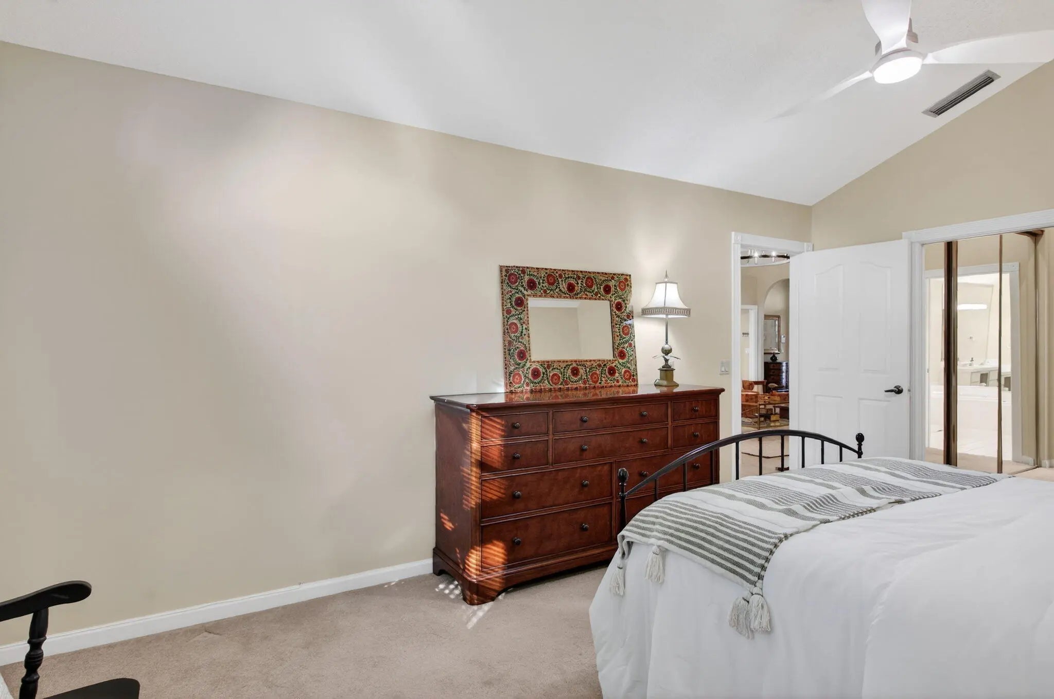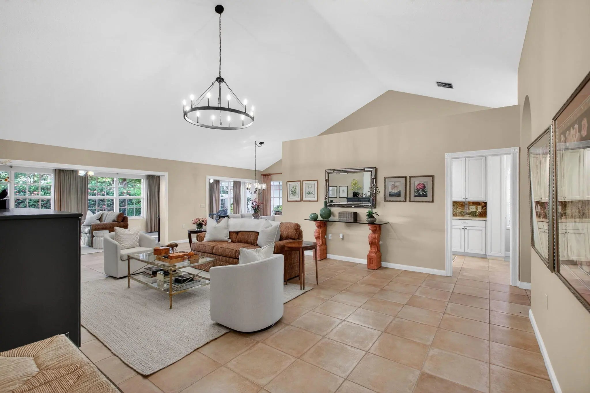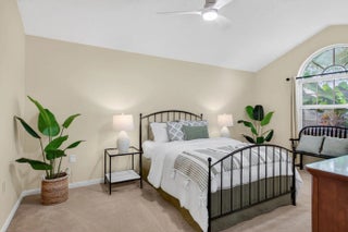 Lovely well maintained home in the heart of West Palm Beach! Enjoy South Florida living from the 24-hour manned golf gated community of Bear Island! This CBS residence features 3 bedrooms, 2 baths, side 2 car garage with large driveway, impact windows, newer A/C and tons of living space. Freshly painted with beautiful neutral tile flooring in main living areas and plush carpet in bedrooms, this home boasts tons of natural light, spacious kitchen with tons of cabinetry, Onyx counter tops and custom pantry and counter top in breakfast area - perfect for small workspace. Generous primary suite leads to master bath with separate tub and shower. Guests will enjoy 2 separate bedrooms and renovated guest bath. HUGE and private backyard is surrounded by lush landscaping -