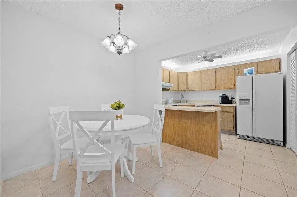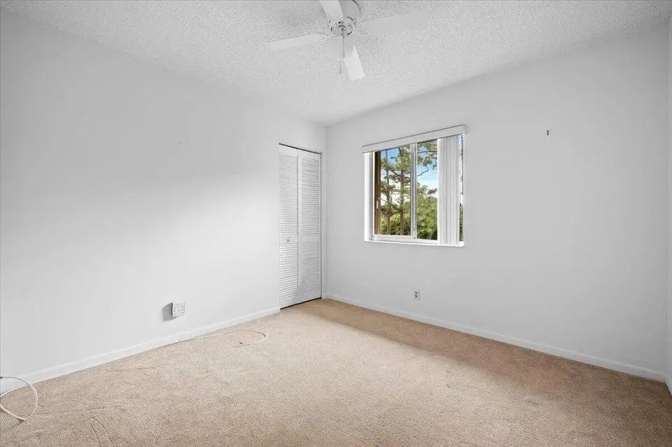 :Welcome to your new home! Discover the charm of this inviting 2-bedroom, 1-bath haven that's ready for you to move in. Whether you're dreaming of spending winters in the warmth of Palm Beach County or seeking the perfect spot to kick off your sandals, you've found it. Nestled at the end of a quiet cul de sac, this unit offers a uniquely private setting. Step onto the awesome screened-in patio and soak in the tranquility as it overlooks a picturesque park-like setting. Inside, you'll find beautiful tile flooring complemented by plush carpeting in the bedrooms. The convenience of a separate laundry room with a full-size washer and dryer adds to the practical allure. Safety is a priority with accordion shutters adorning all windows and doors, ensuring excellent hurricane protection
