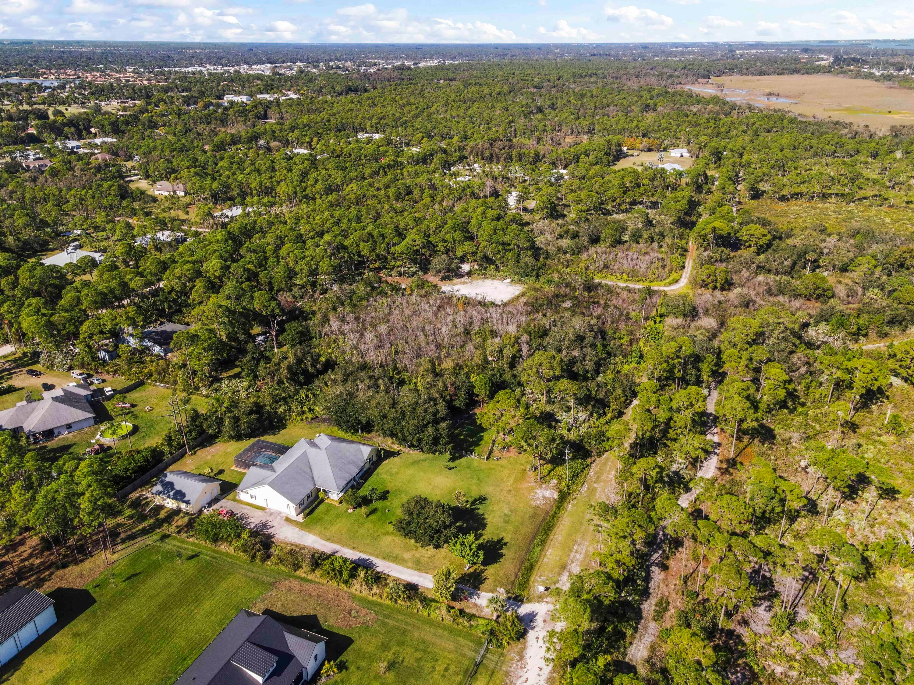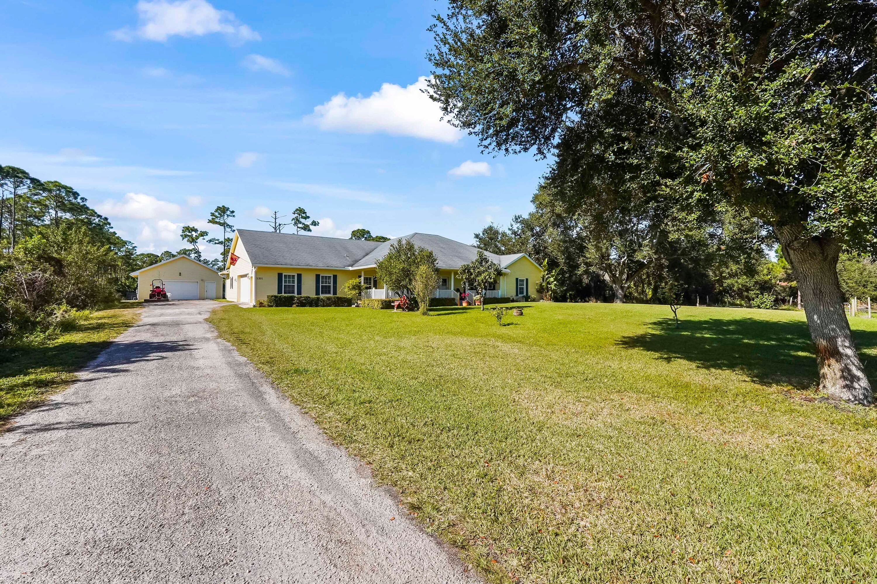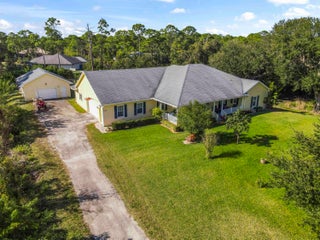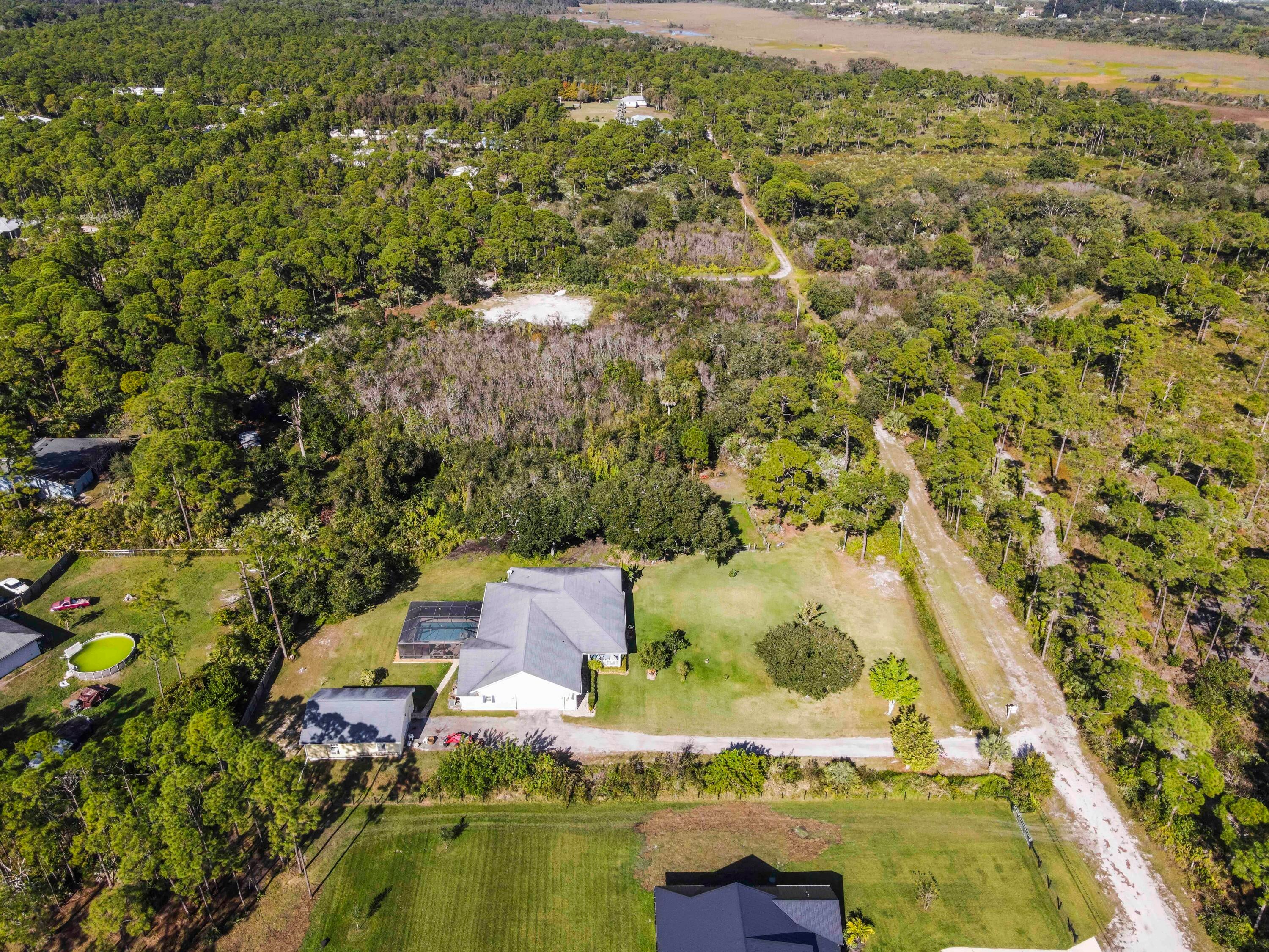 Experience the ultimate freedom of acreage living without sacrificing coastal convenience in this massive 5-bedroom plus den, 3-bath estate. Situated on a sprawling 2.3+ acre compound--comprising a raised 1.15-acre homesite and an included adjacent 1.15-acre parcel--this property offers unparalleled privacy surrounded by 300+ acres of nature preserve. It is a true dream for those seeking the ''farm life'' lifestyle, with ample space to park RVs, boats, and four-wheelers, all while being just 15 minutes from the beach and 7 miles from Downtown Fort Pierce. This community setting provides a serene backdrop of mature trees and Old Florida charmDesigned for effortless entertaining and relaxation, the outdoor spaces are a private resort unto themselves. Start your morning with coffee on the charming front porch. As the day winds down, escape to the backyard oasis featuring a 27' x 13.5' saltwater pool and a jacuzzi that seats six, both installed in 2017 for modern enjoyment. Whether hosting sunset gatherings on the screened lanai or enjoying a quiet dip under the stars, this home maximizes the beautiful South Florida weather year-round. The residence features poured concrete exterior walls, insulated Styrofoam walls, impact windows and doors throughout and a whole home generator. The interior has been thoughtfully updated to include remodeled master bath (2024), a new water heater (2022), and a modern washer and dryer (2023). The intelligent split floor plan includes a sound proof room ideal for a home theater or private office and a spacious kitchen that flows seamlessly into the social areas. A standout feature for hobbyists or business owners is the detached 26' x 36' garage/workshop with its own A/C, complementing the attached 2-car garage. Located just 15 miles from Vero Beach outlets, this fortress-like home offers peace of mind and luxury living in equal measure.