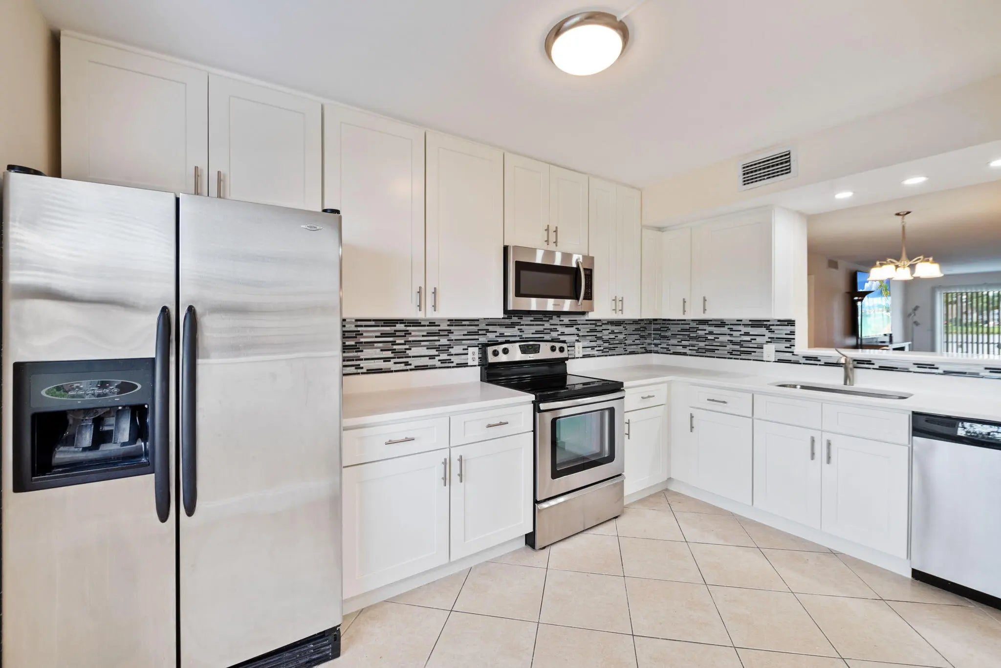 Rarely available first-floor corner unit in the highly sought-after Century Village! This spacious 2-bedroom, 2-bath residence features the largest floor plan in the community and offers the perfect blend of comfort, style, and convenience. The home has been thoughtfully updated with a brand-new, beautifully designed kitchen showcasing modern cabinetry, quality finishes, and sleek functionality--ideal for both everyday living and entertaining.Both bathrooms have been transformed into spa-inspired retreats, complemented by impact windows throughout, high-end modern finishes, and fresh neutral paint that creates a bright, move-in-ready feel. The corner location allows for added privacy and natural light, while the first-floor setting offers easy access with no stairs.