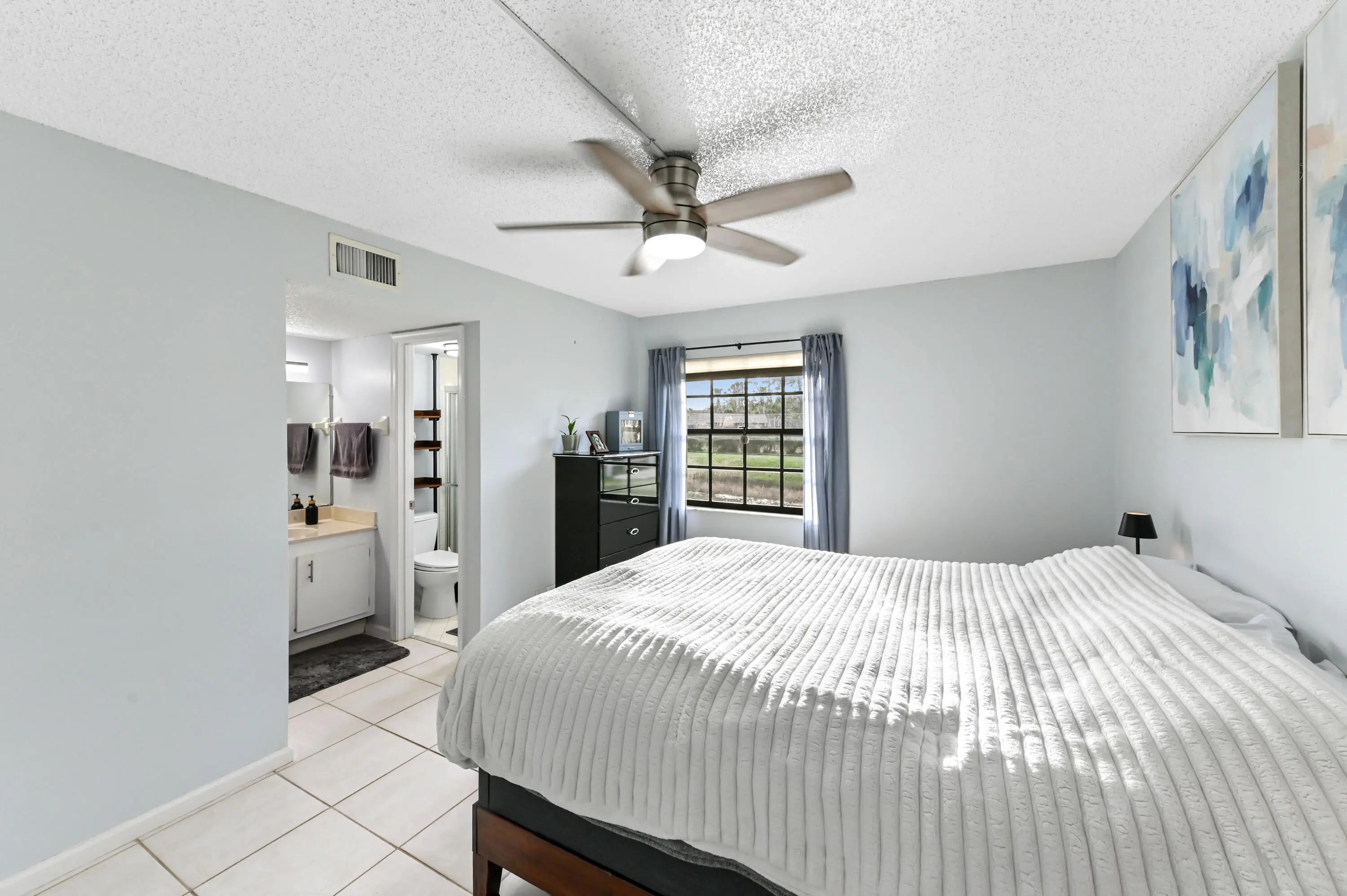 ALL AGES condo - Great first home, fabulous investment (can be rented right away) Discover the perfect blend of comfort and convenience in this immaculate, move-in-ready first-floor condo with no stairs for easy access. This bright and airy stack-bedroom floor plan features ceramic tile flooring throughout, offering a cool, low-maintenance living space year-round. The kitchen serves as the heart of the home, highlighted by a distinctive tray ceiling that adds architectural interest and charm. Enjoy added peace of mind with accordion shutters on all windows and doors, providing simple and efficient storm protection located within a lovely community which offers a pool, walking paths and conveniently located just minutes from I-95, the turnpike, Wellington and West Palm Beach