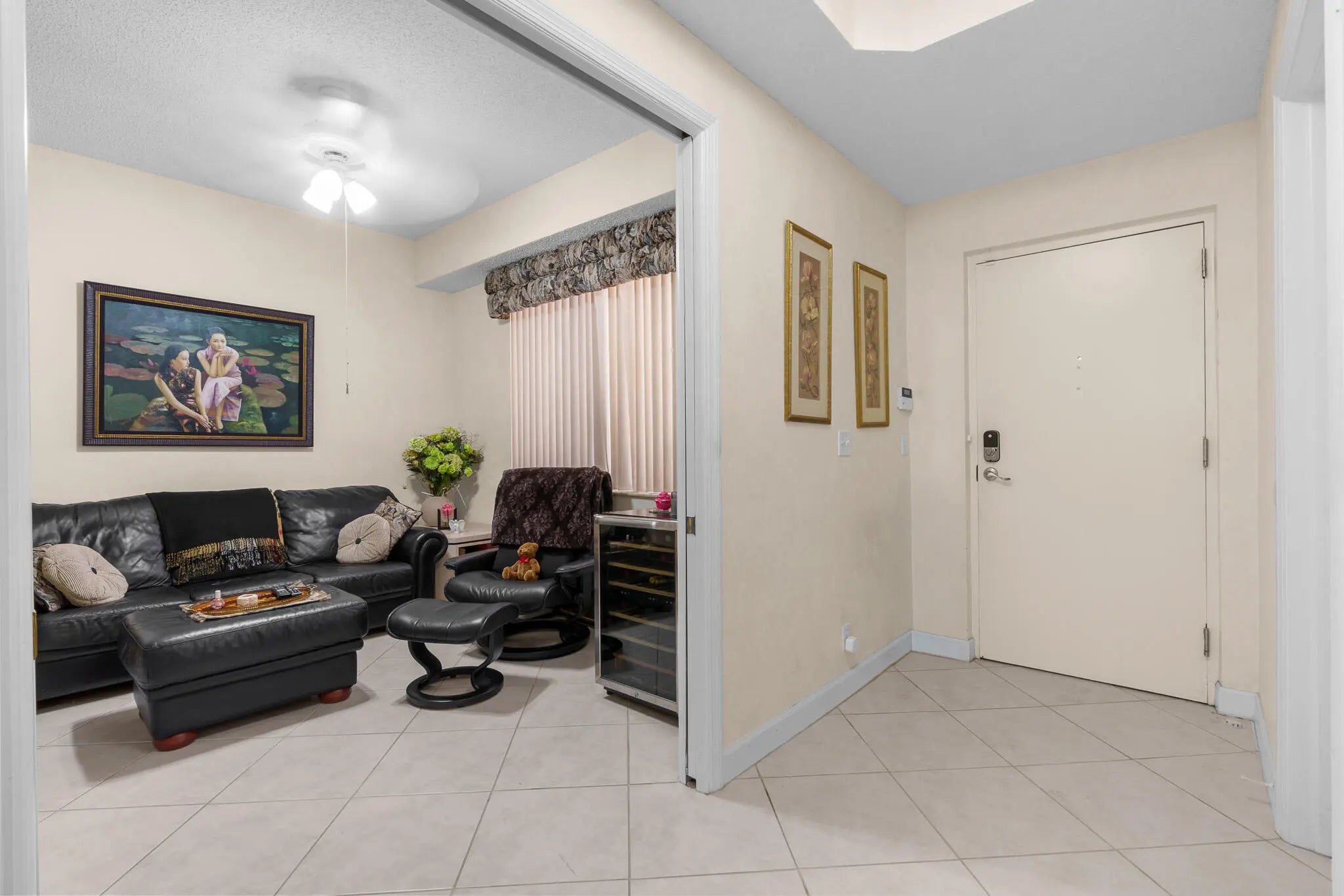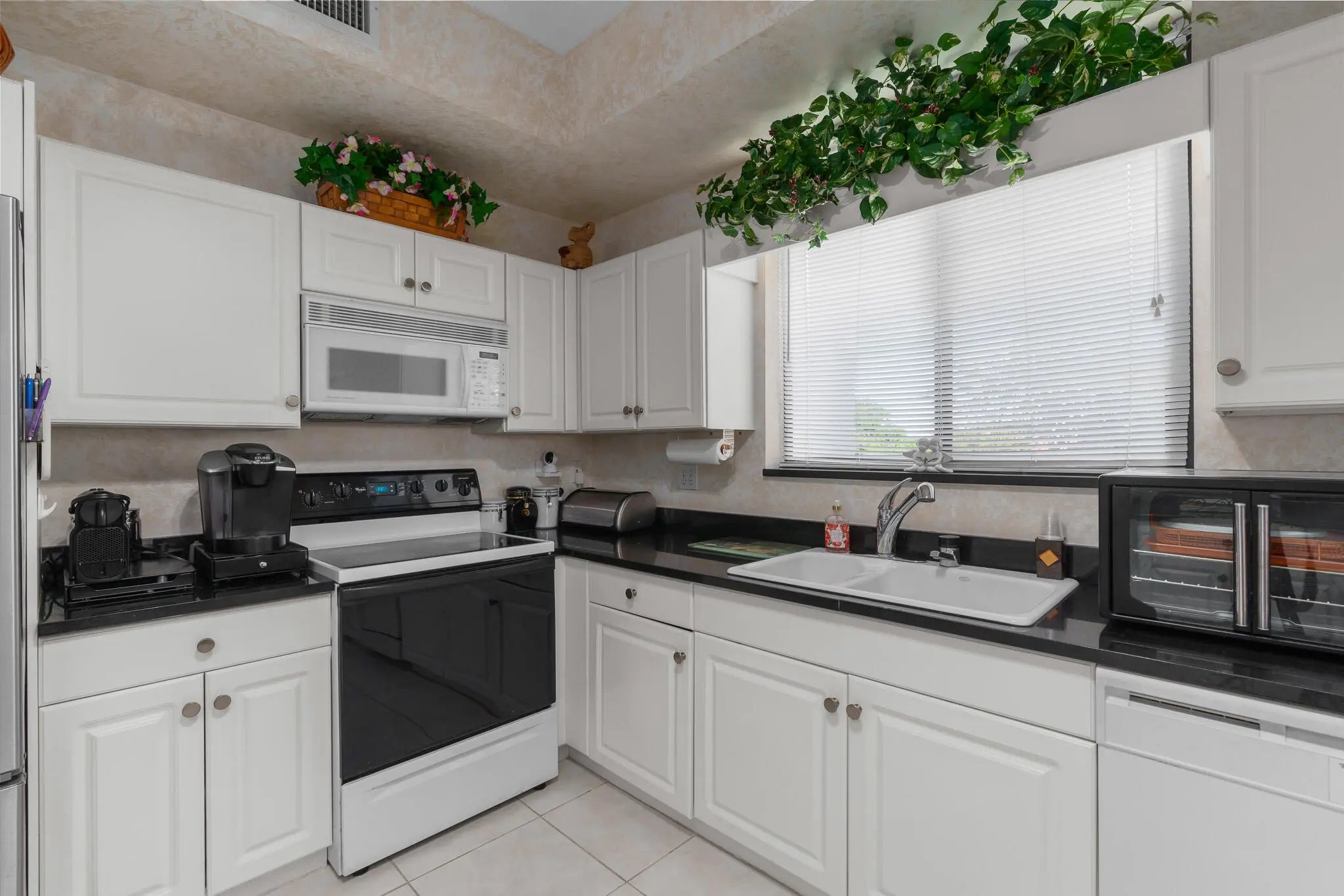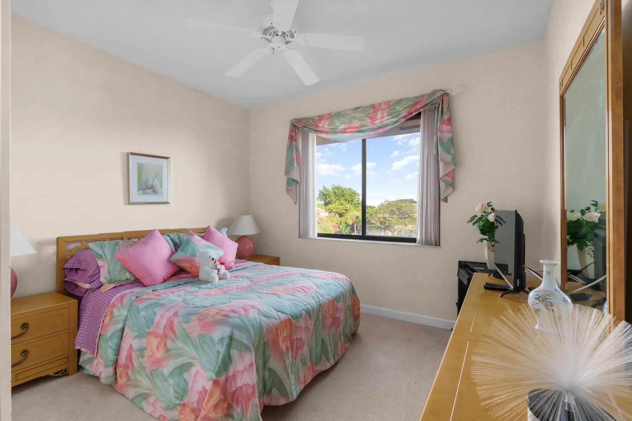 Beautiful condo on top floor with 3 bedrooms, 2 baths in updated condition. Charming unit with views of garden and lake. The spacious kitchen has granite countertops, stainless steel fridge, extra cabinets and view of the garden. There is plethora of storage and large/walk in closets. Other features include screened in patio with TV and storage cabinets, washer and dryer within the unit, and a new AC that was just installed. All furniture and small appliances are negotiable. Lakes at La Paz feature 2 pool, 2 tennis courts, pickleball, hot tub and a clubhouse. The sought-after Boca Pointe community offers an amazing Country Club optional membership! This unit is priced to sell.