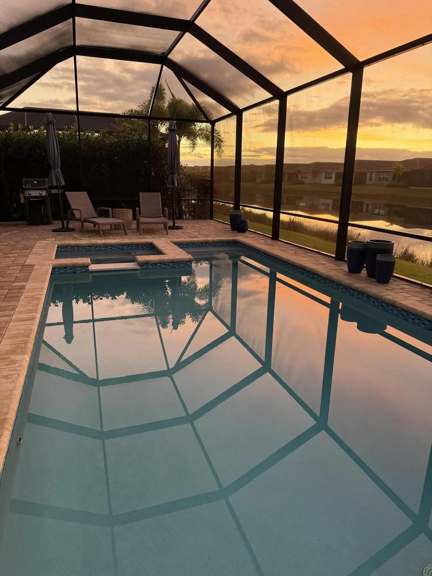 Auto Chlorinator, Gunite, Heated, Inground, Salt Chlorination, Screened, Spa