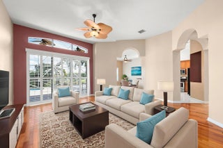 CASCADES St. Lucie West beautifully well-maintained single-family, move-in-ready home offers 2 bedrooms, 2 baths, and a den, thoughtfully designed for both comfort and functionality. Nestled on a quiet cul-de-sac, the home features elegant double entry doors, Brazilian hardwood flooring, neutral ceramic tile, and plantation shutters throughout, creating a warm and refined interior. Additional features include, gas stove, 2023 air conditioning system, pool pump replaced in 2023, an EV charger power source in the garage, and a gas water heater. A two-car garage with a spacious driveway. Home designed for true Florida living, enjoying a screened lanai with a heated saltwater pool overlooking a tranquil lake view.