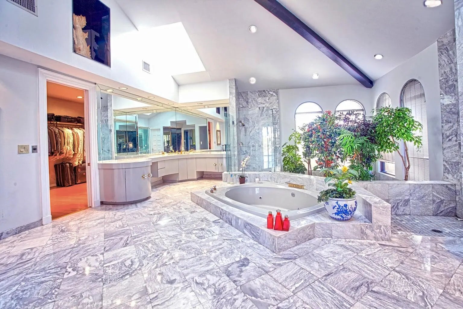 Bar, Built-in Shelves, Ctdrl/Vault Ceilings, Custom Mirror, Decorative Fireplace, Entry Lvl Lvng Area, Foyer, Kitchen Island, Laundry Tub, Sky Light(s), Split Bedroom, Upstairs Living Area, Volume Ceiling, Walk-in Closet, Wet Bar