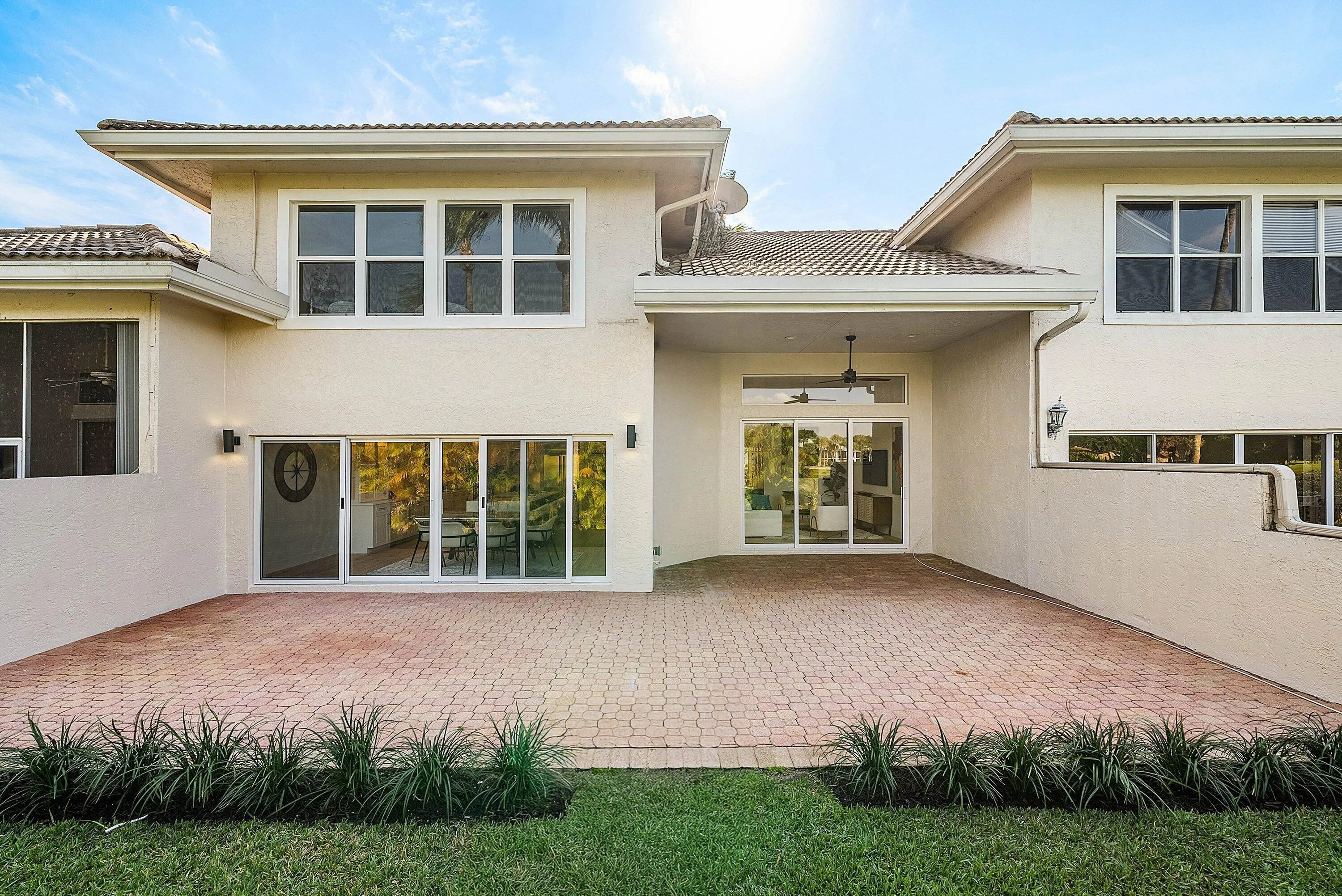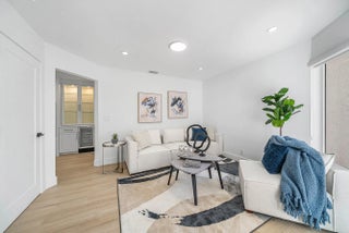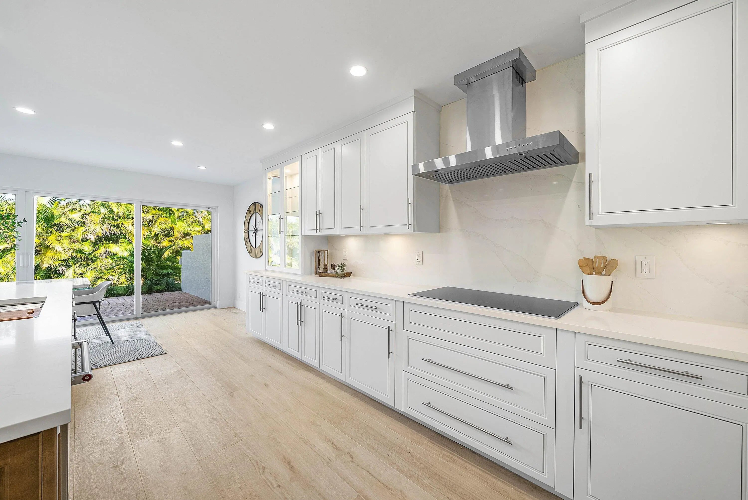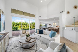 Beautifully renovated two-story townhouse with 3-bedrooms, 3 bathroom offering modern elegance with a serene and private back yard. The spacious layout features a guest bedroom conveniently located on the main level, while the primary suite and an additional guest bedroom are upstairs for added privacy. The home showcases porcelain plank wood flooring on the first level, and a striking glass-railing staircase. The gourmet kitchen is equipped with premium appliances, French door refrigerator, along with a wine cooler, quartz backsplash, and sleek finishes. The primary suite boasts a double-sink vanity and an extra-large shower. Additional highlights include new impact windows, LG washer and dryer, and an epoxy-finished garage floor.