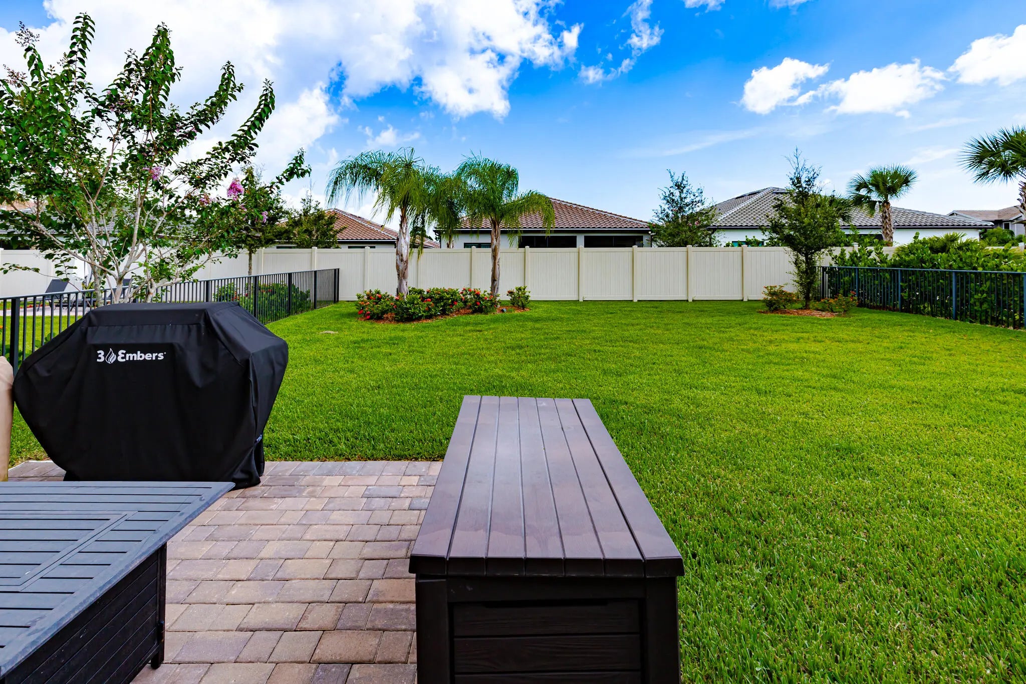 CDD is PAID OFF! Saves you thousands a year of taxes!! Welcome Home to this beautiful 3 bedroom 2 bath home located in Veranda Gardens! Everything has been upgraded from the floor to ceiling. Including 12x24 floor tile throughout, upgraded shower tile, quartz countertops, custom closet features, attic fan, attic stairs to pendant lighting, fans and blinds throughout! IMPACT WINDOWS & Hurricane rated glass front door. Some exterior features have also been upgraded! Extra wide paver driveway, fully fenced backyard along with an extended rear patio deck perfect for entertaining! Veranda Gardens has resort style amenities including a Clubhouse, heated pool, spa, lap pool, cabanas, tennis, pickleball, basketball, bocce ball, fitness center, community room, playground, dog park & sidewalk