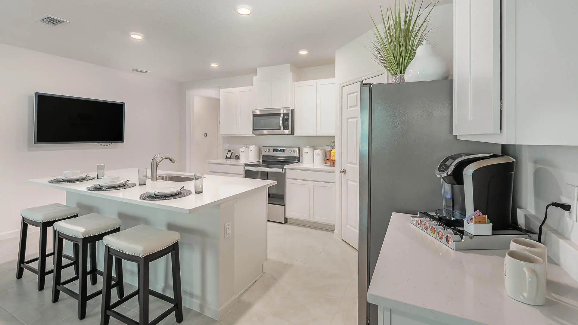 Brand New Cali Home in Okeechobee, Florida, offering style and comfort in a boat and RV-friendly area with no HOA restrictions. This 4-bedroom, 2-bathroom home spans 1,828 square feet, featuring quartz countertops and luxury vinyl plank floors throughout main living and wet areas. The open-concept layout connects the living room, dining area, and kitchen, ideal for entertaining. The kitchen boasts an oversized undermount sink, stainless-steel appliances, and a large island. The primary suite includes an ensuite bathroom with dual sinks, a shower, and a walk-in closet. Smart home technology is included.