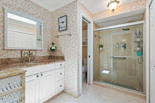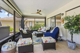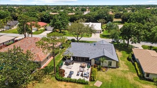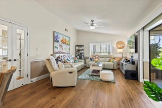 Discover the perfect blend of luxury and comfort in this stunning 3/2/2 golf front home in highly coveted Country Club Estates. Boasting panoramic views of the 13th hole, this meticulously maintained home features an updated kitchen with granite countertops, stainless steel appliances, reverse osmosis sytem, charming breakfast nook. Step across elegant LVT wood flooring into spacious living and family rooms bathed in natural light, accented by premium plantation shutters, crown molding. The expansive, screened-in lanai offers a serene retreat for enjoying Florida's sunset with extended paver patio and hot tub. Office/hobby room in garage. 2025 concrete tile roof, water heater, 2021 A/C, complete accordion shutters, tv camera security system for peace of mind.