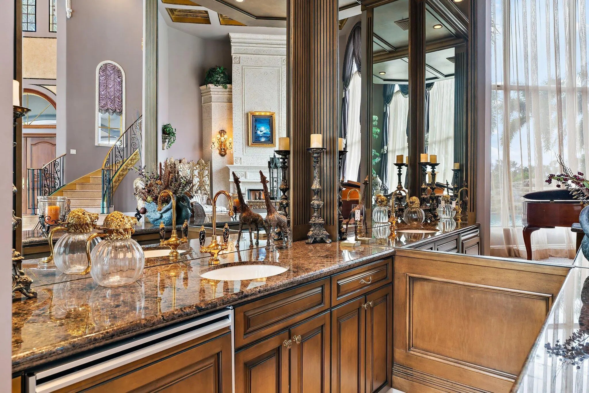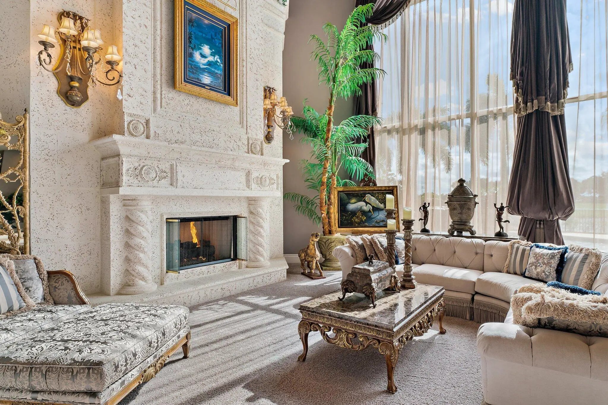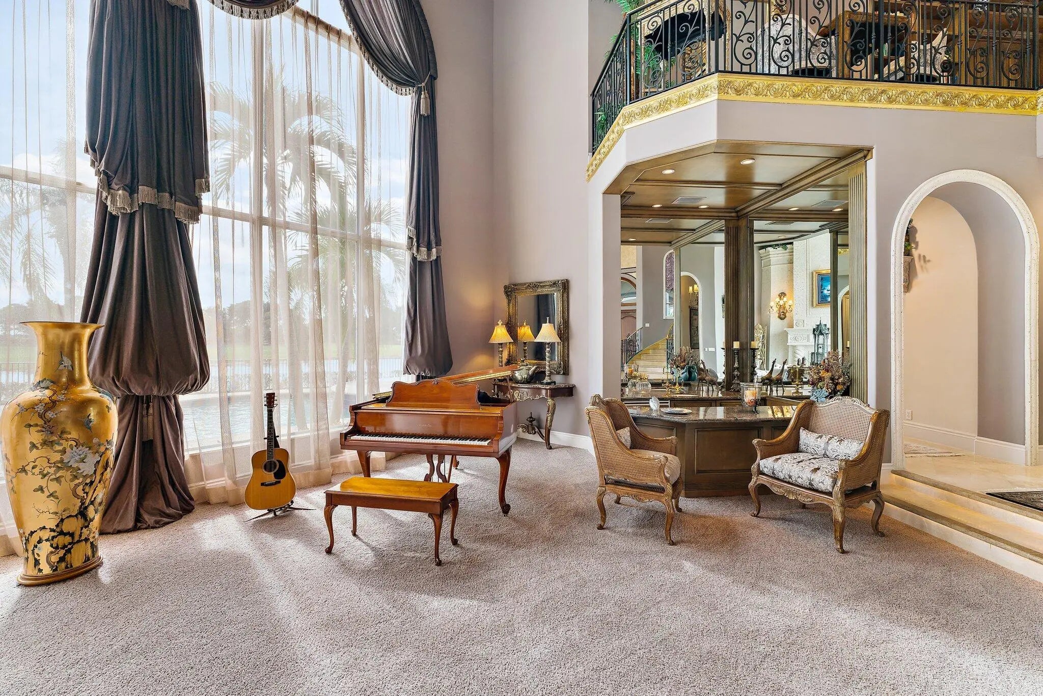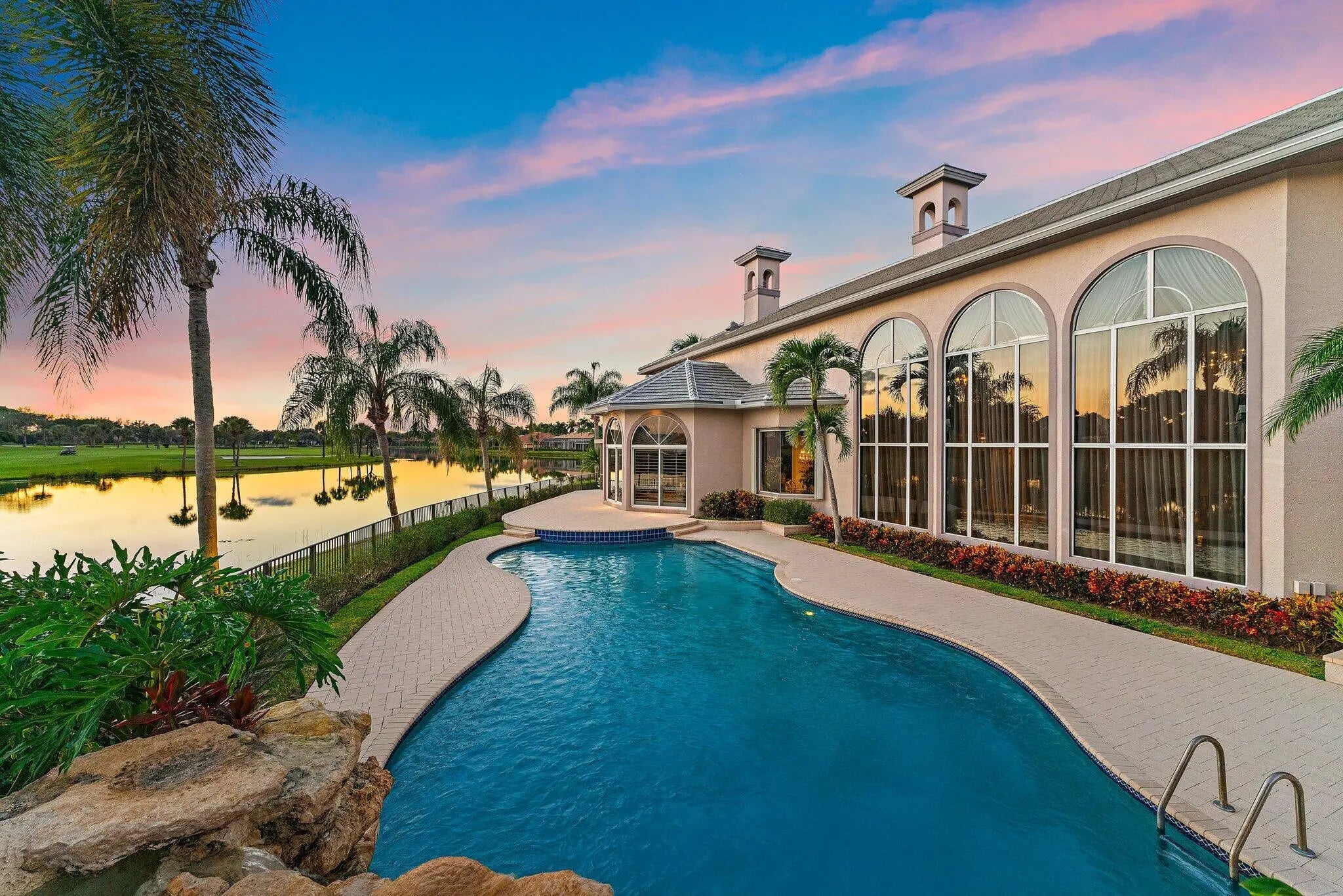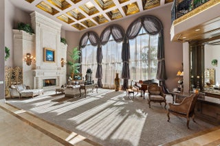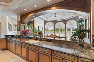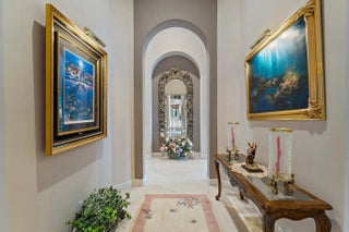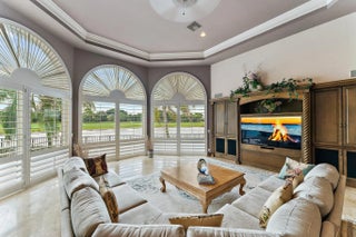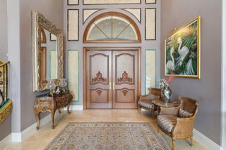 Discover European-inspired elegance and unmatched luxury in this extraordinary estate located in the prestigious, award-winning Ibis Golf & Country Club in West Palm Beach. Set on an expansive two-third-acre cul-de-sac lot with 250 feet of pristine lake frontage, this architectural masterpiece offers sweeping, unobstructed views of shimmering water and manicured fairways. A grand circular drive with porte-cochere welcomes you to the residence, where hand-carved double mahogany doors open to a dramatic marble foyer framed by soaring ceilings and arched windows that capture panoramic golf and lake vistas. Built by Cribb Construction and designed by Fran Murphy Interiors, this home showcases exceptional craftsmanship and timeless European opulence throughout