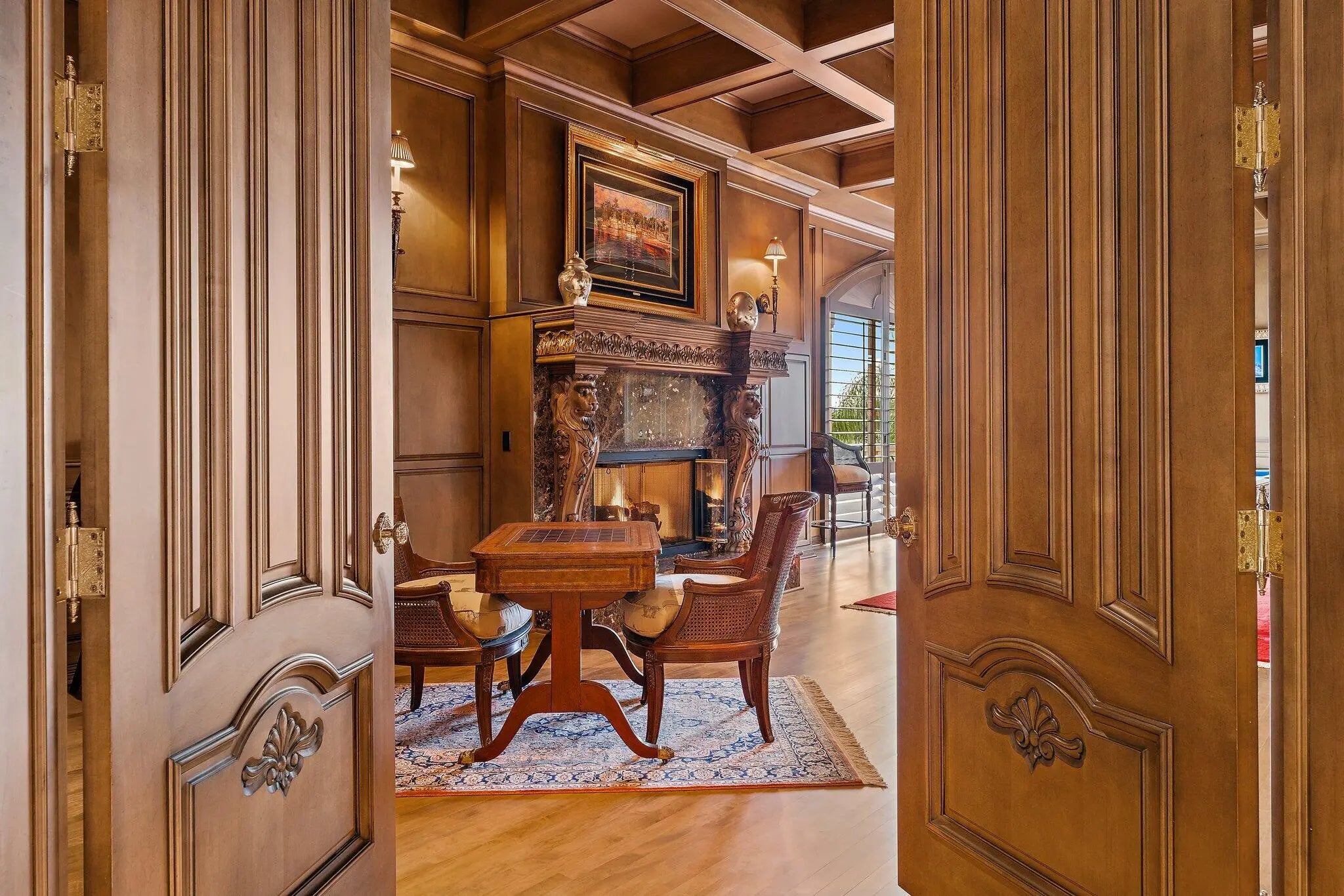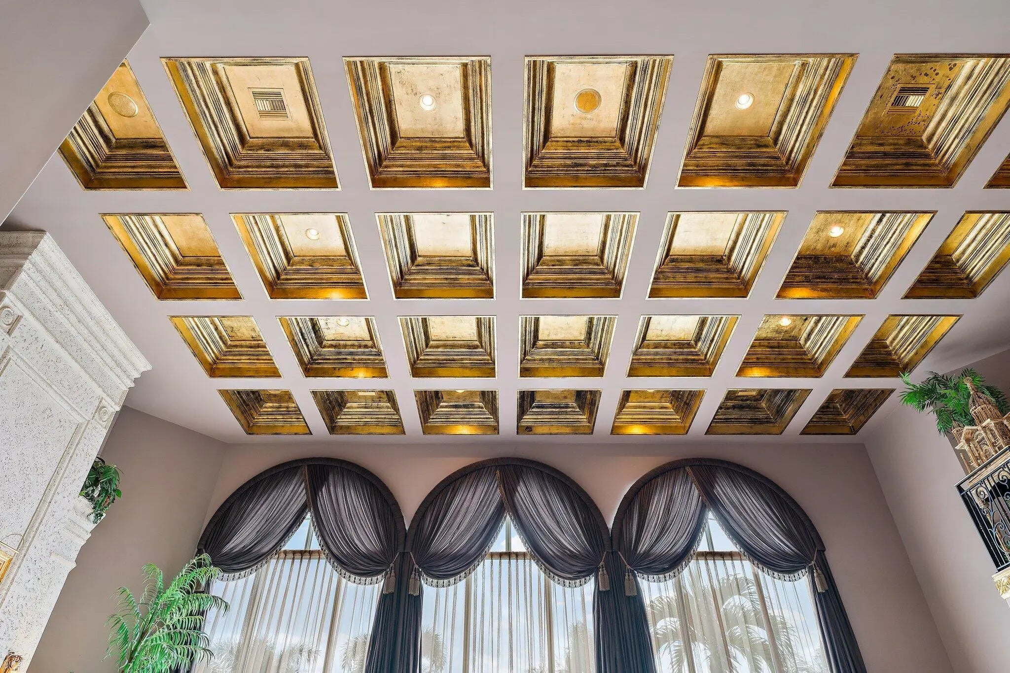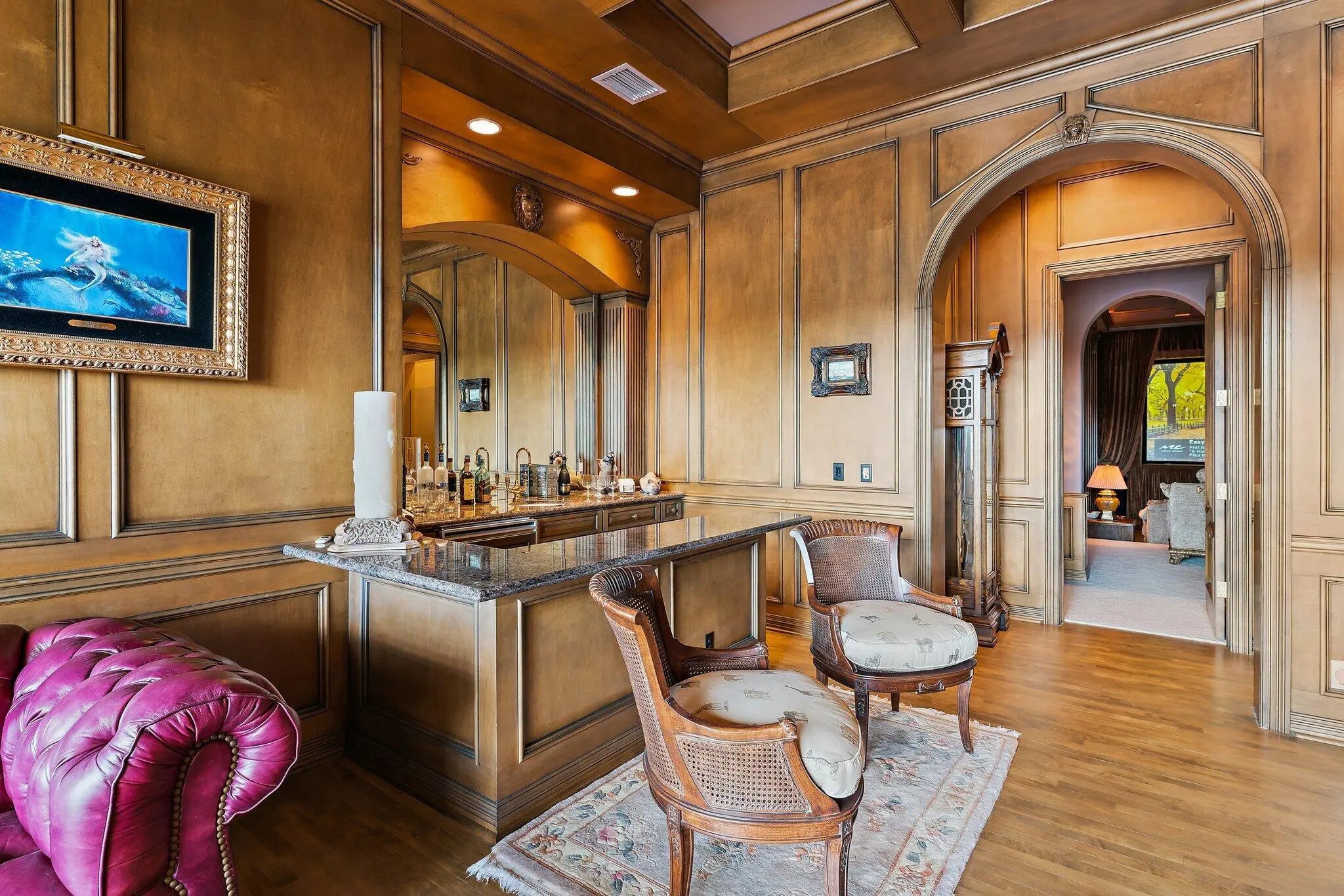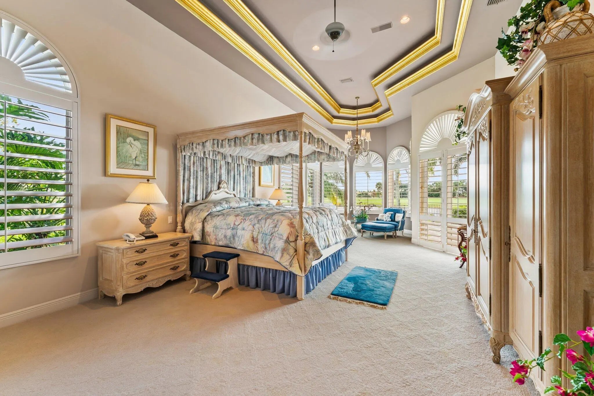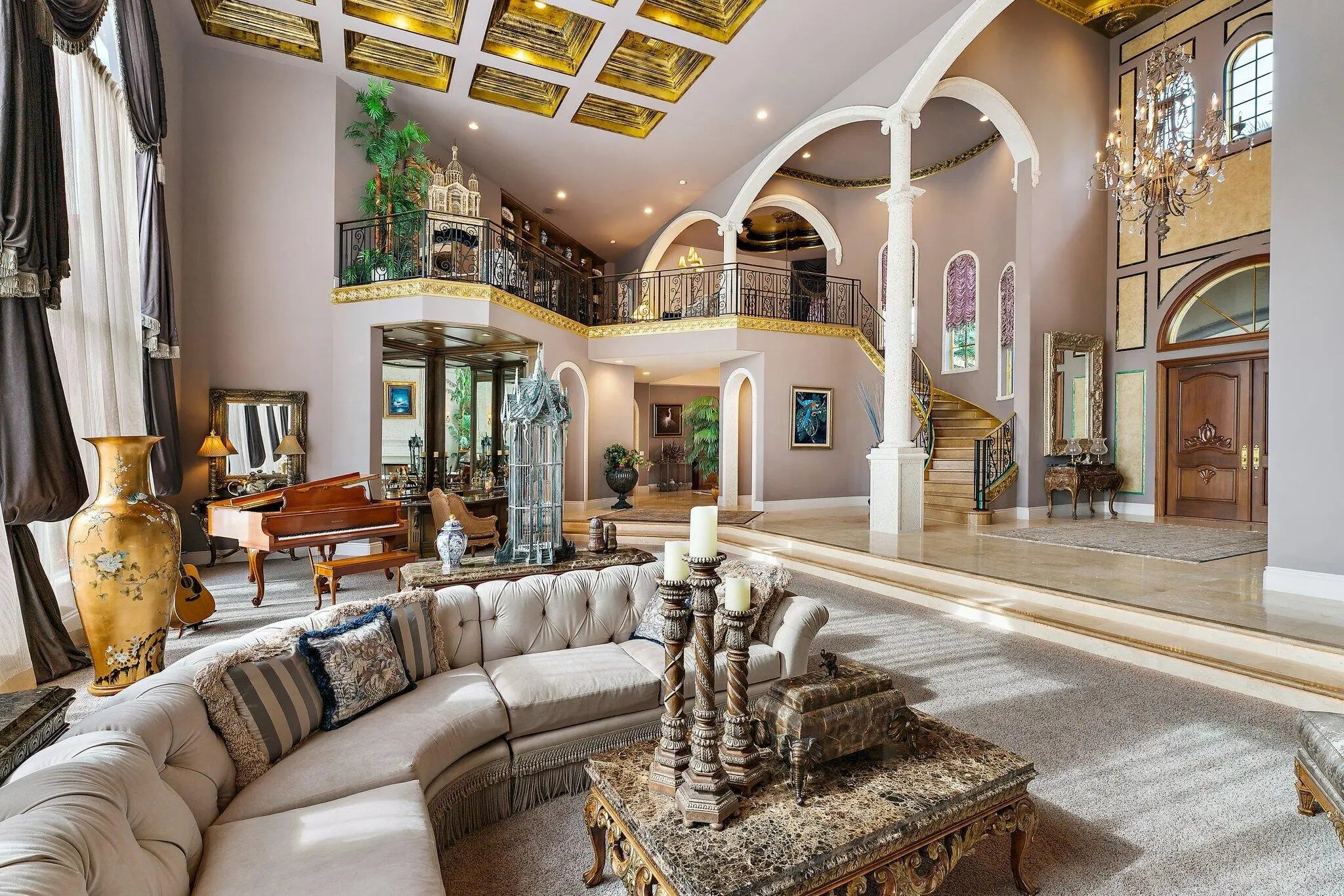 Discover European-inspired elegance and unmatched luxury in this extraordinary estate located in the prestigious, award-winning Ibis Golf & Country Club in West Palm Beach. Set on an expansive two-third-acre cul-de-sac lot with 250 feet of pristine lake frontage, this architectural masterpiece offers sweeping, unobstructed views of shimmering water and manicured fairways. A grand circular drive with porte-cochere welcomes you to the residence, where hand-carved double mahogany doors open to a dramatic marble foyer framed by soaring ceilings and arched windows that capture panoramic golf and lake vistas. Built by Cribb Construction and designed by Fran Murphy Interiors, this home showcases exceptional craftsmanship and timeless European opulence throughout