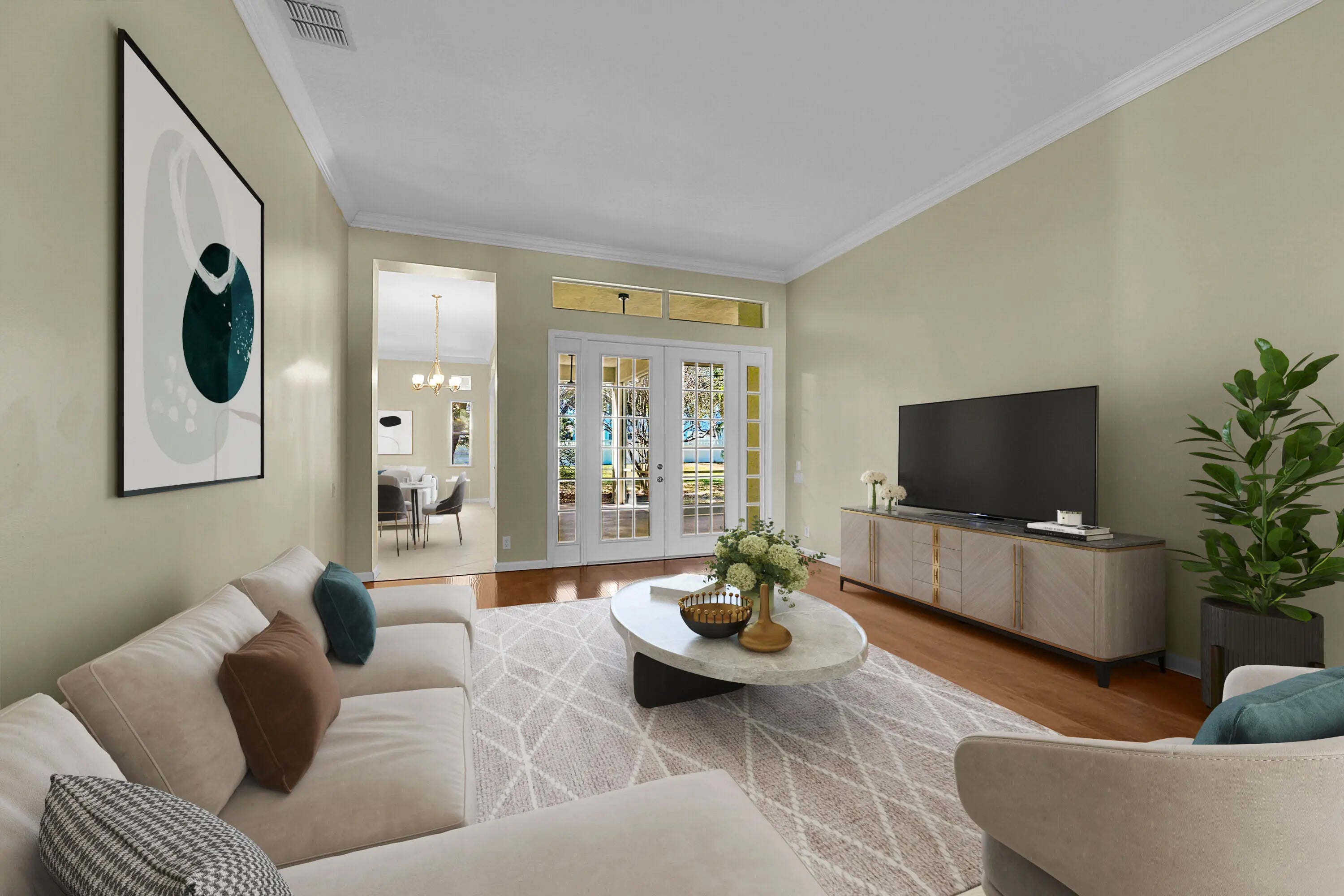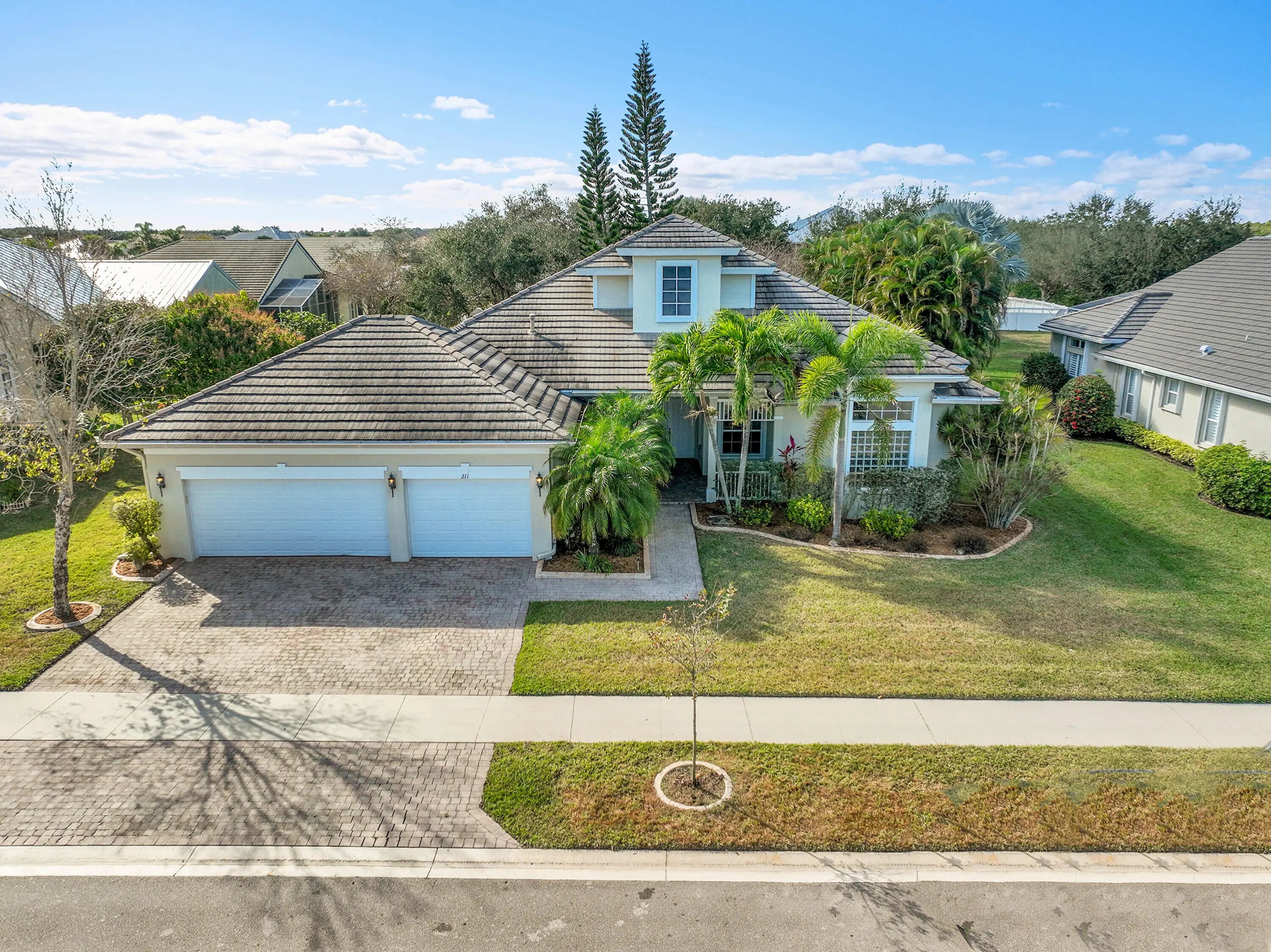 * * *Spacious 4-bedroom plus Den and Bonus Room (that could easily be a 5th bedroom), 3-bath, 1-story home with a 3-car garage offers over 3,000 sq ft of living space on an oversized lot in the gated Magnolia Lakes community. Features include a split floor plan, high ceilings, crown molding, luxurious wood-look flooring, diagonal tile, and an open-concept layout. The kitchen has a gas range, Thermador range hood, 42'' wood cabinets and granite countertops. Additional highlights include two HVAC systems, Whole-house generator, Nest thermostats, Ring doorbell and tankless water heater. Elegant French doors lead to a serene screened patio. Low $285/month HOA includes lawn care, pool, fitness center, internet, tennis/pickleball, and playground. No CDD.